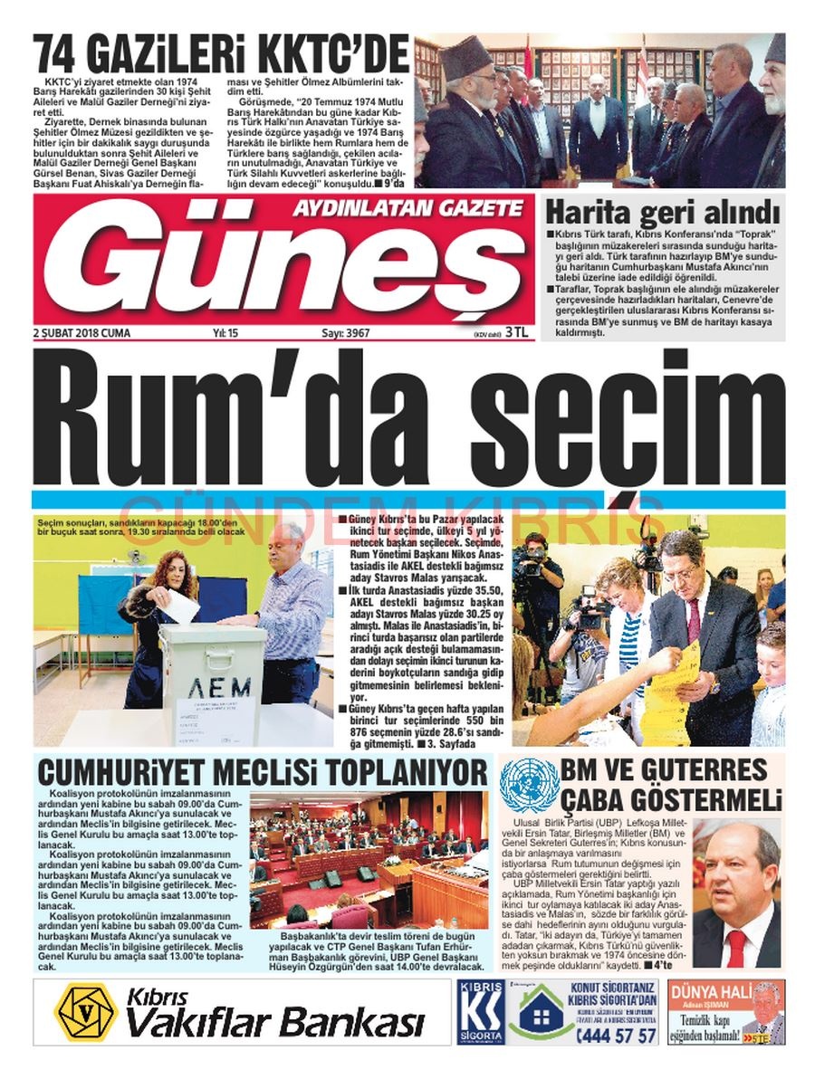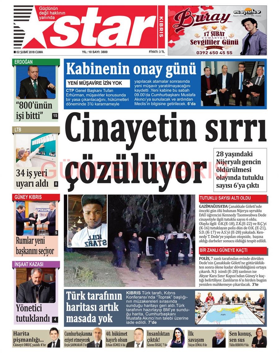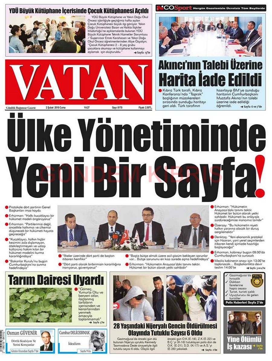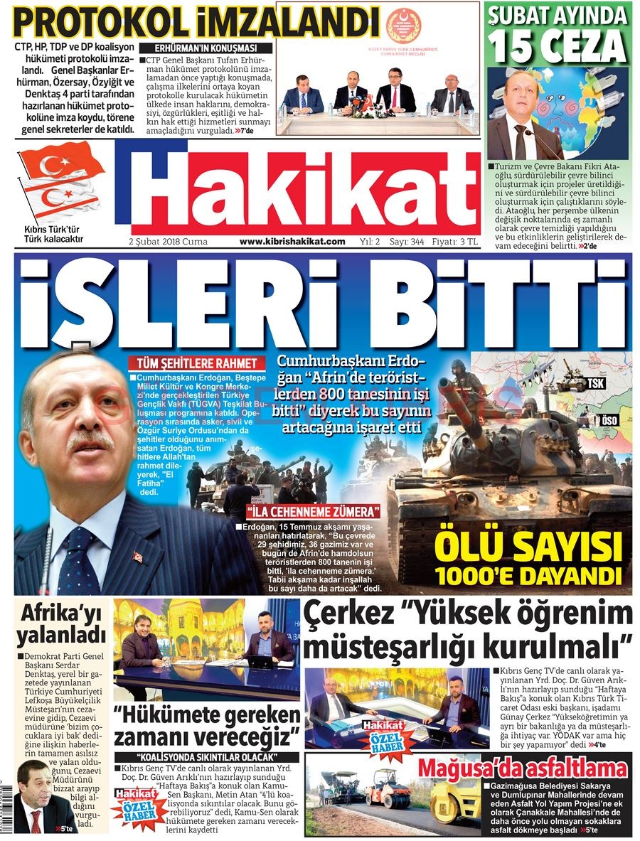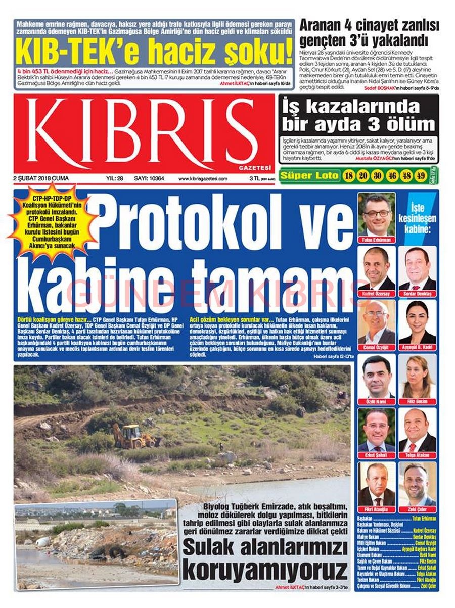KKTC Gazete Manşetleri 2 Şubat 2018