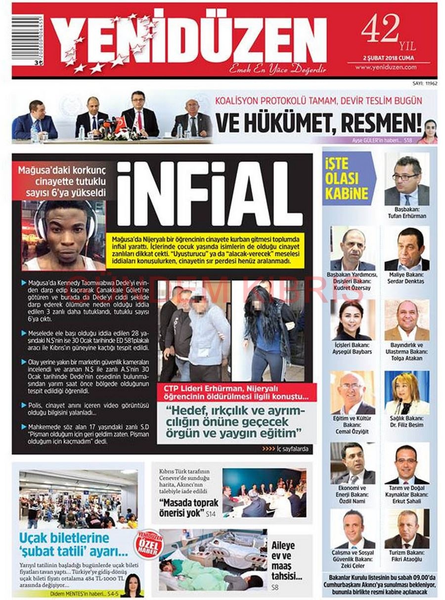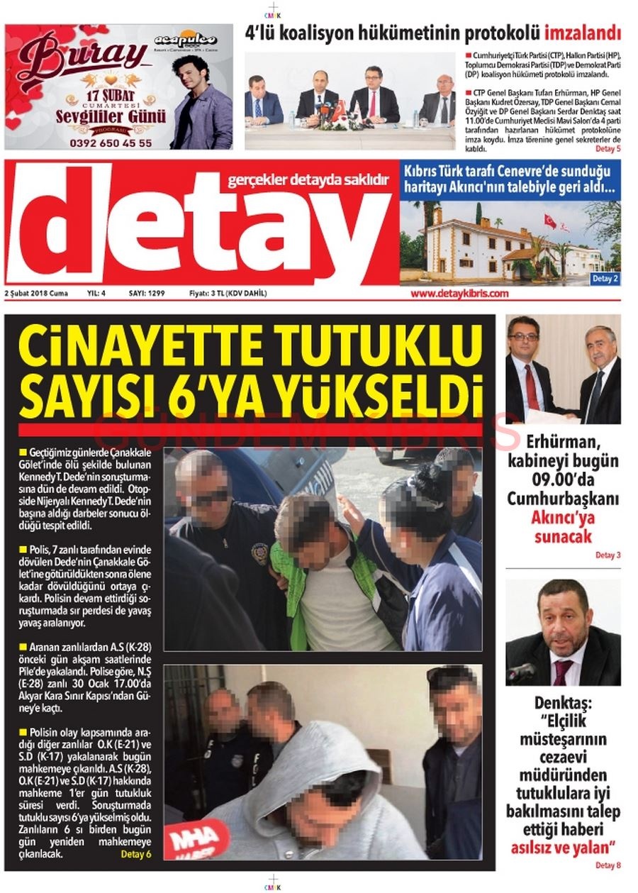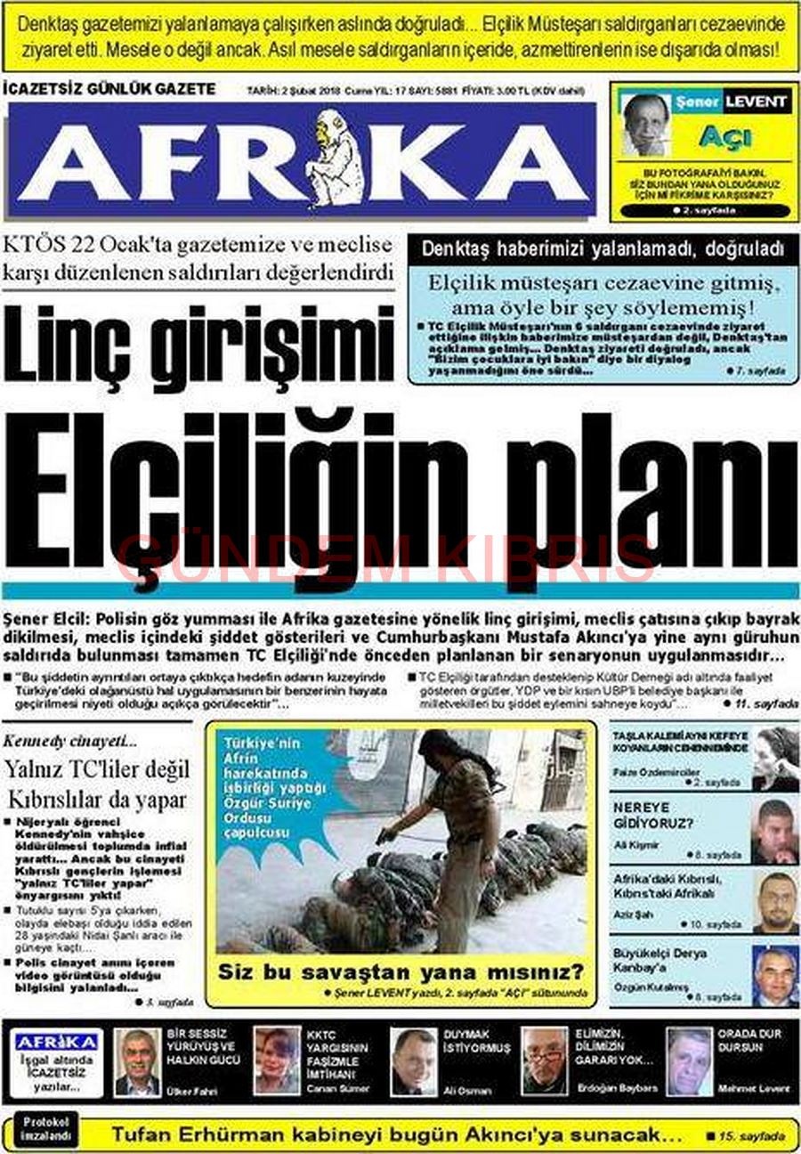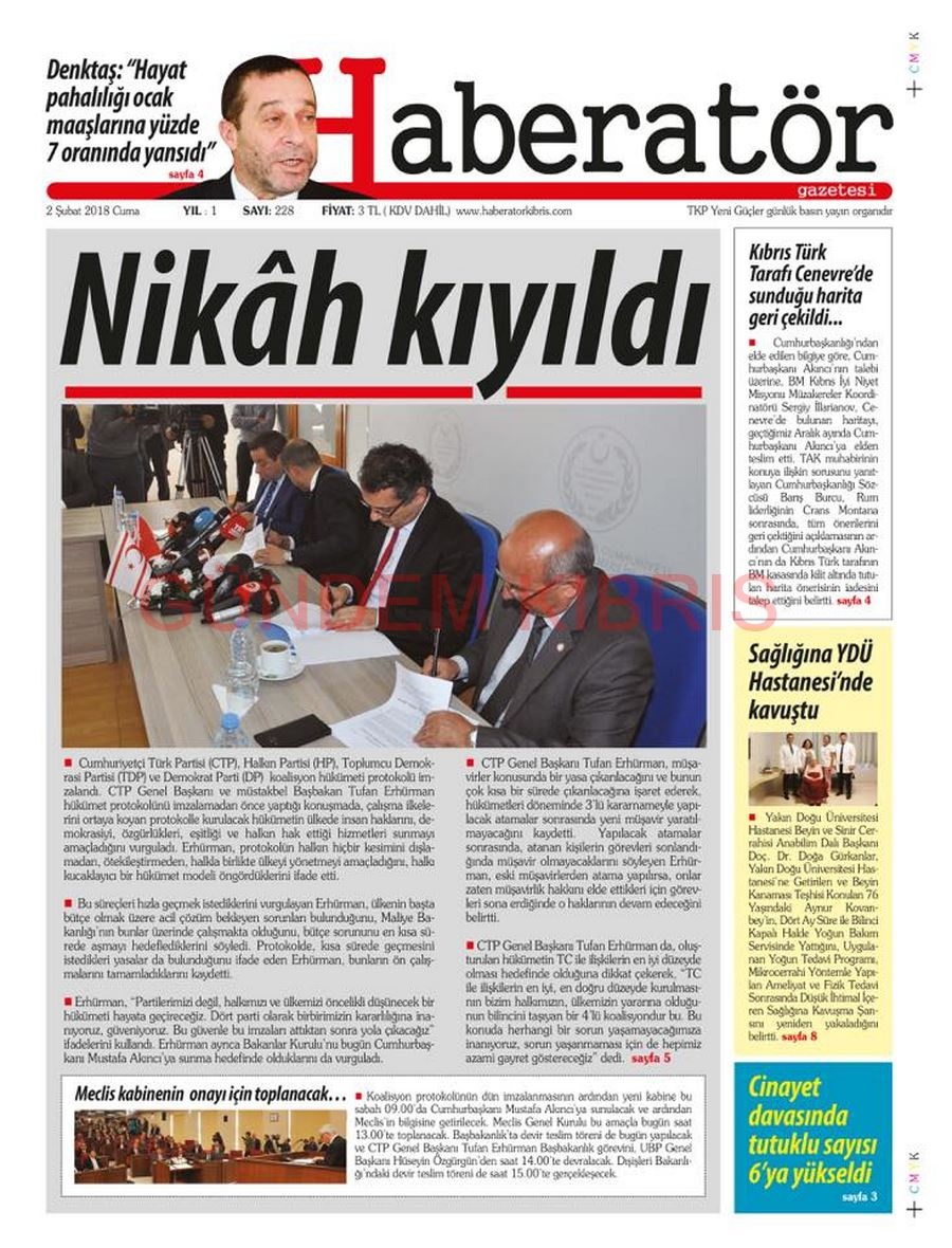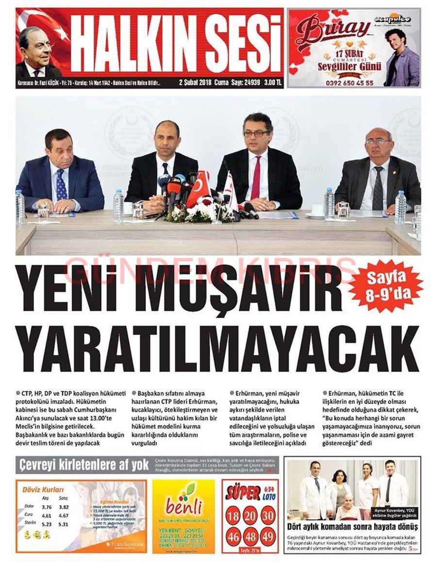 KKTC Gazete Manşetleri 2 Şubat 2018