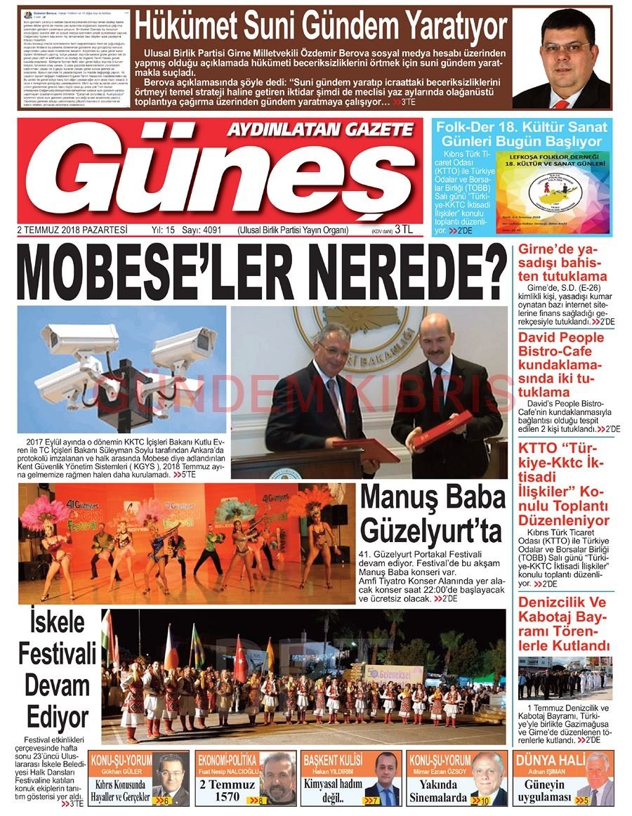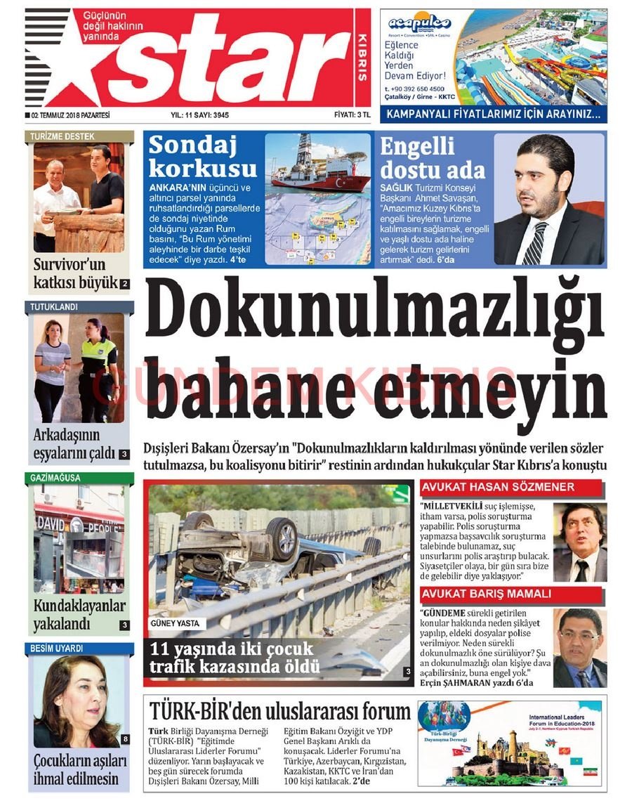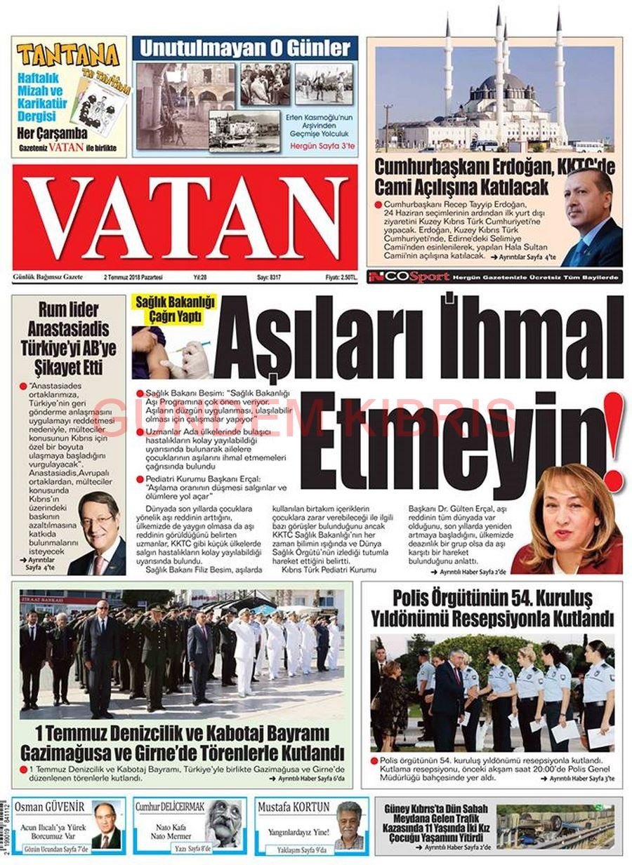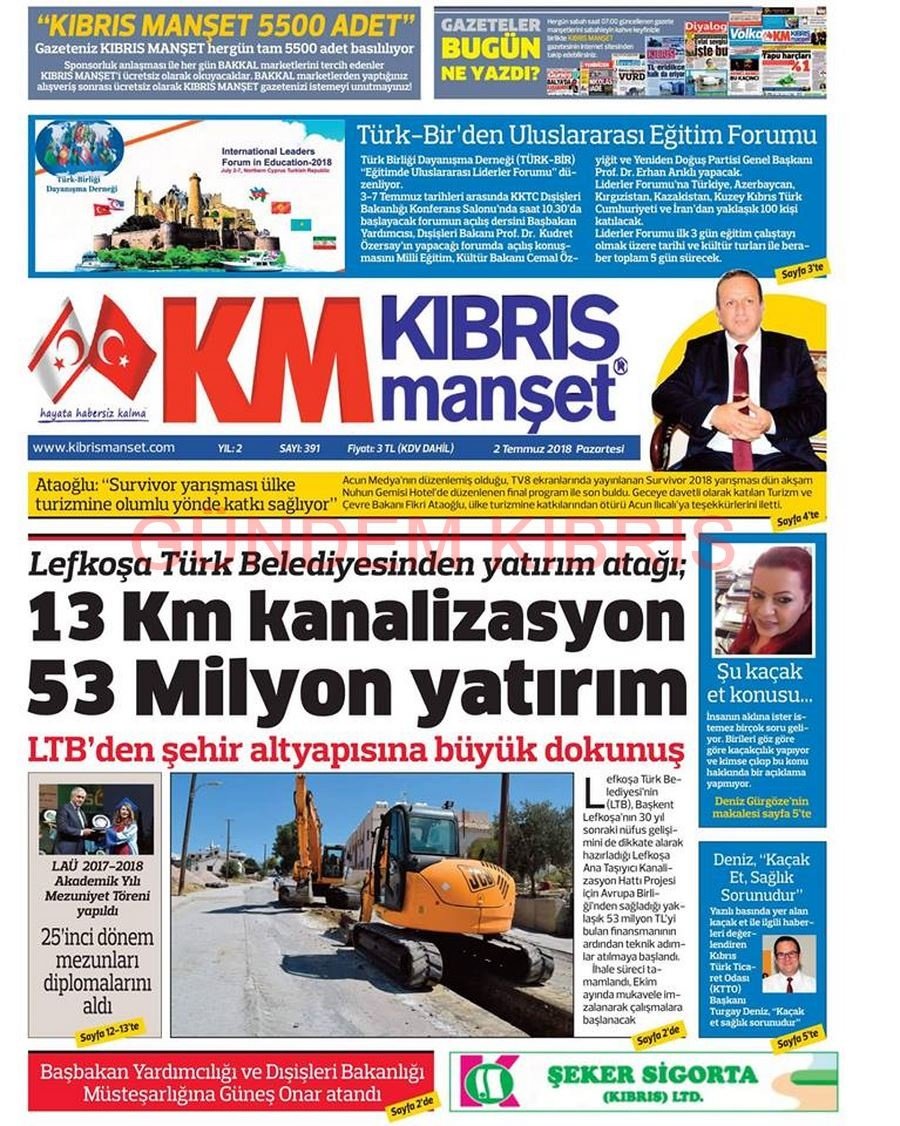 KKTC Gazete Manşetleri 2 Temmuz 2018