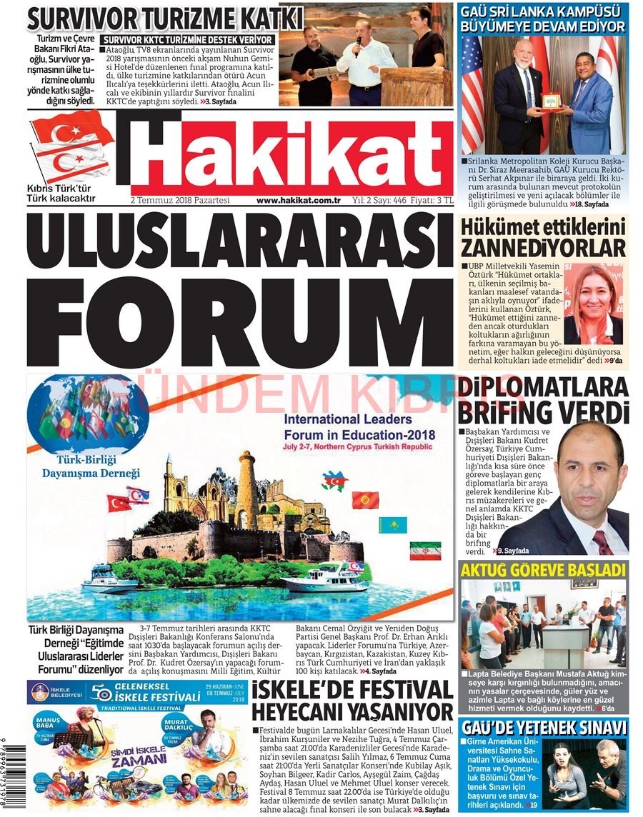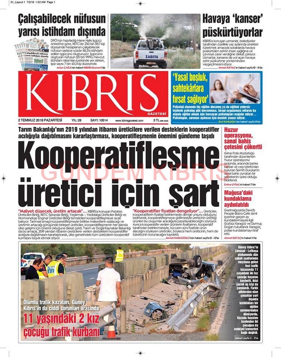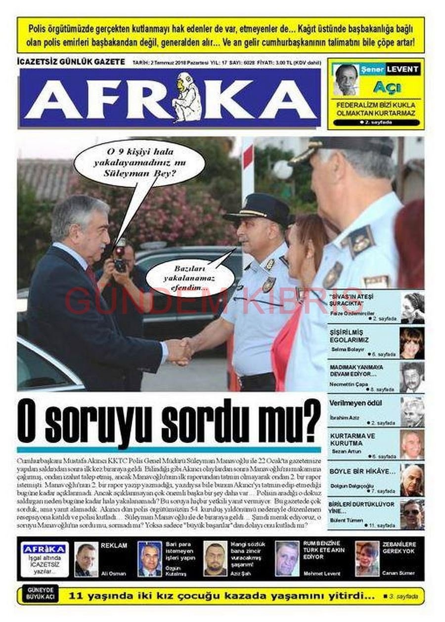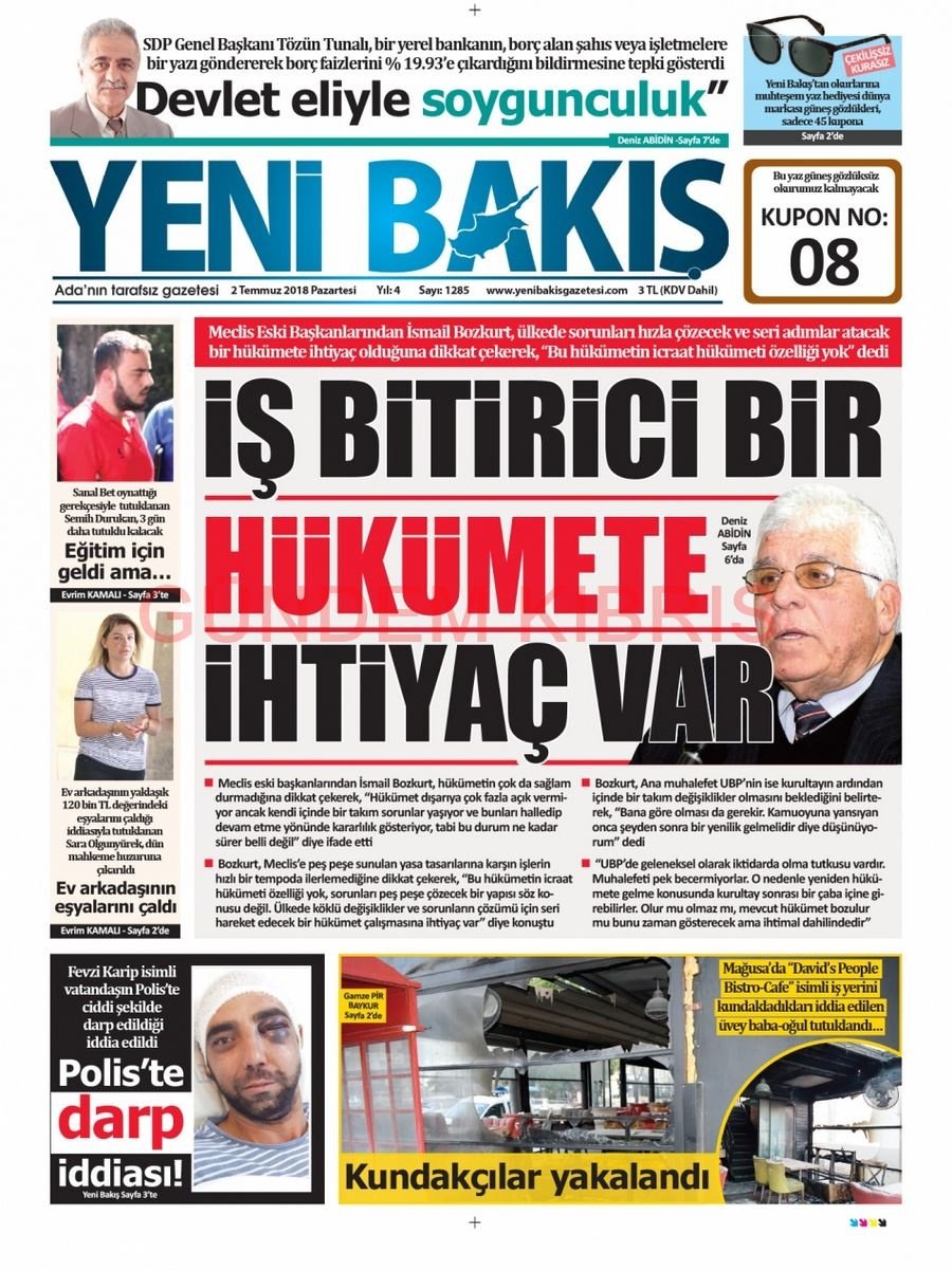 KKTC Gazete Manşetleri 2 Temmuz 2018