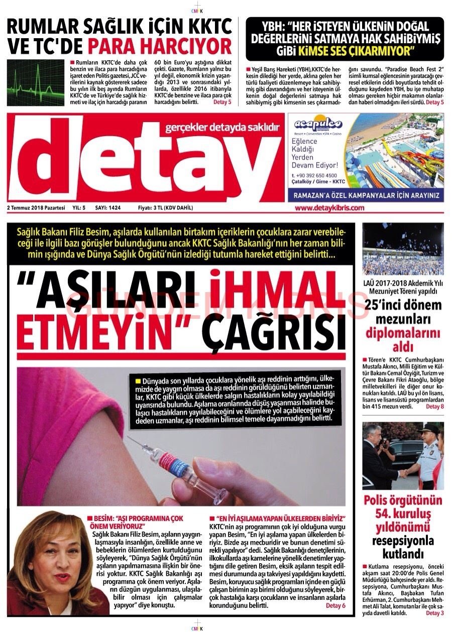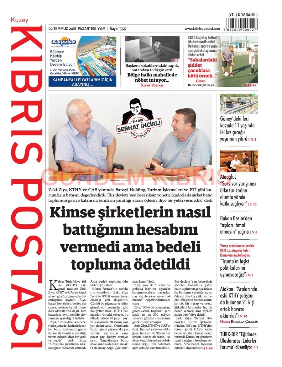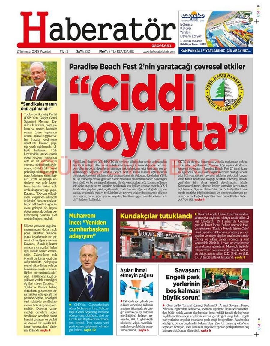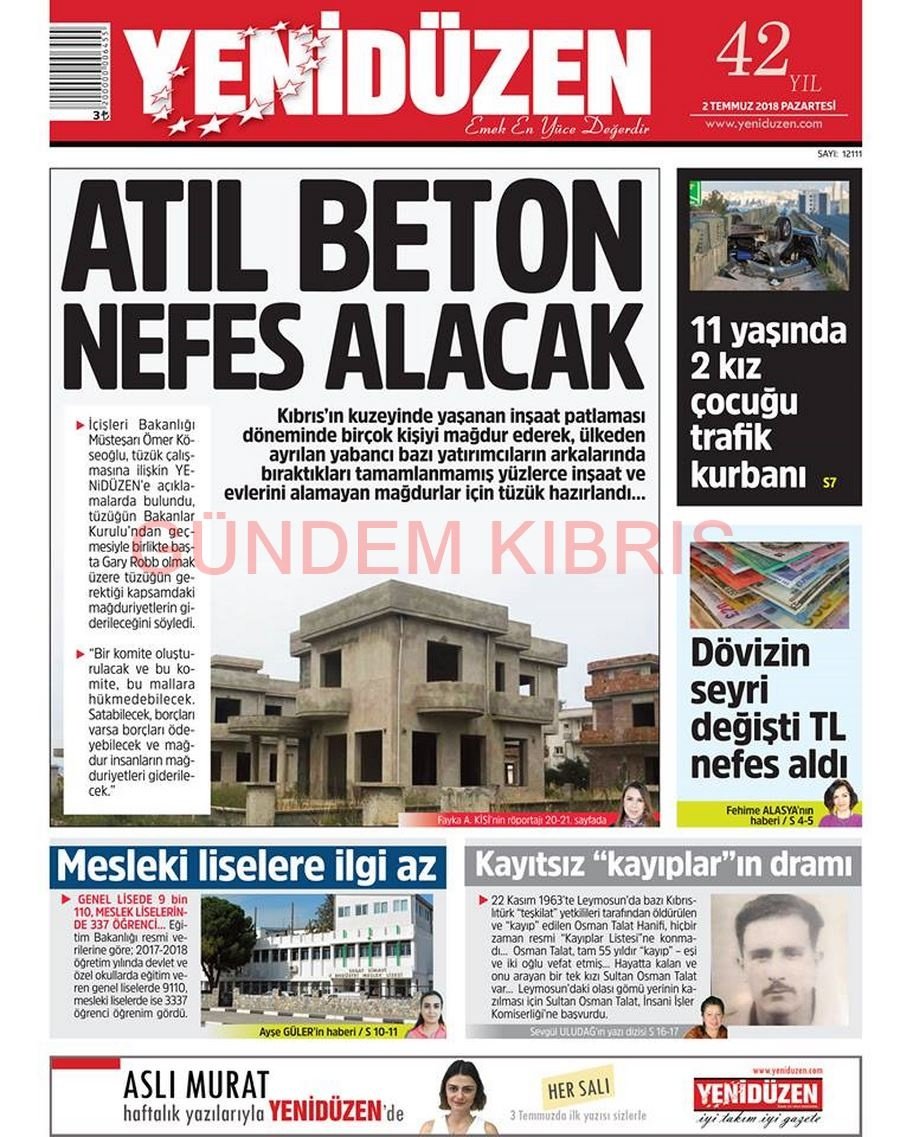 KKTC Gazete Manşetleri 2 Temmuz 2018