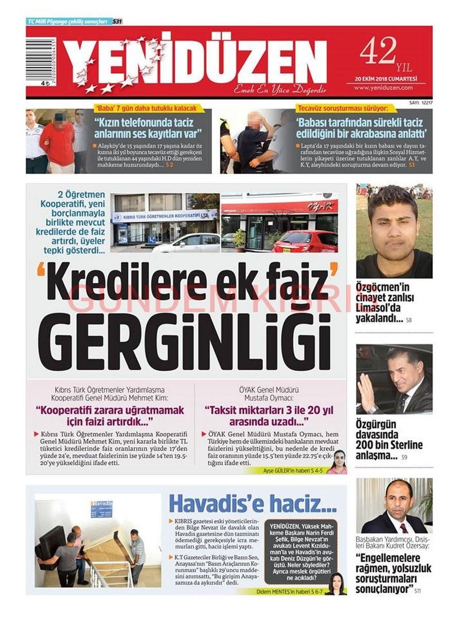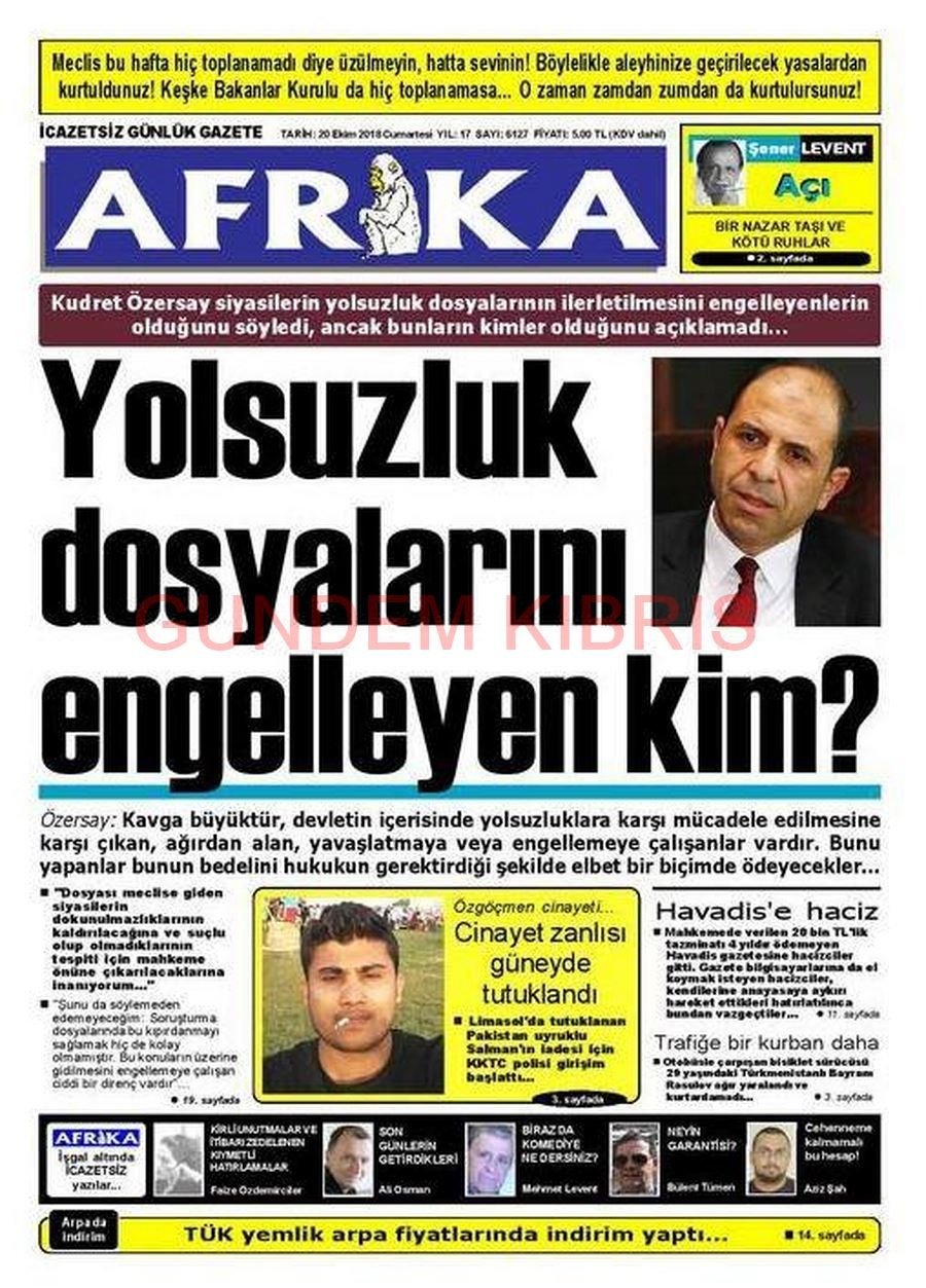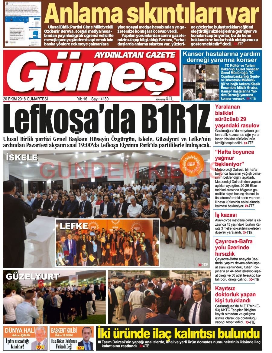 KKTC Gazete Manşetleri 20 Ekim 2018