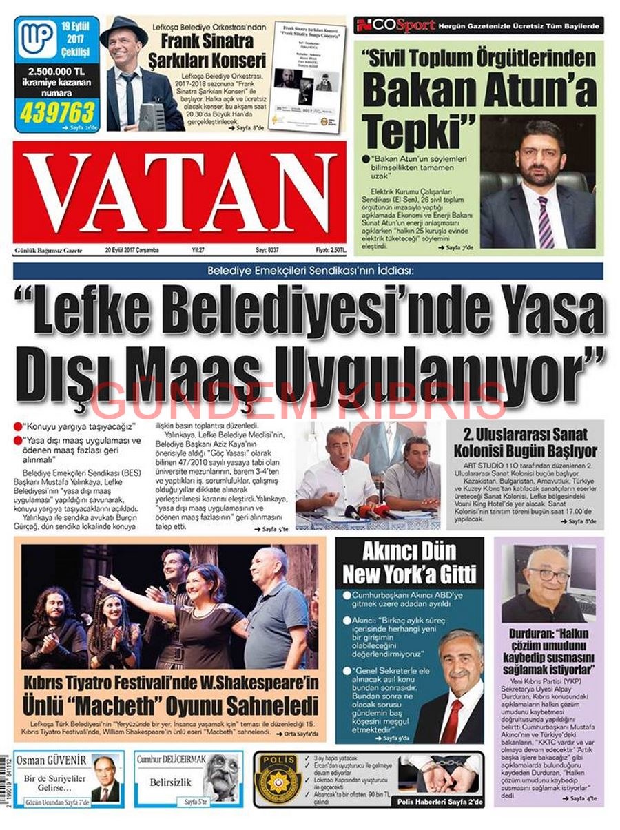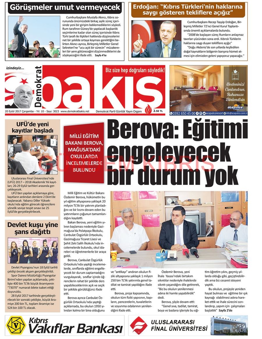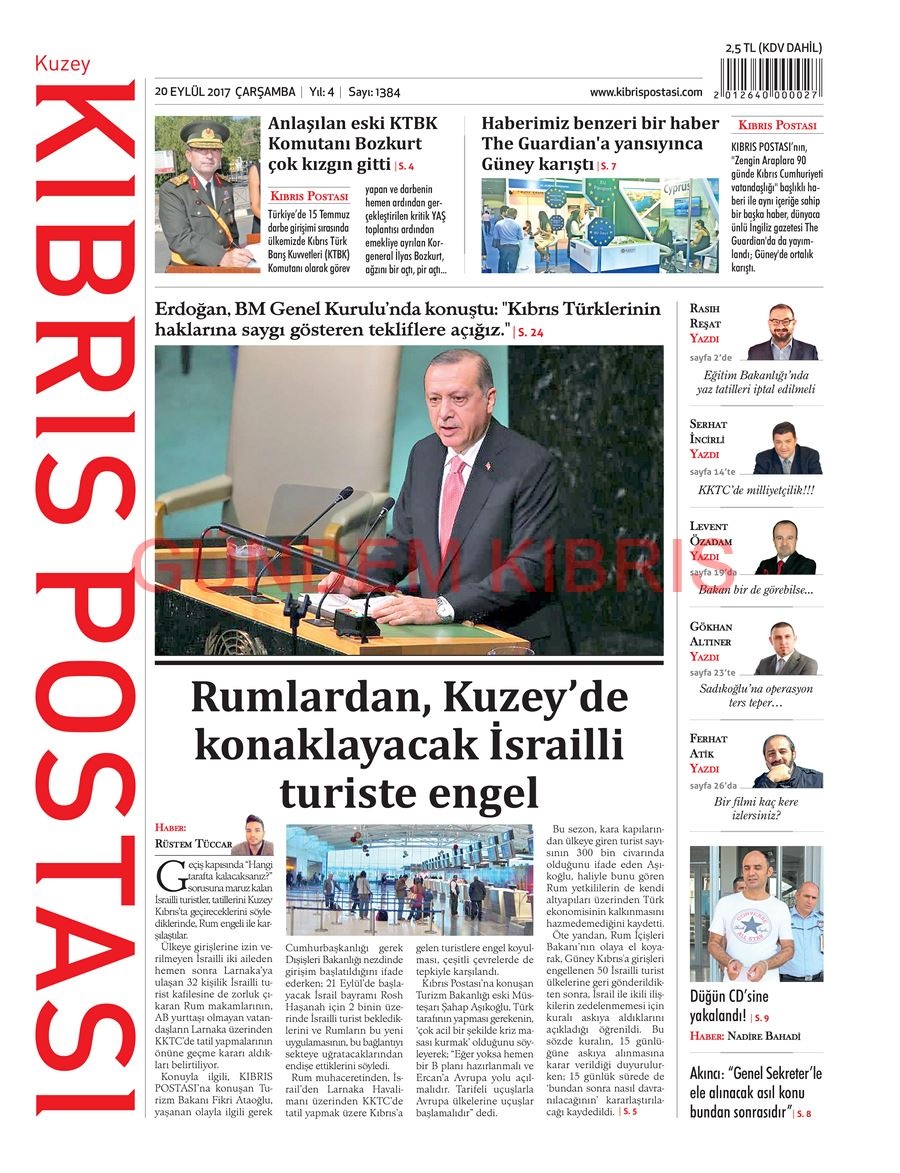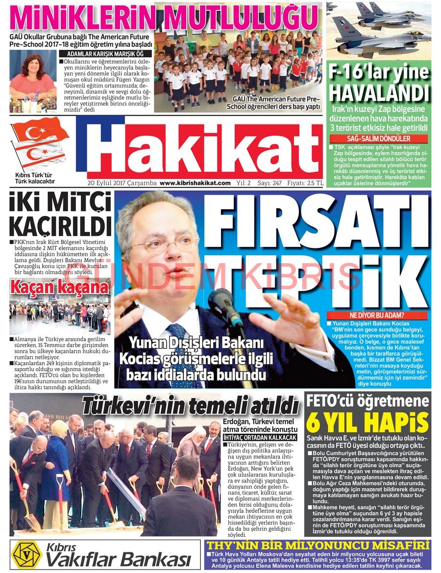 KKTC Gazete Manşetleri 20 Eylül 2017