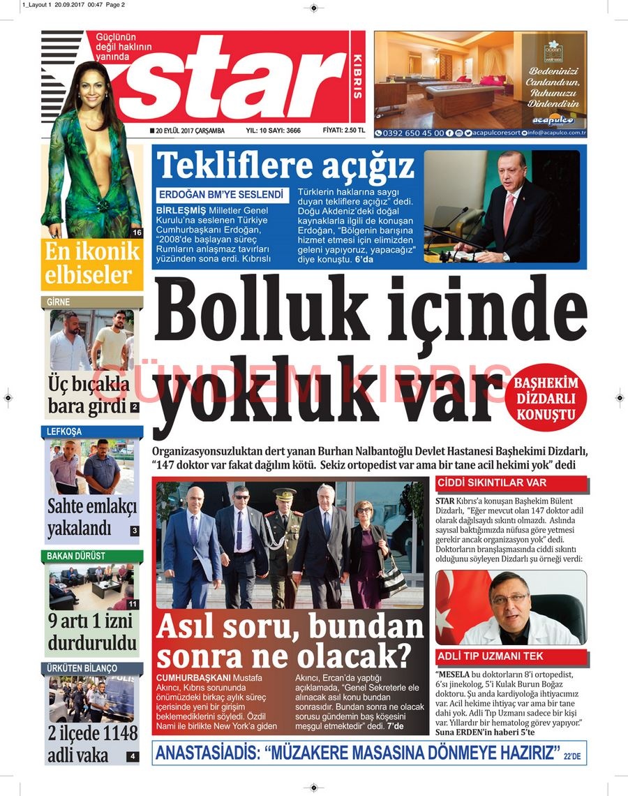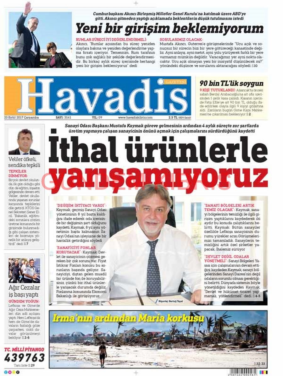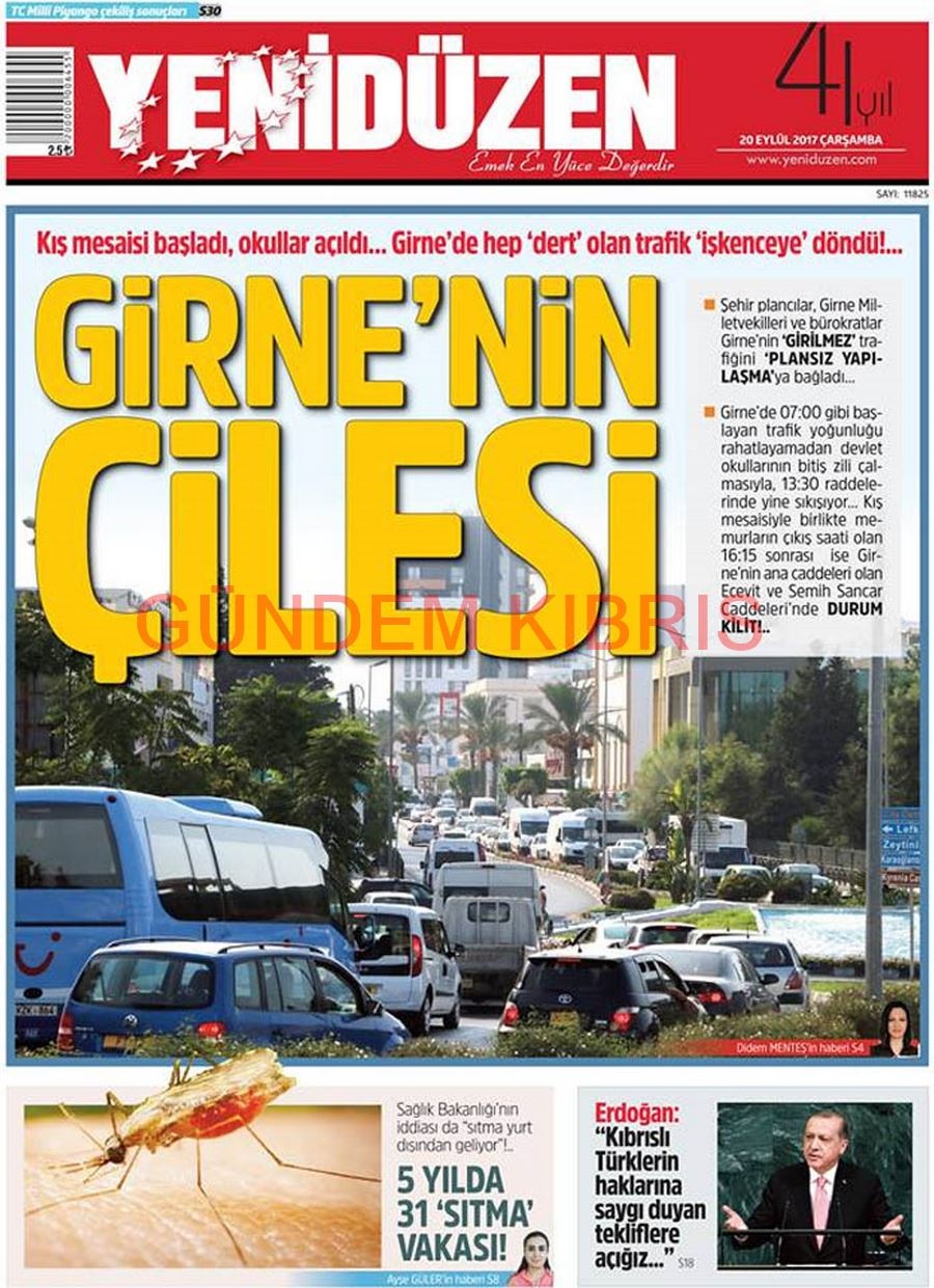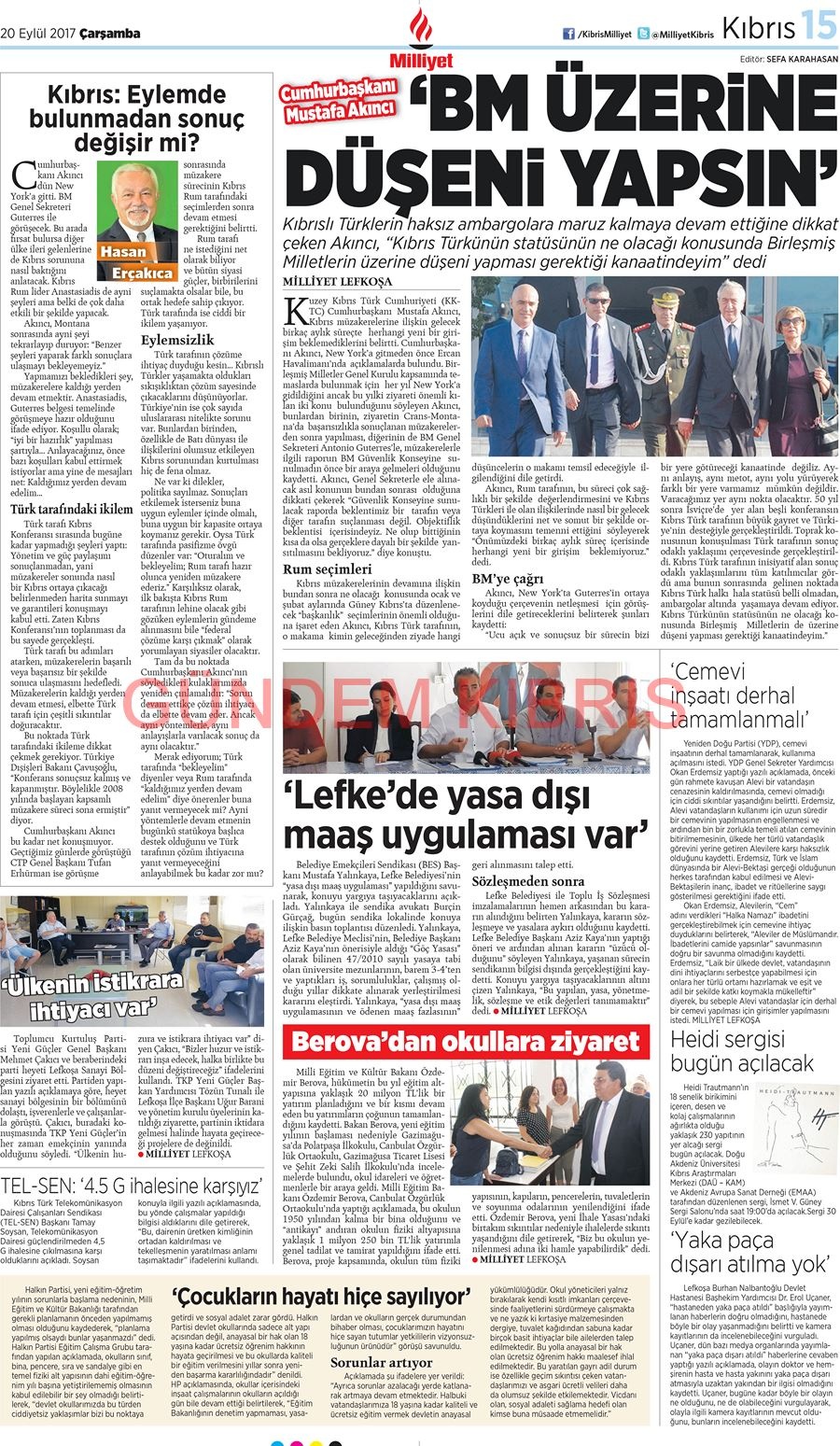 KKTC Gazete Manşetleri 20 Eylül 2017