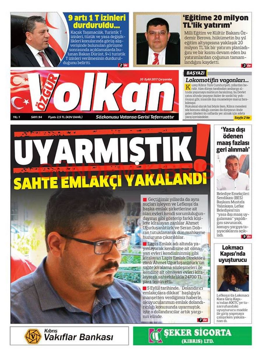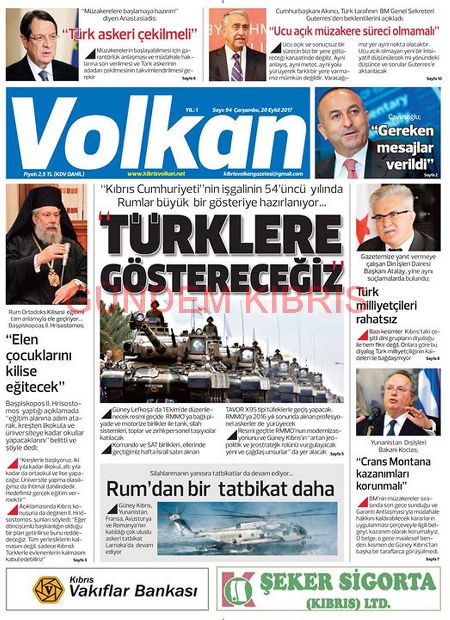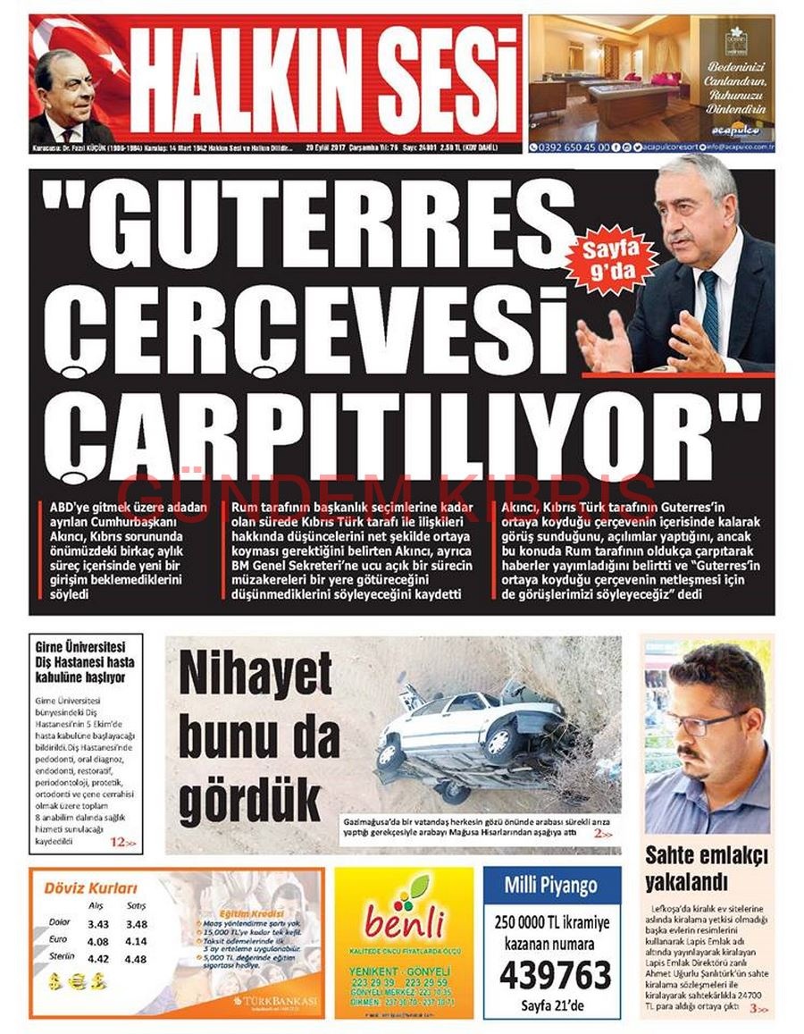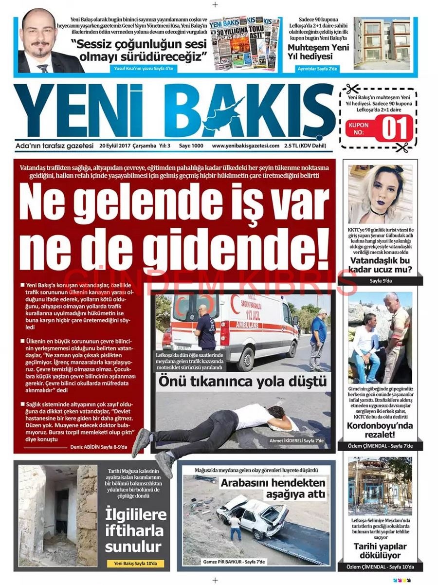 KKTC Gazete Manşetleri 20 Eylül 2017