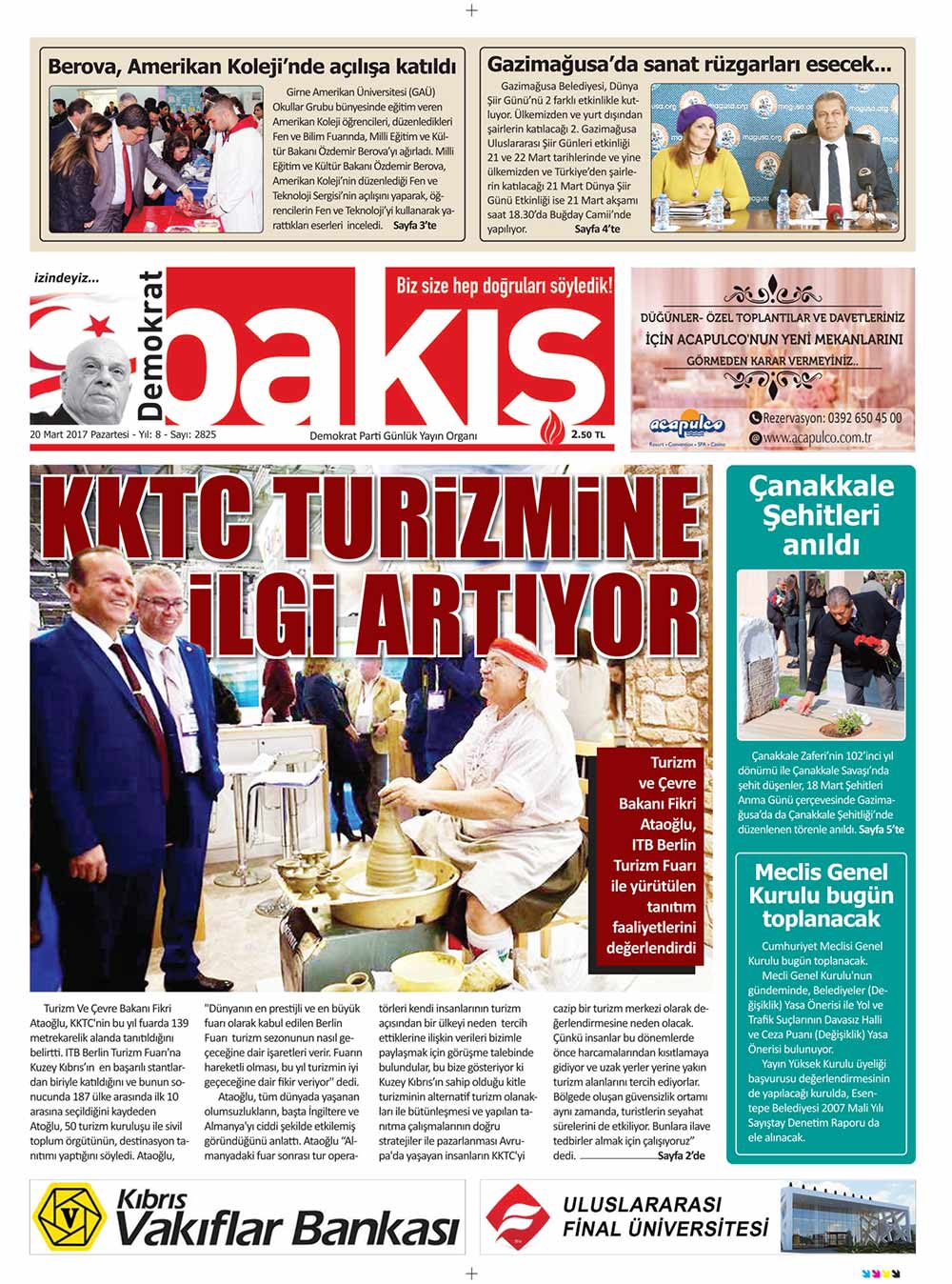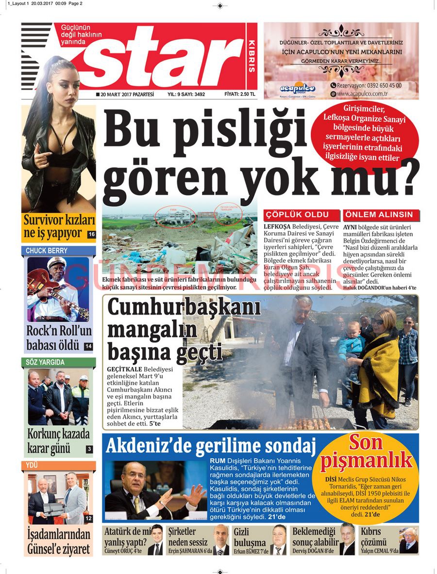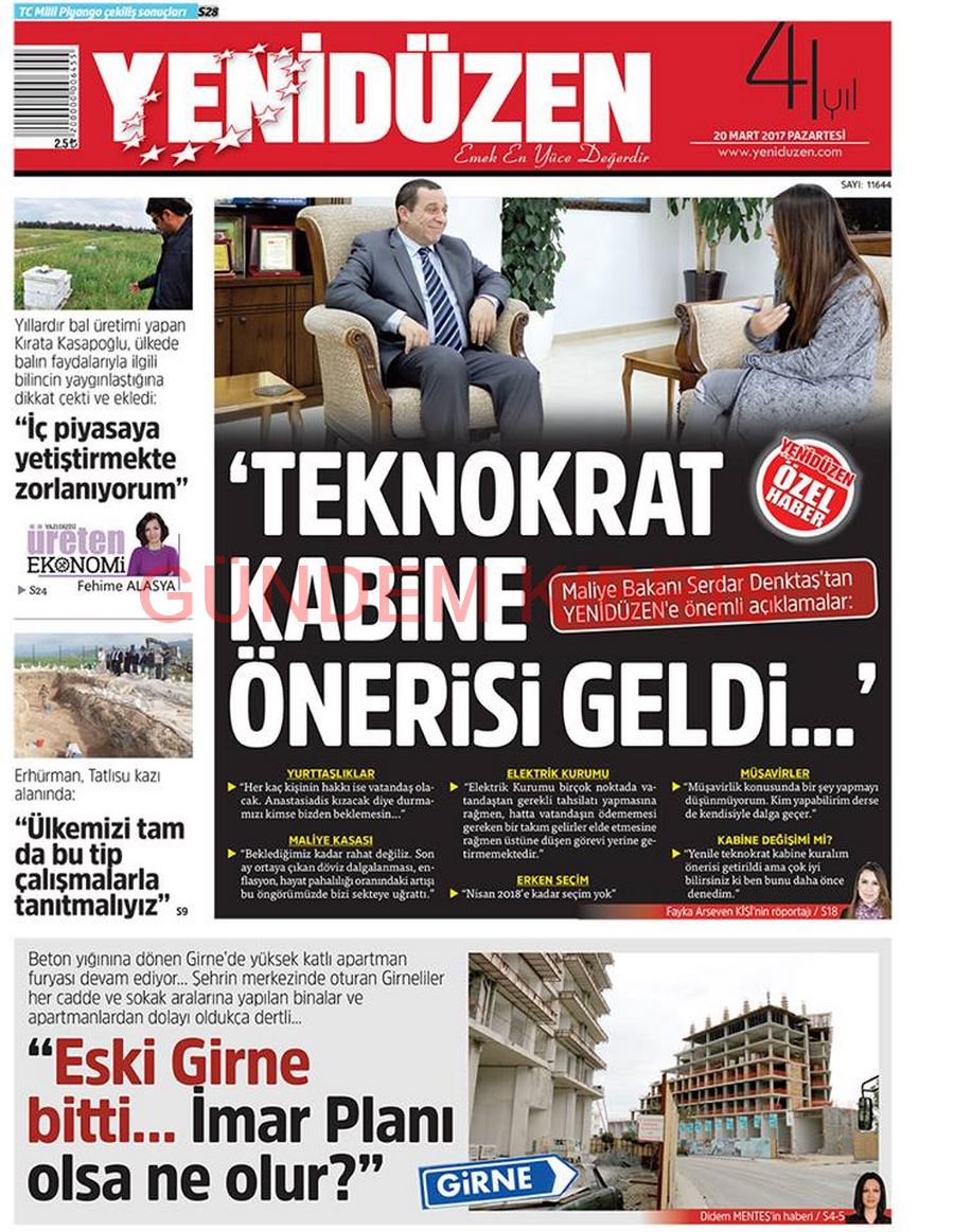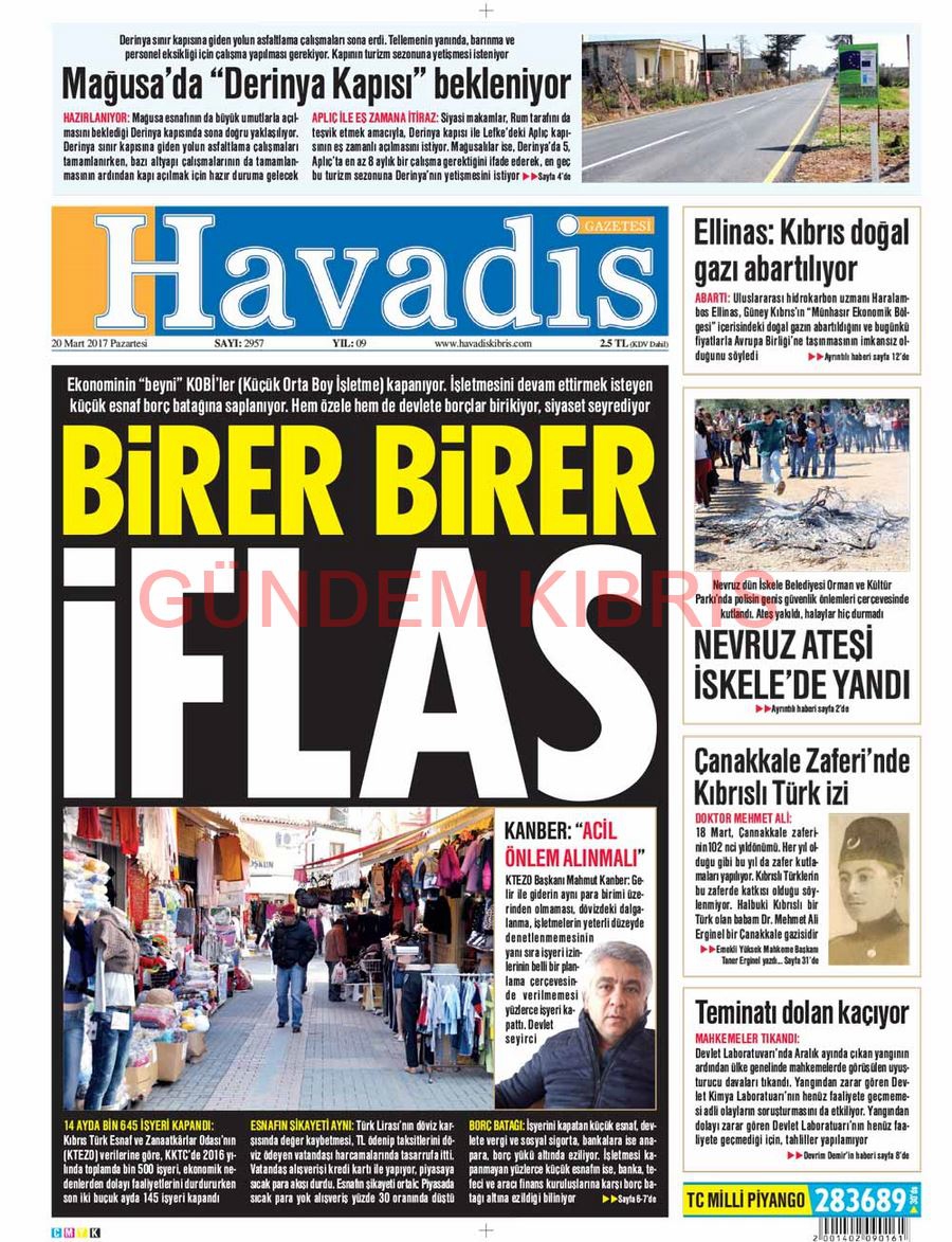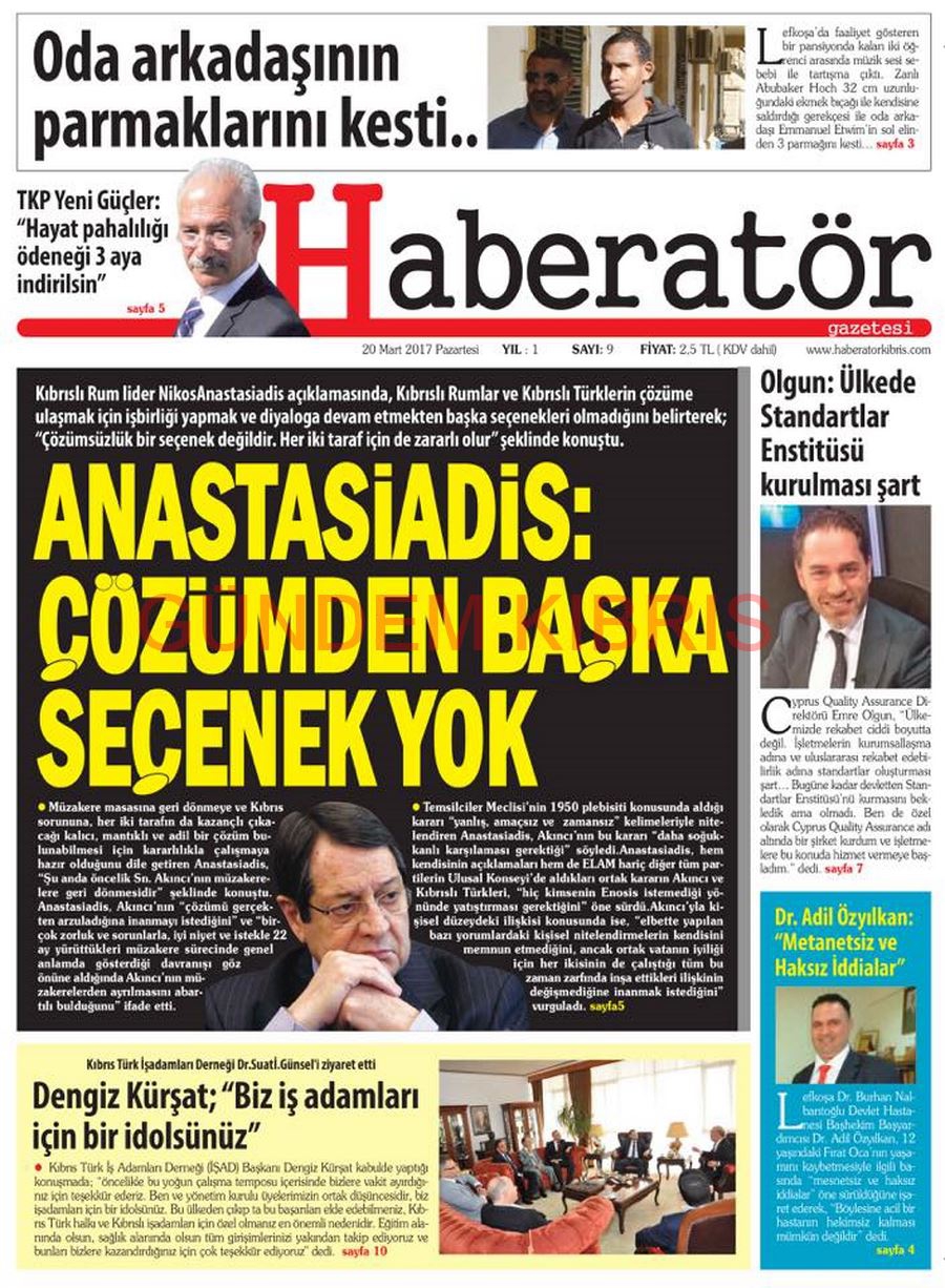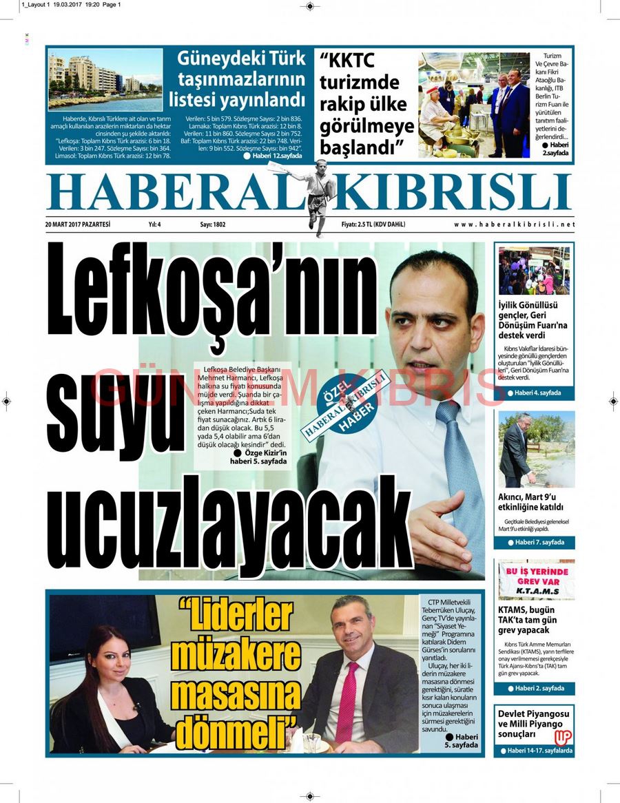 KKTC Gazete Manşetleri 20 Mart 2017
