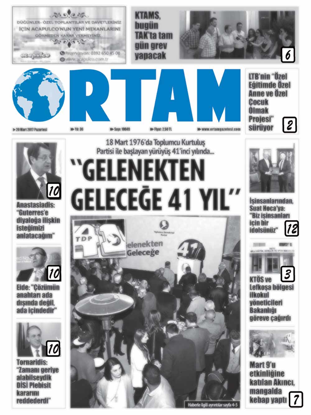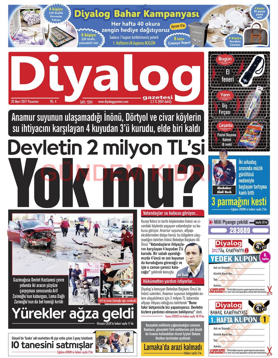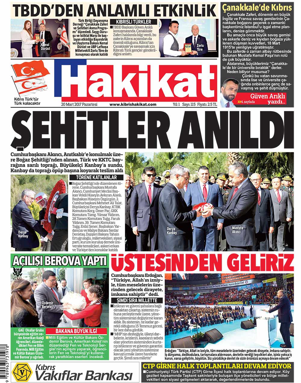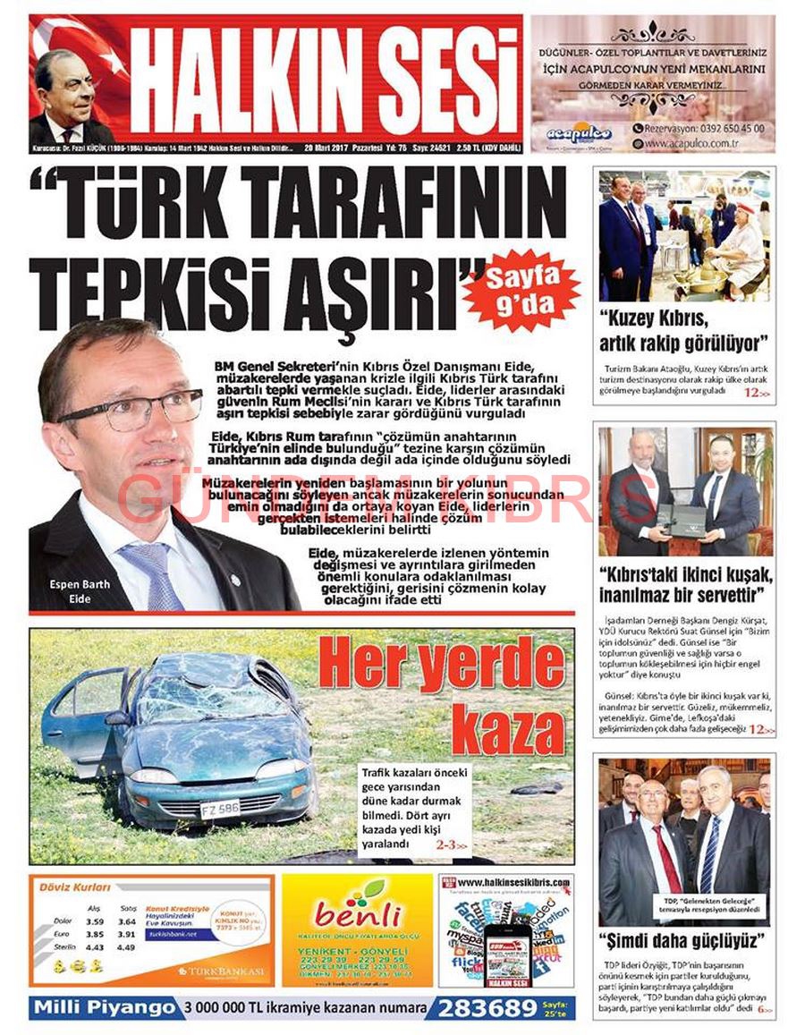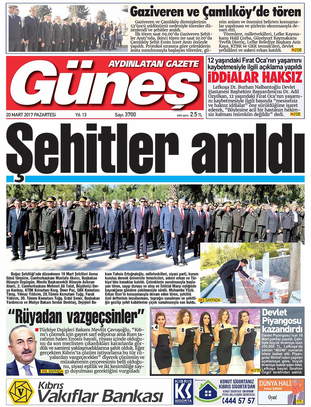 KKTC Gazete Manşetleri 20 Mart 2017