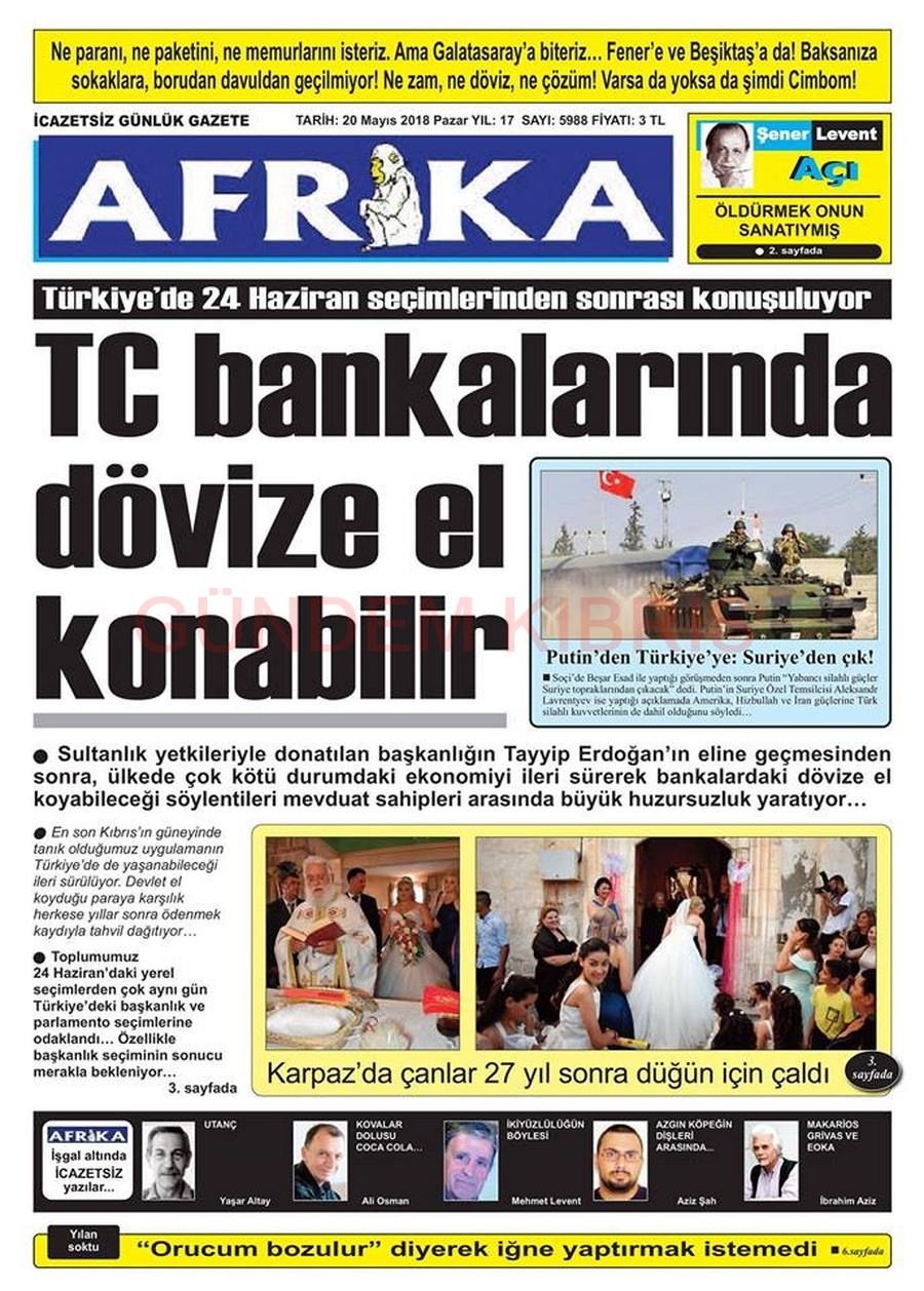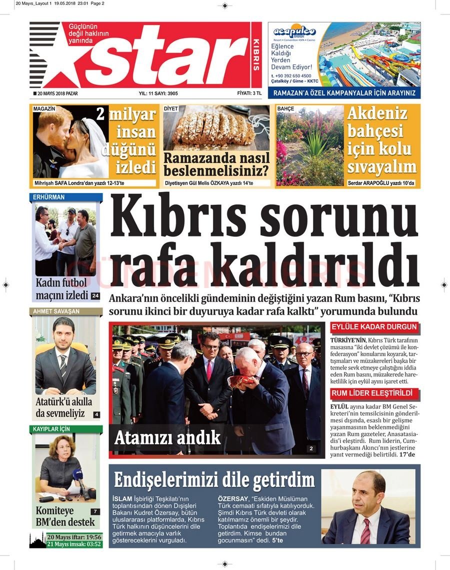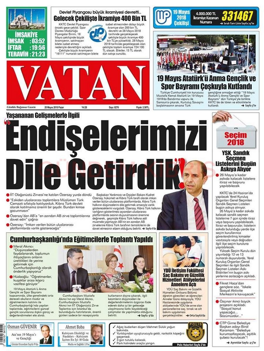 KKTC Gazete Manşetleri 20 Mayıs 2018