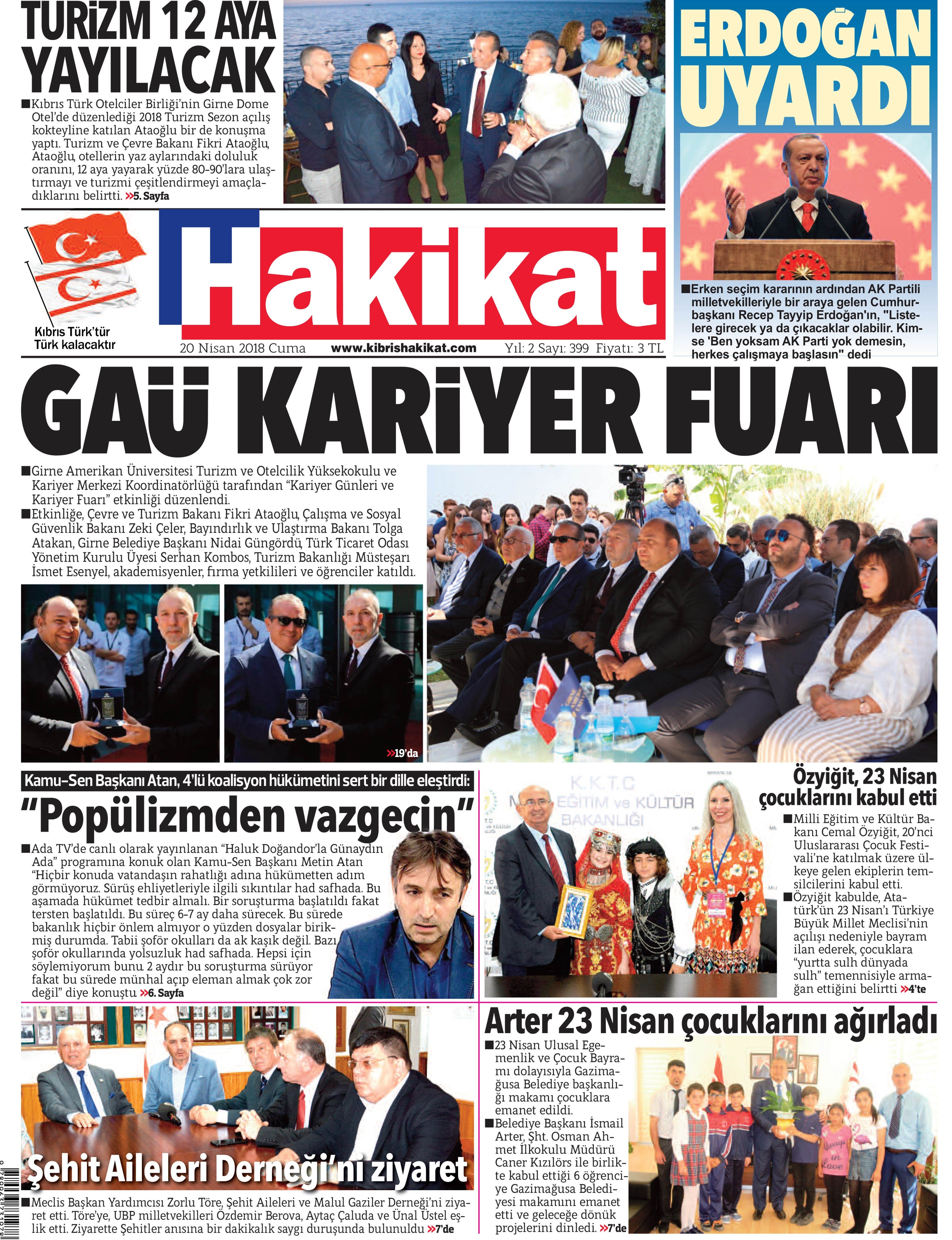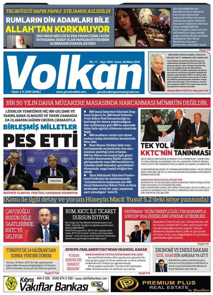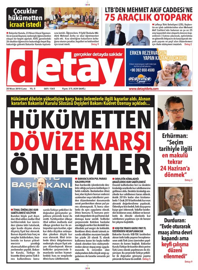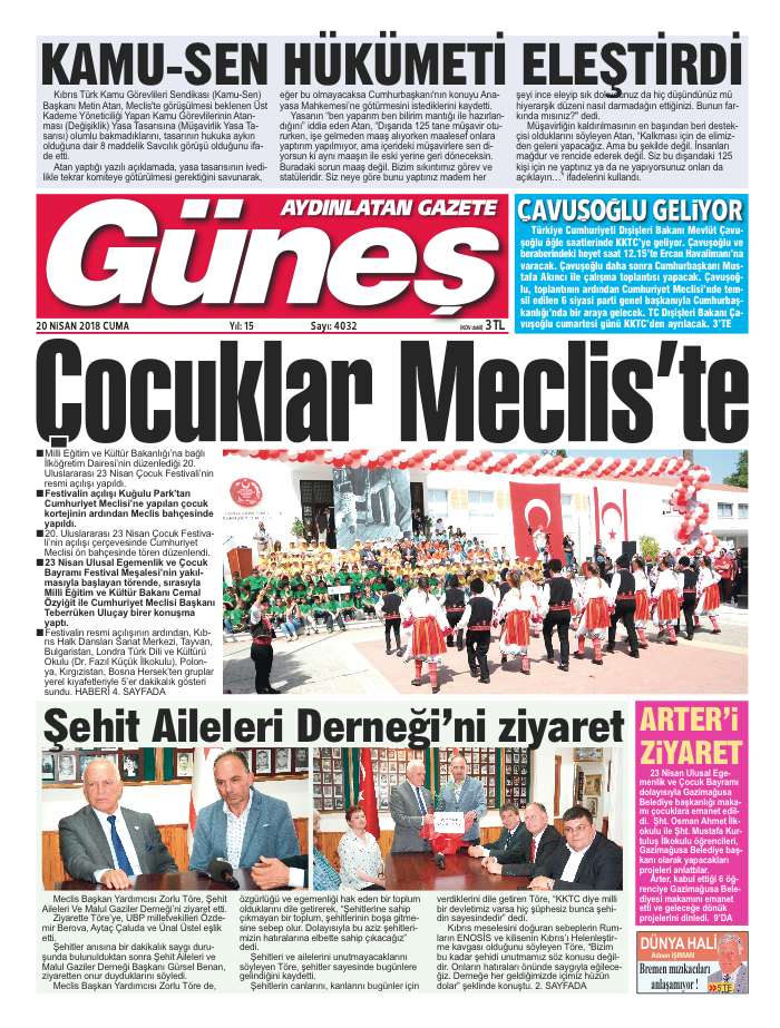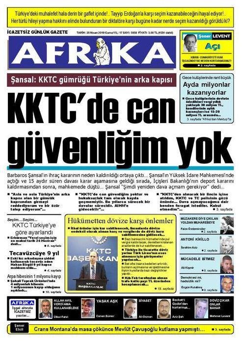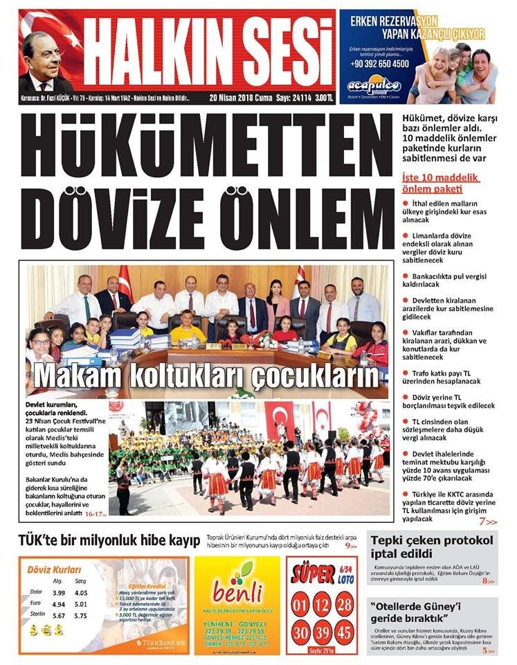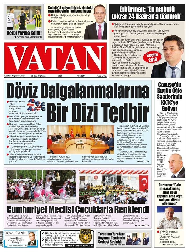 KKTC Gazete Manşetleri 20 Nisan 2018