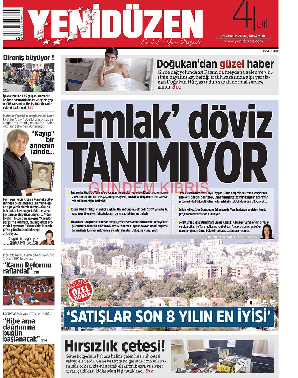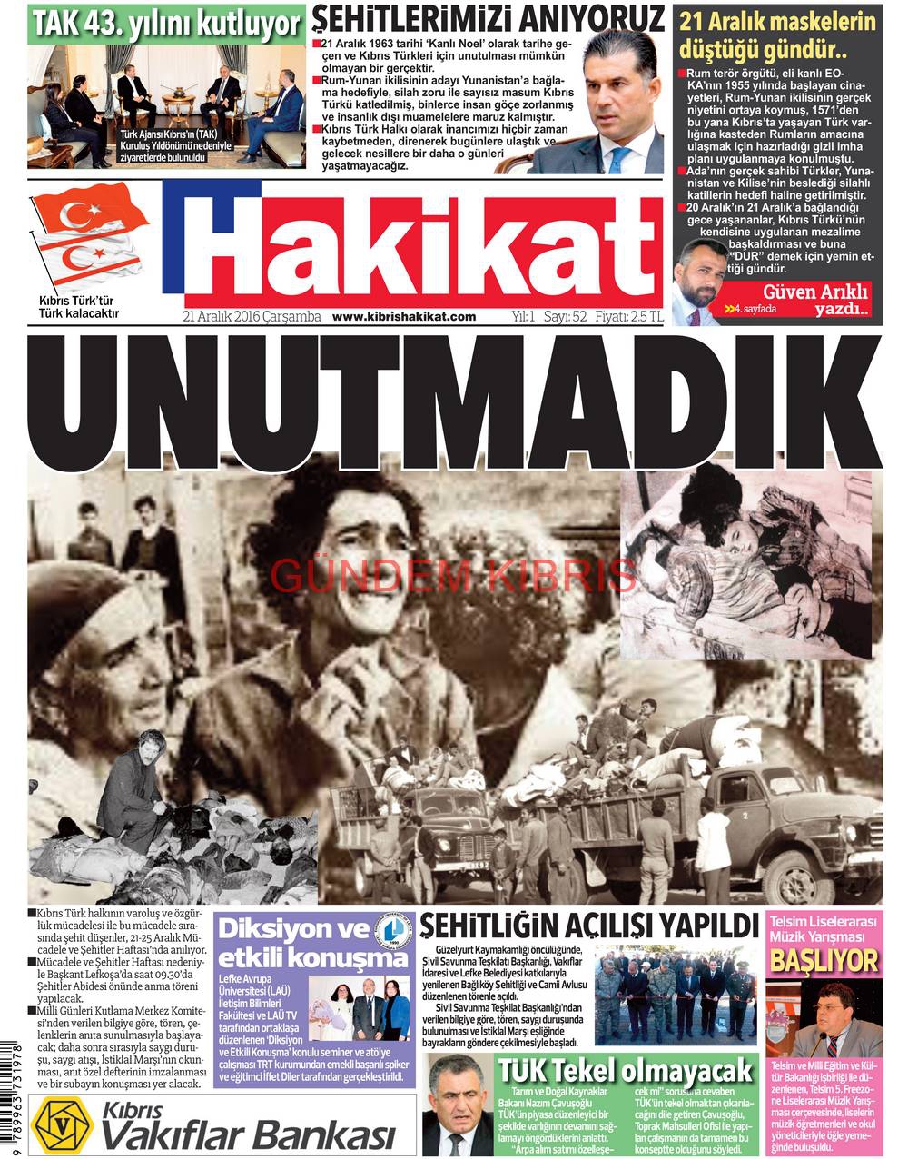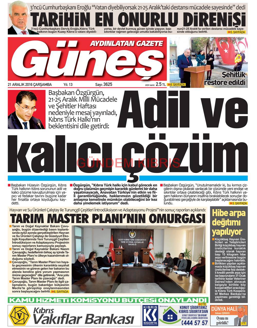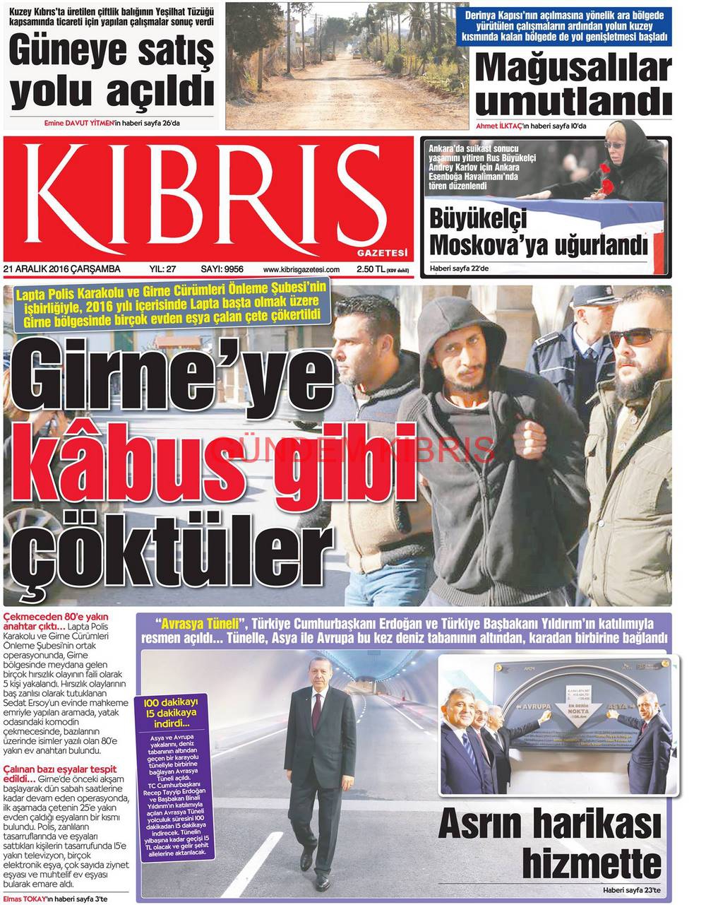 KKTC Gazete Manşetleri 21 Aralık 2016