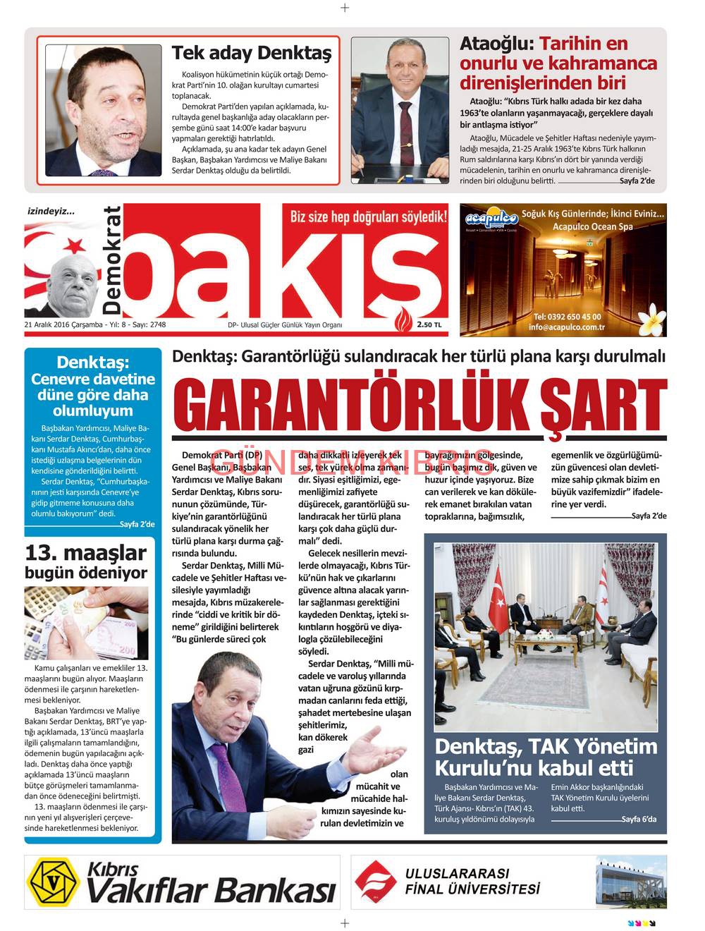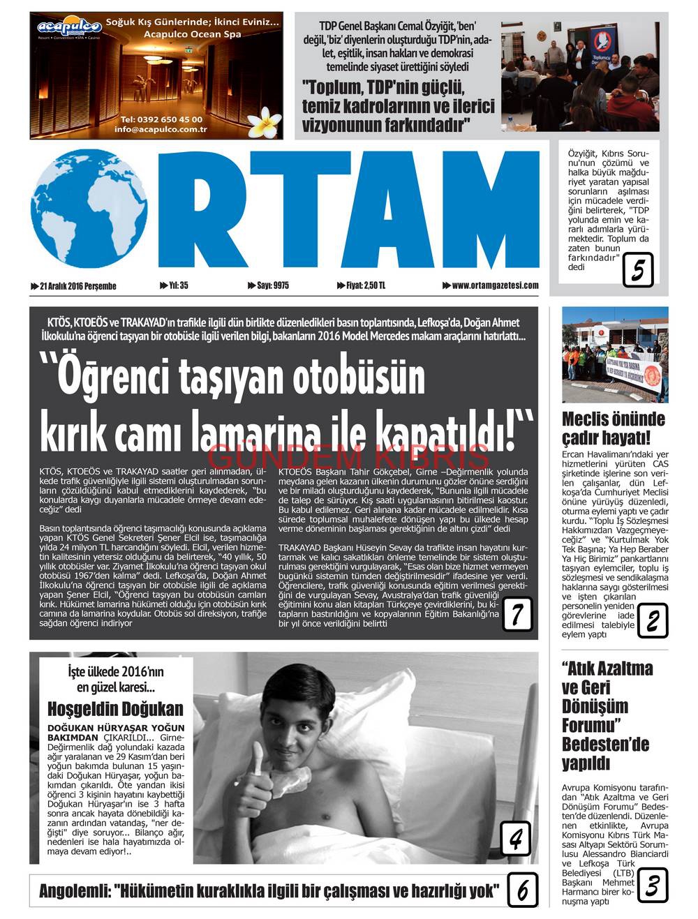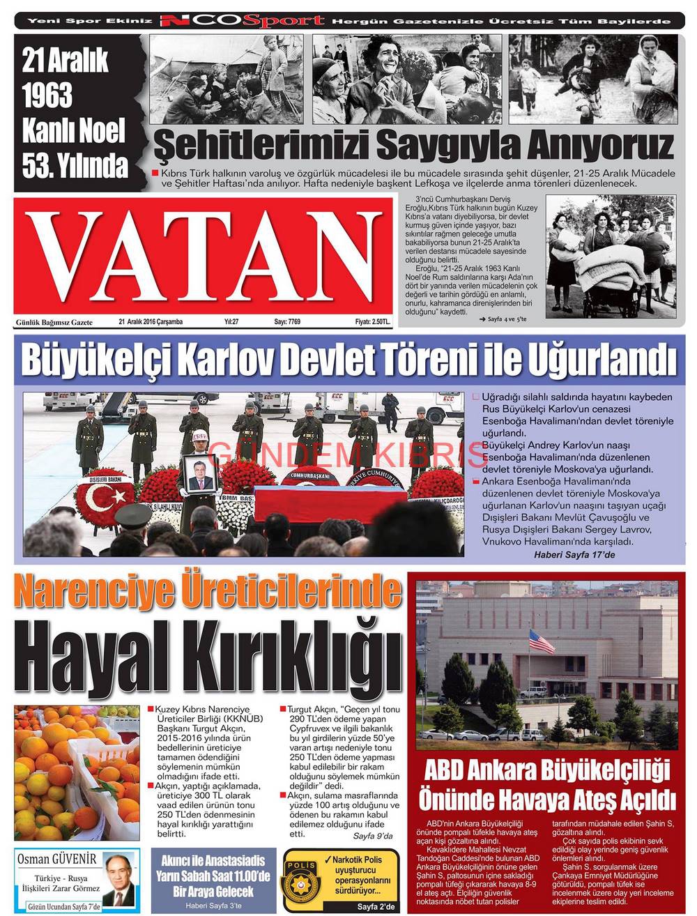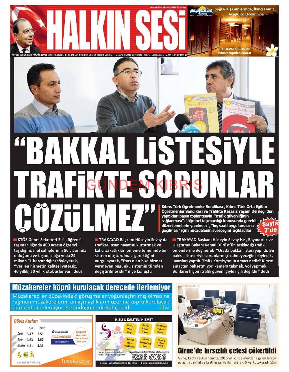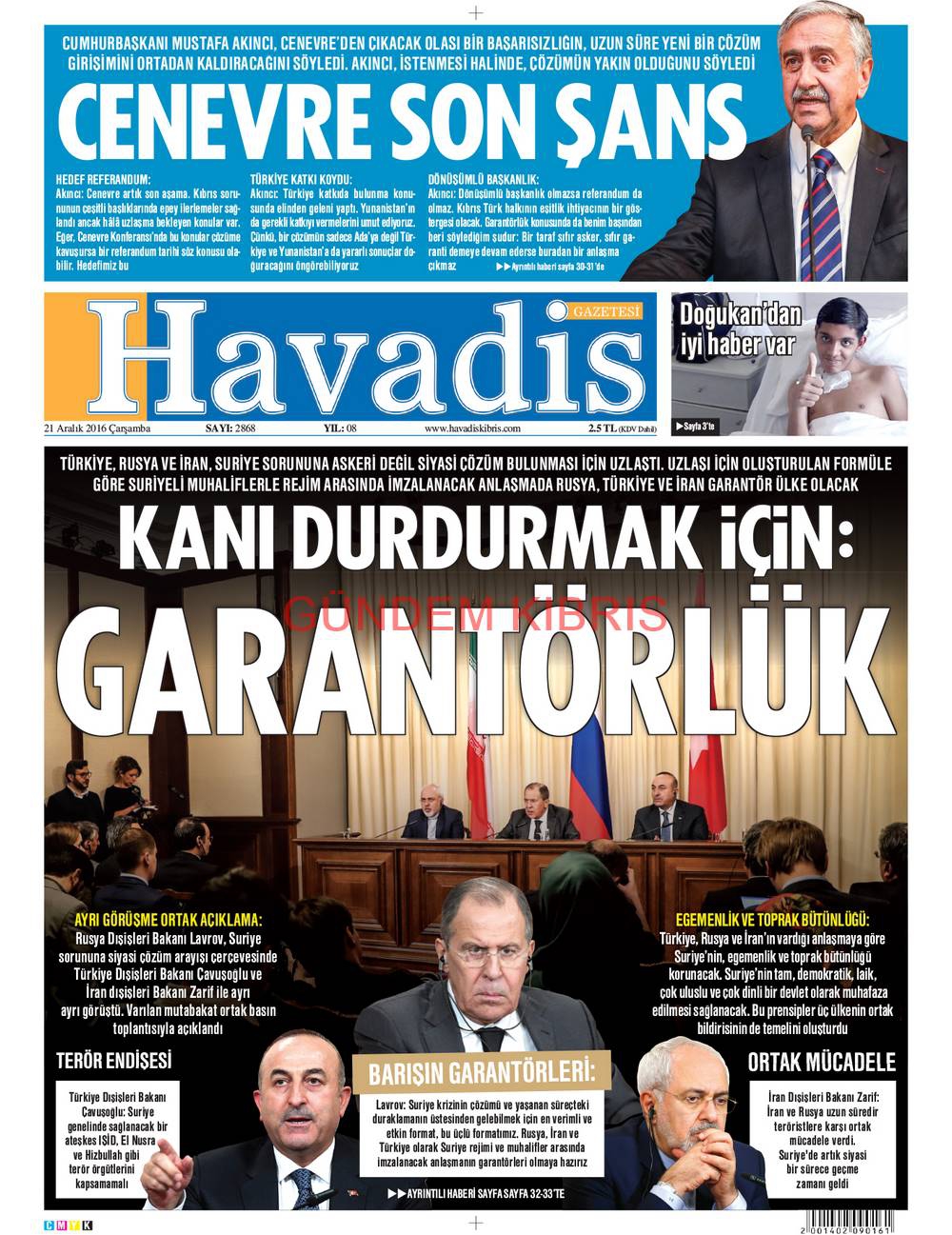 KKTC Gazete Manşetleri 21 Aralık 2016