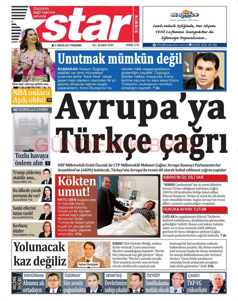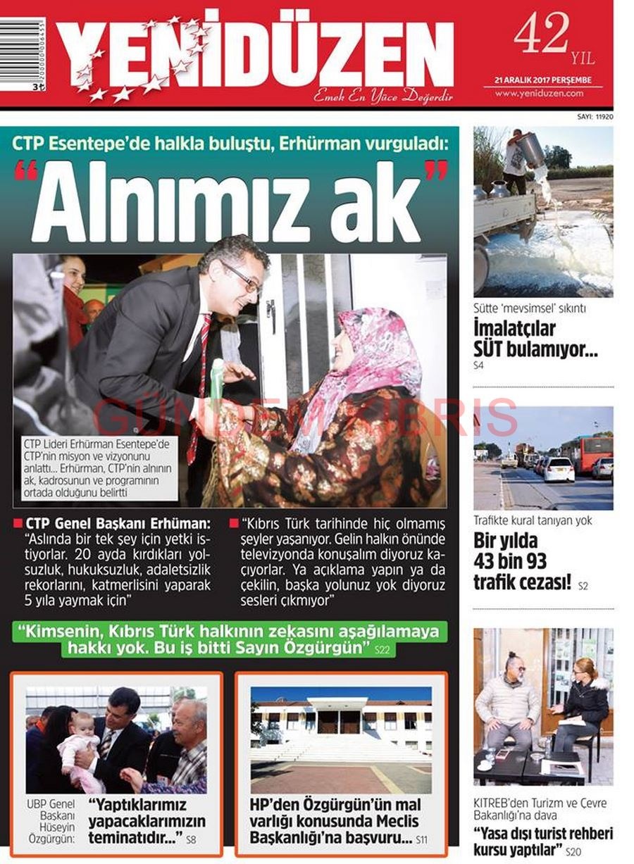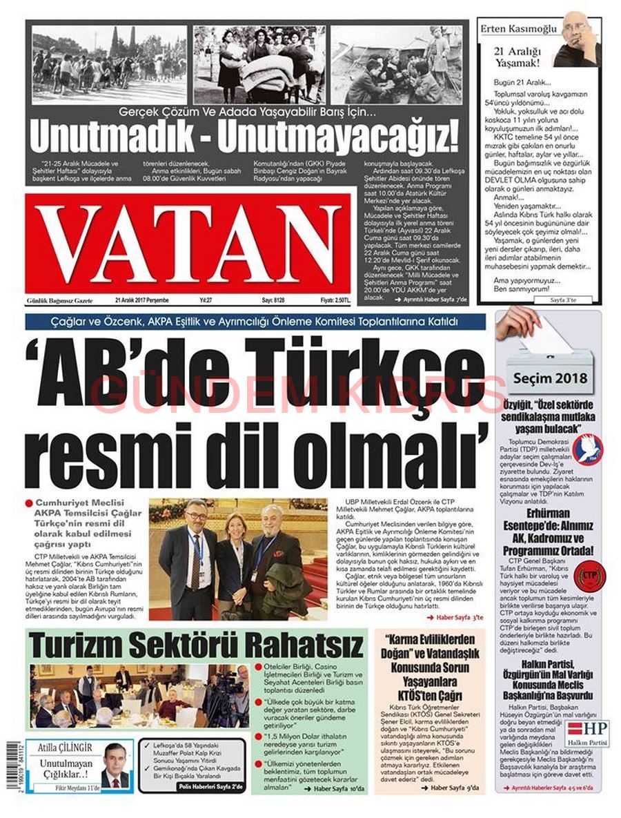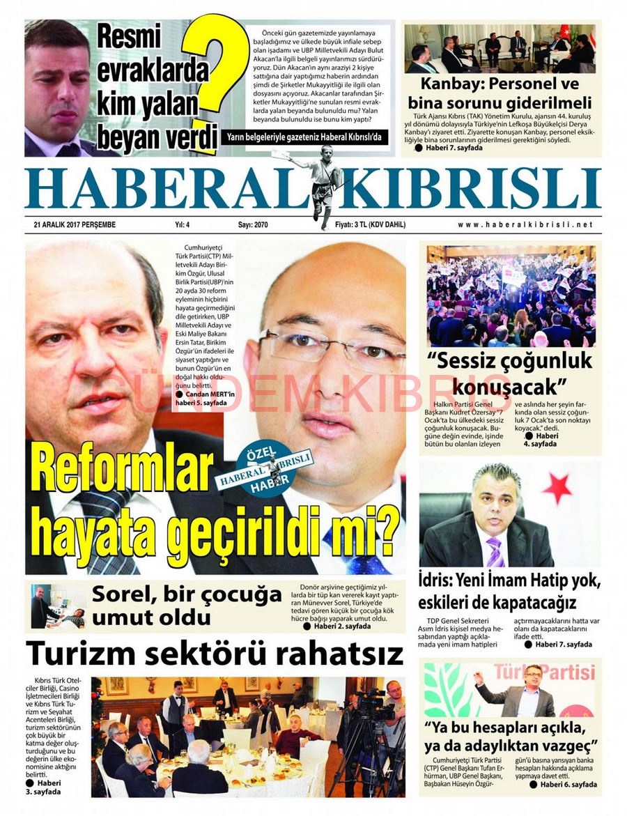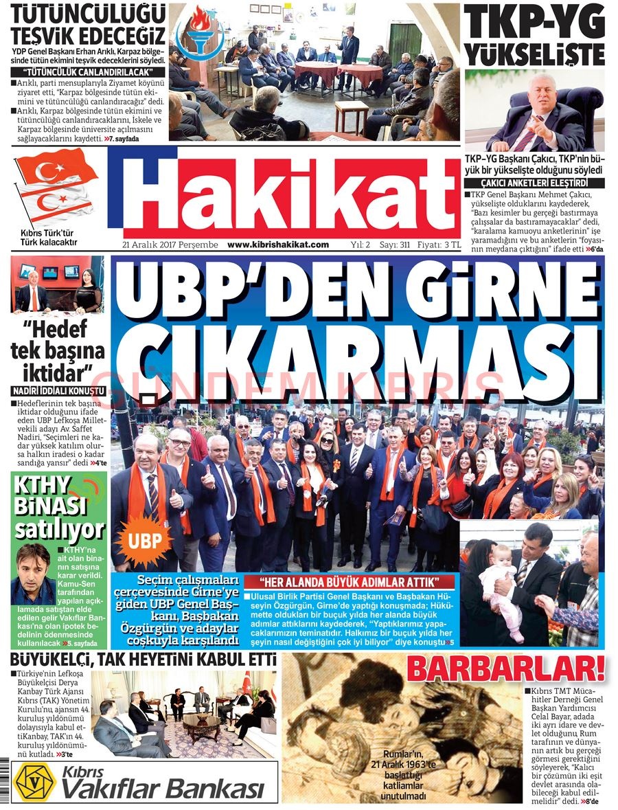 KKTC Gazete Manşetleri 21 Aralık 2017