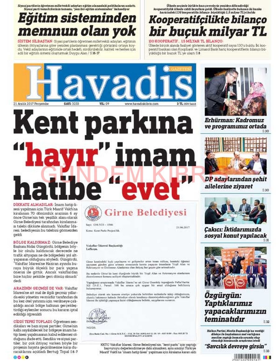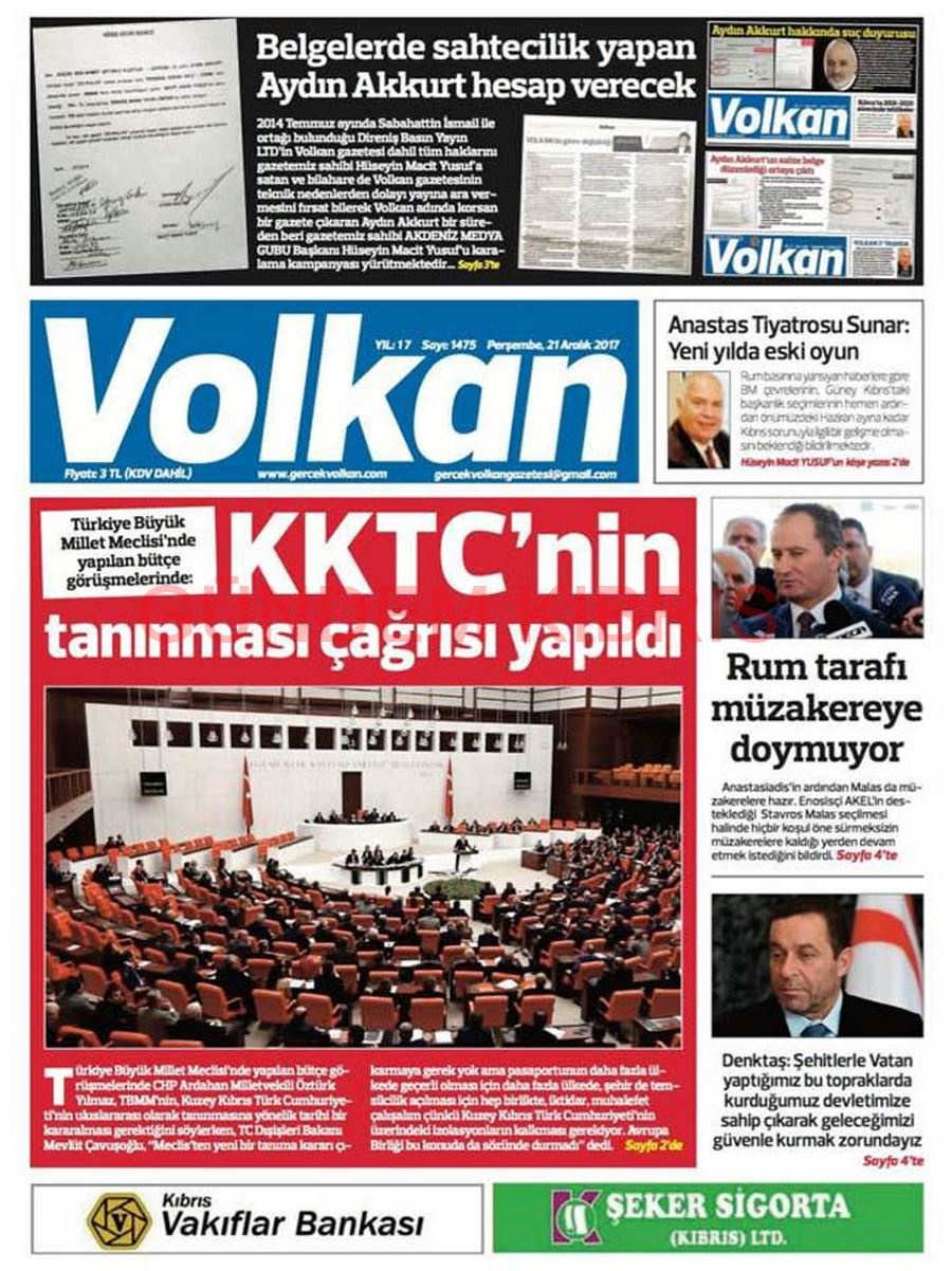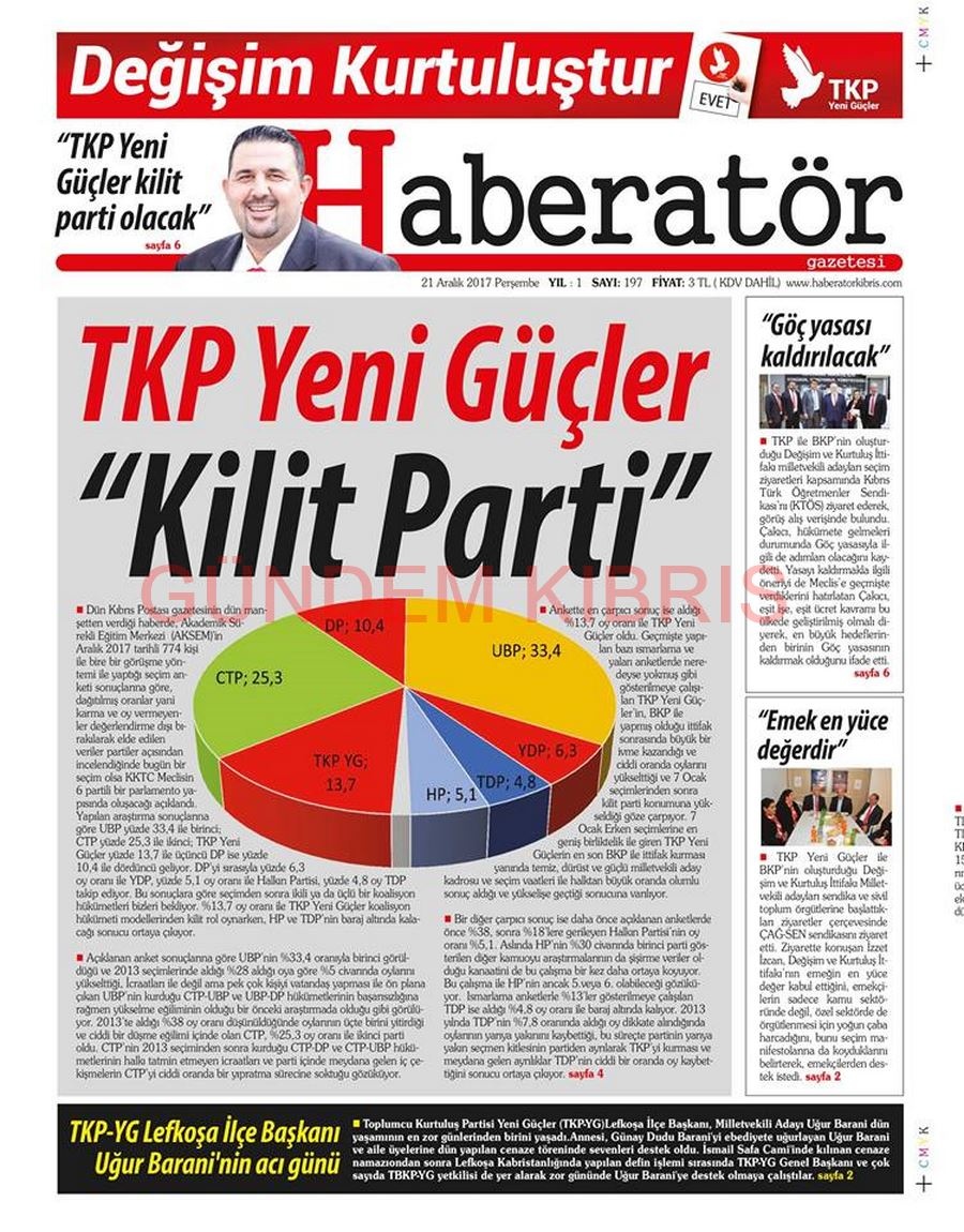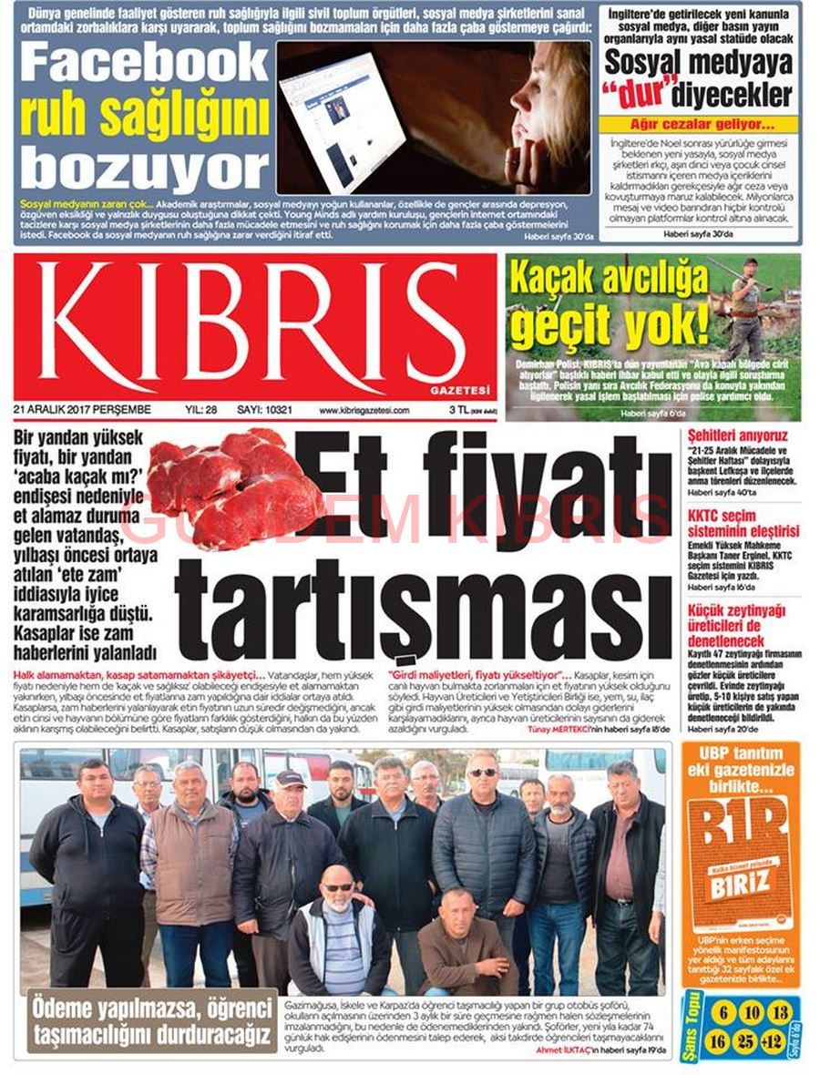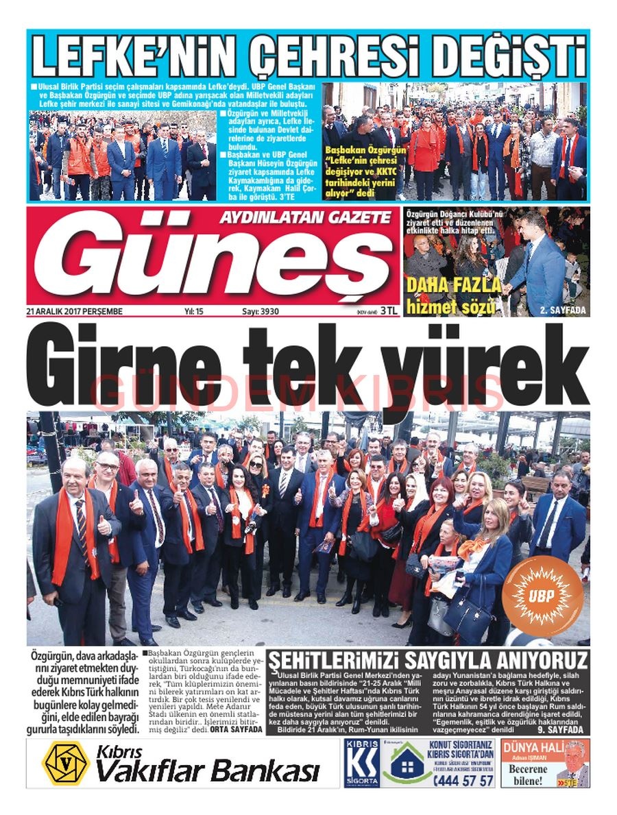 KKTC Gazete Manşetleri 21 Aralık 2017