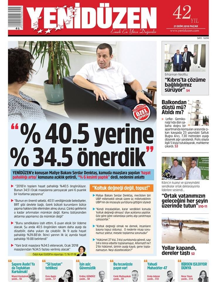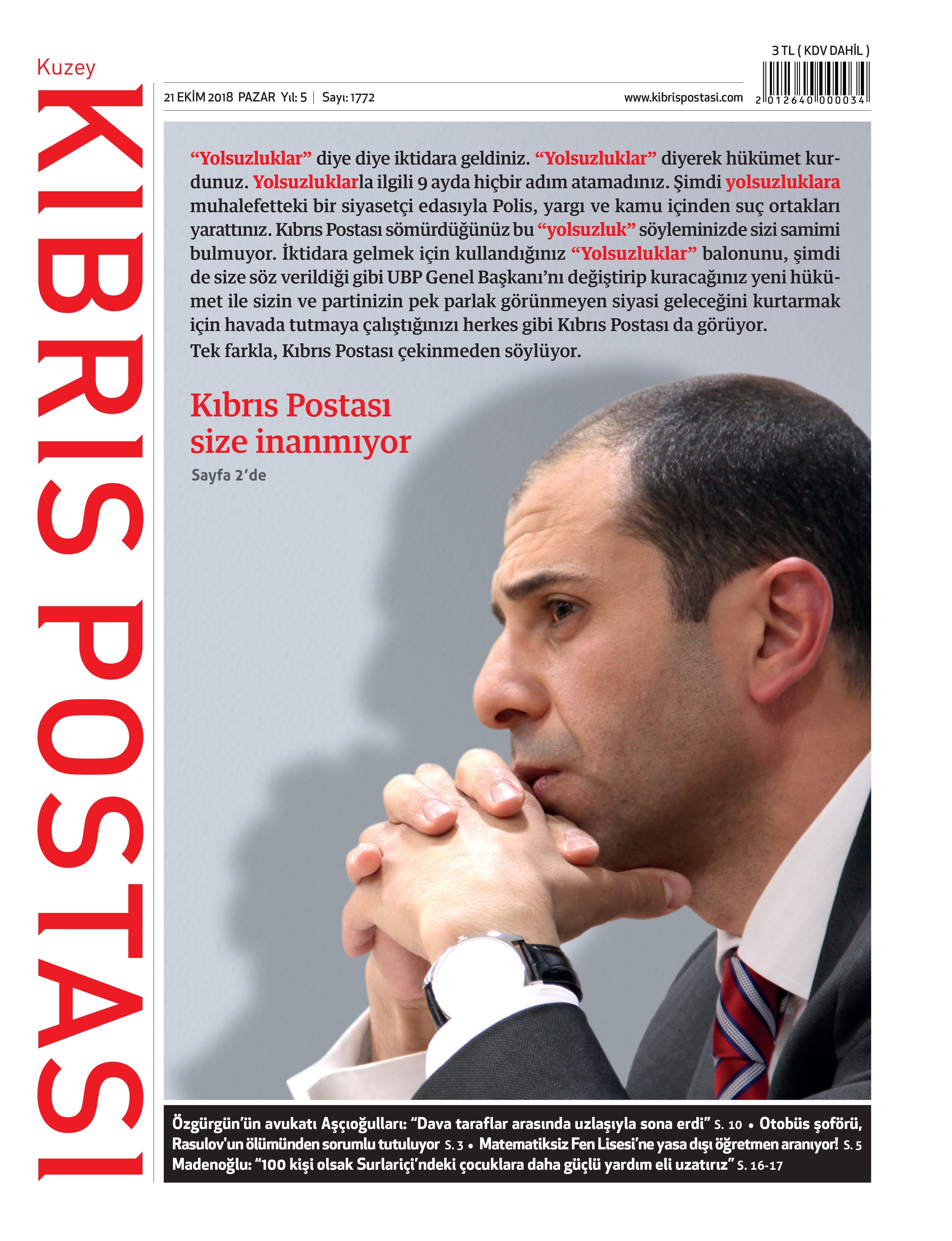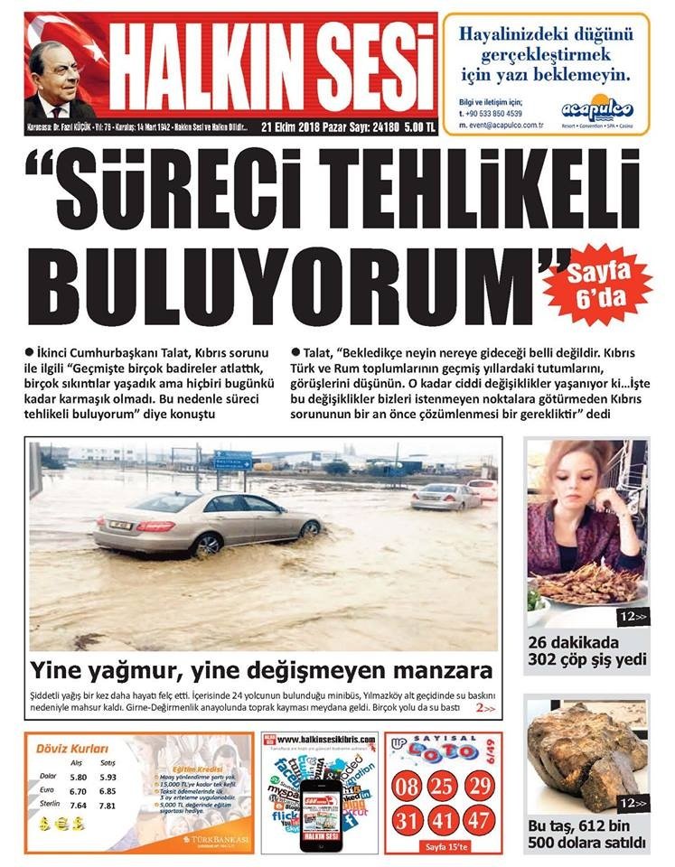 KKTC Gazete Manşetleri - 21 Ekim 2018