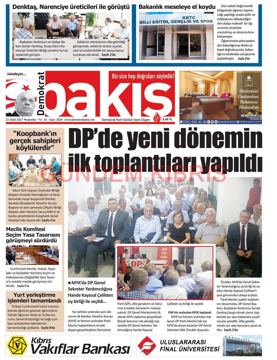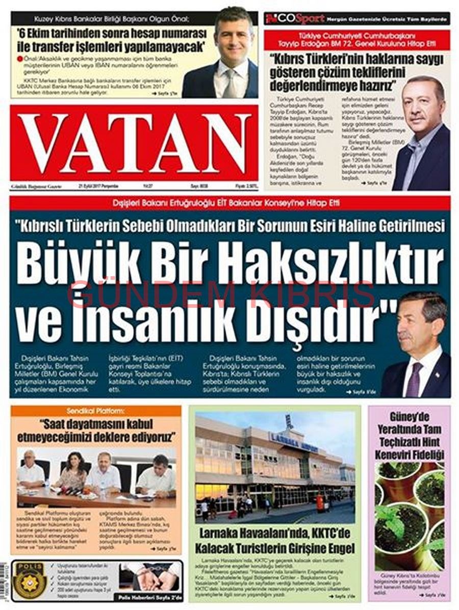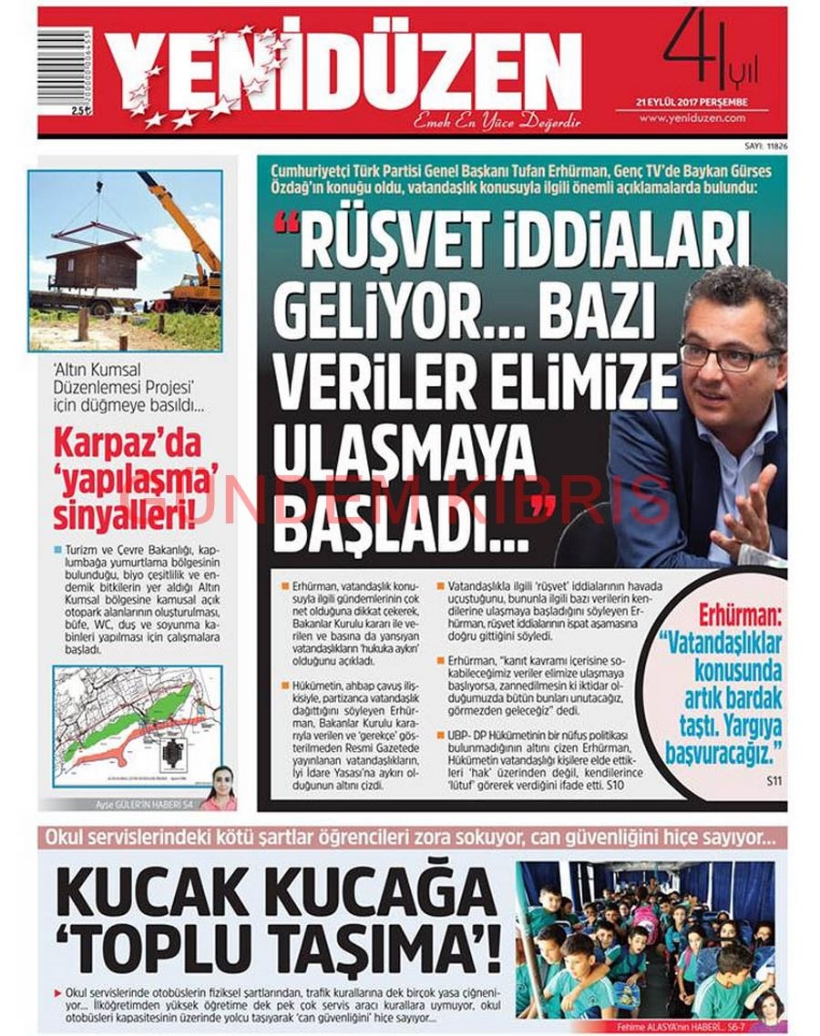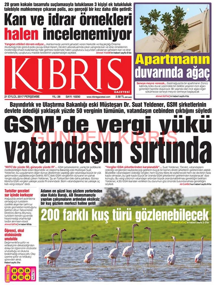 KKTC Gazete Manşetleri 21 Eylül 2017