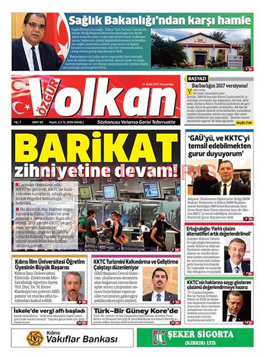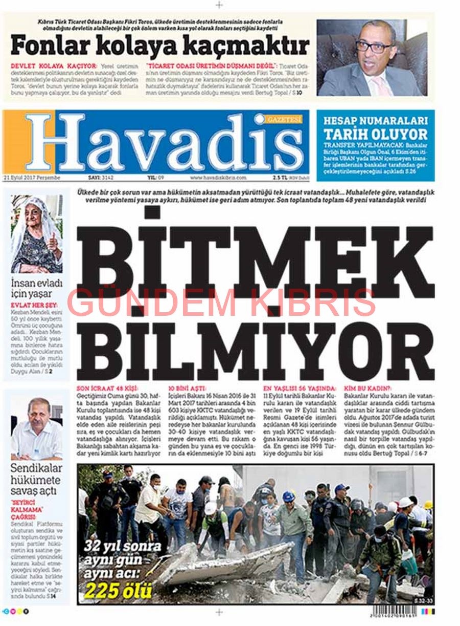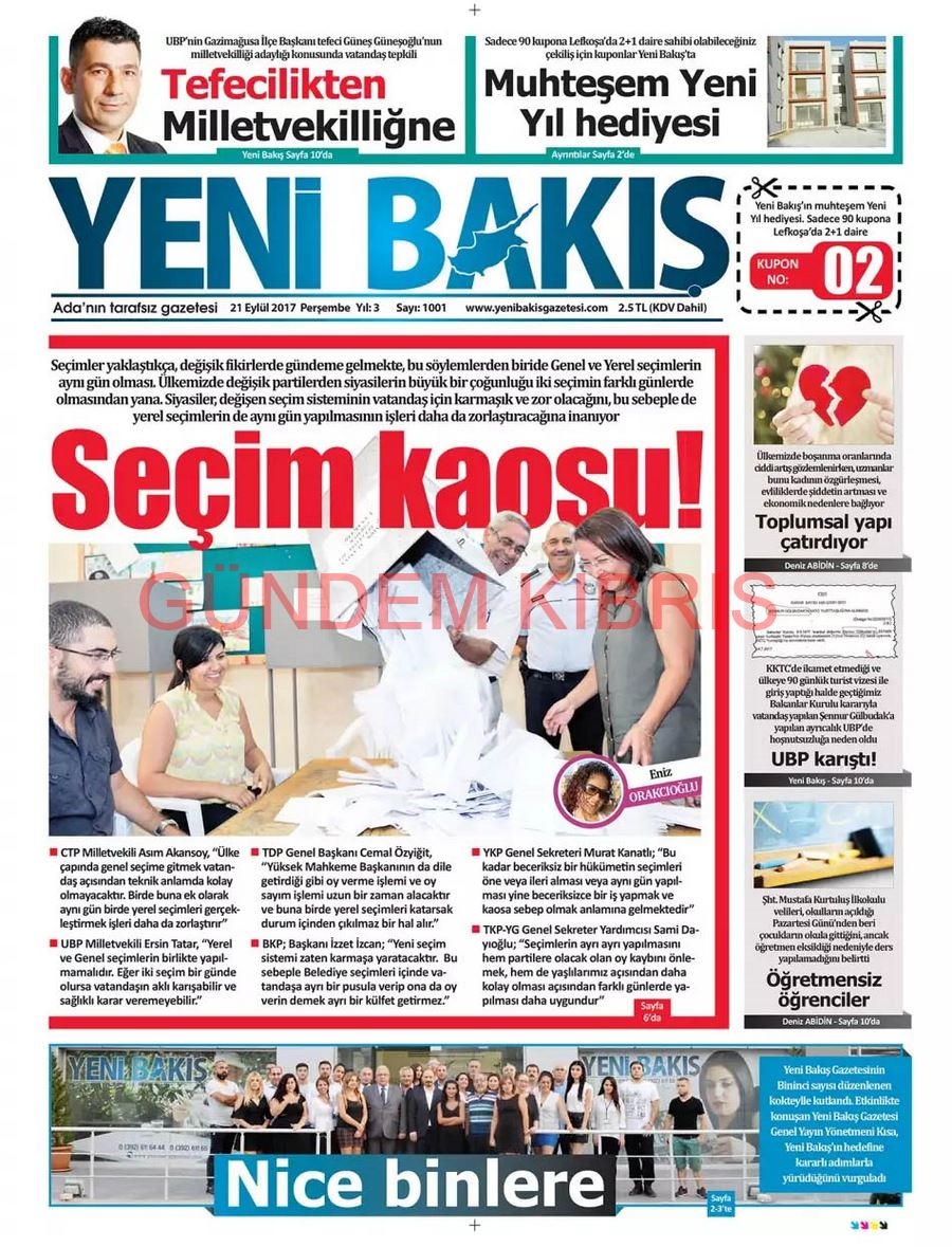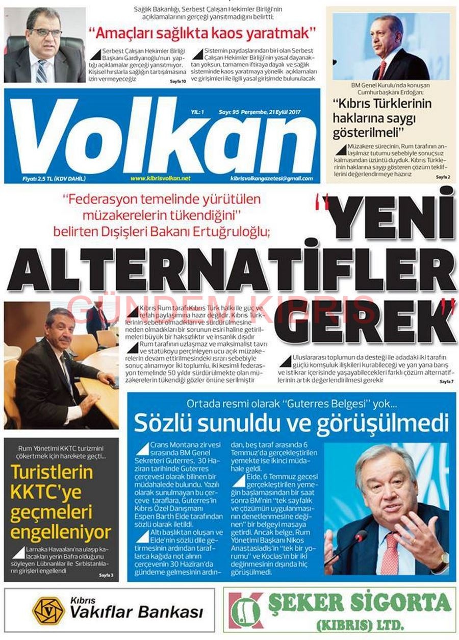 KKTC Gazete Manşetleri 21 Eylül 2017