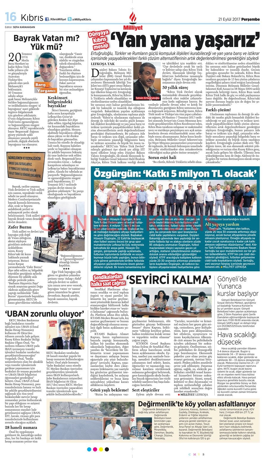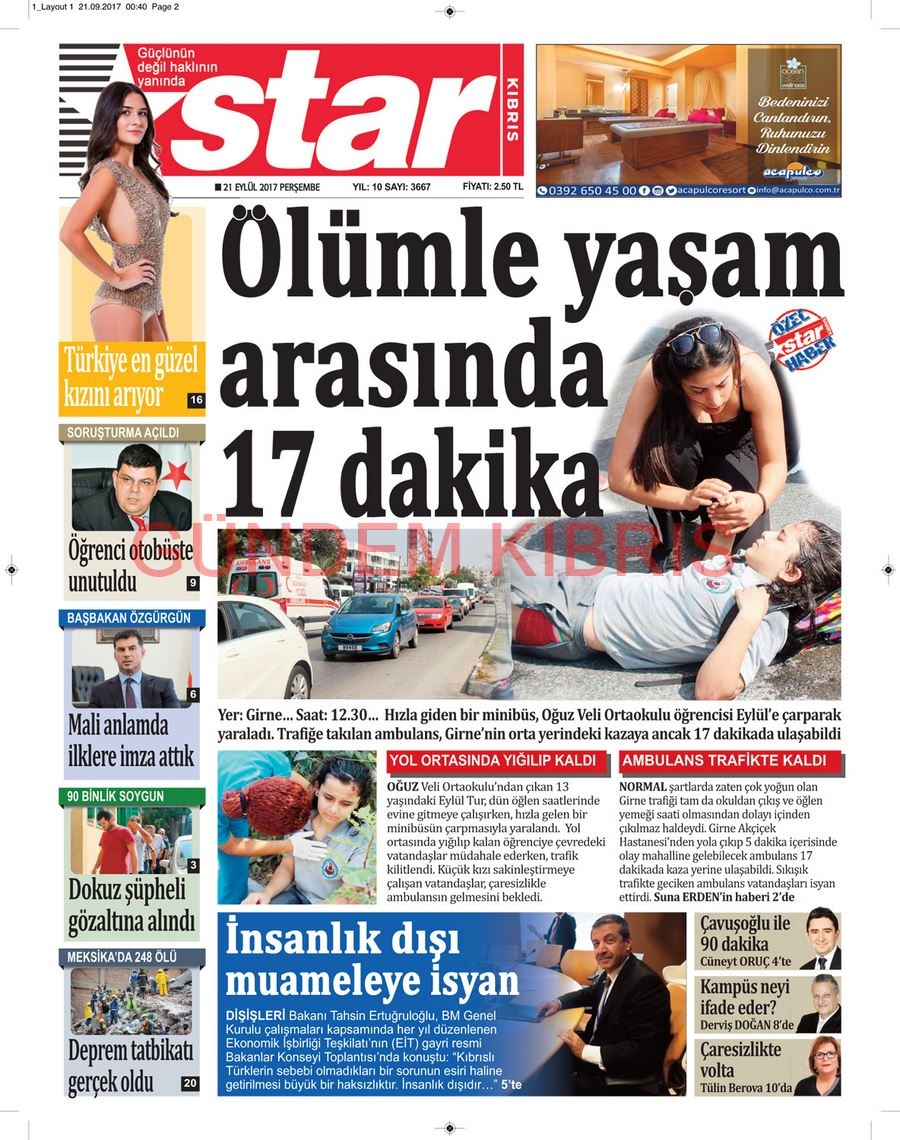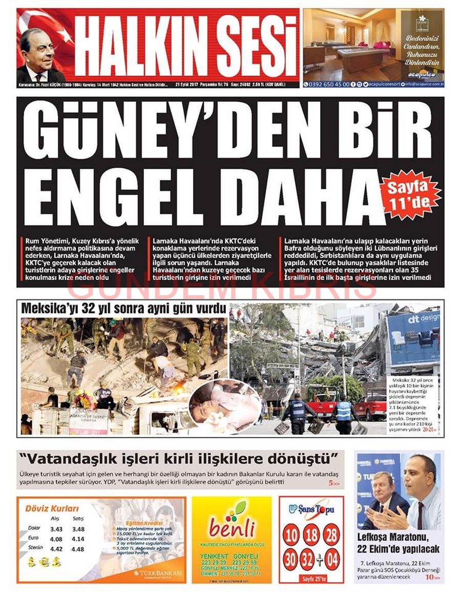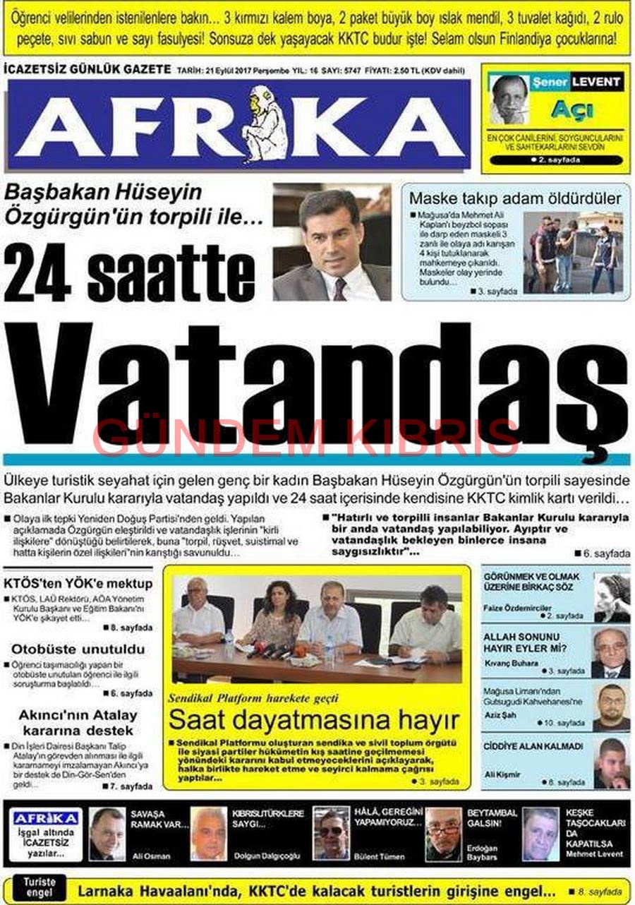 KKTC Gazete Manşetleri 21 Eylül 2017