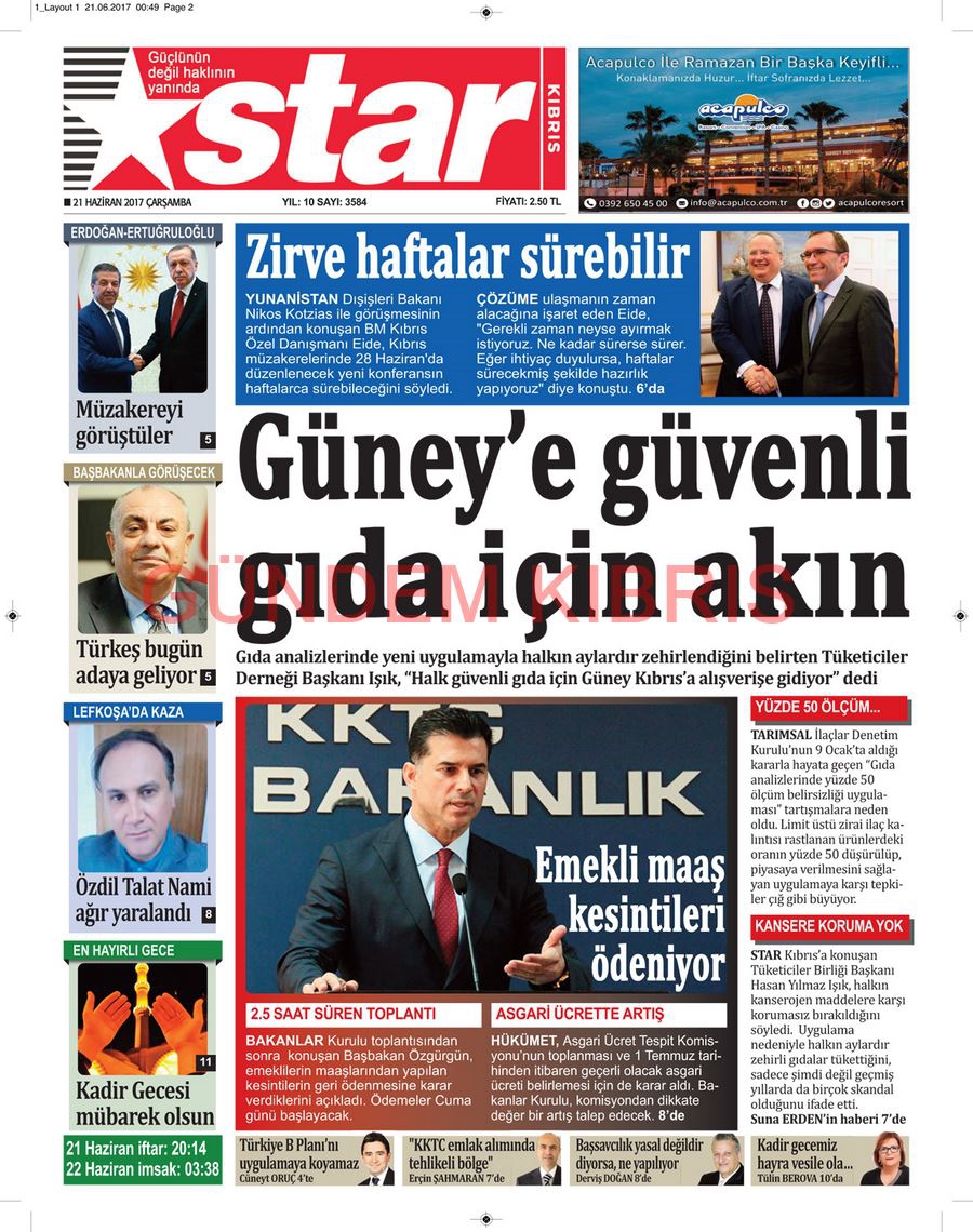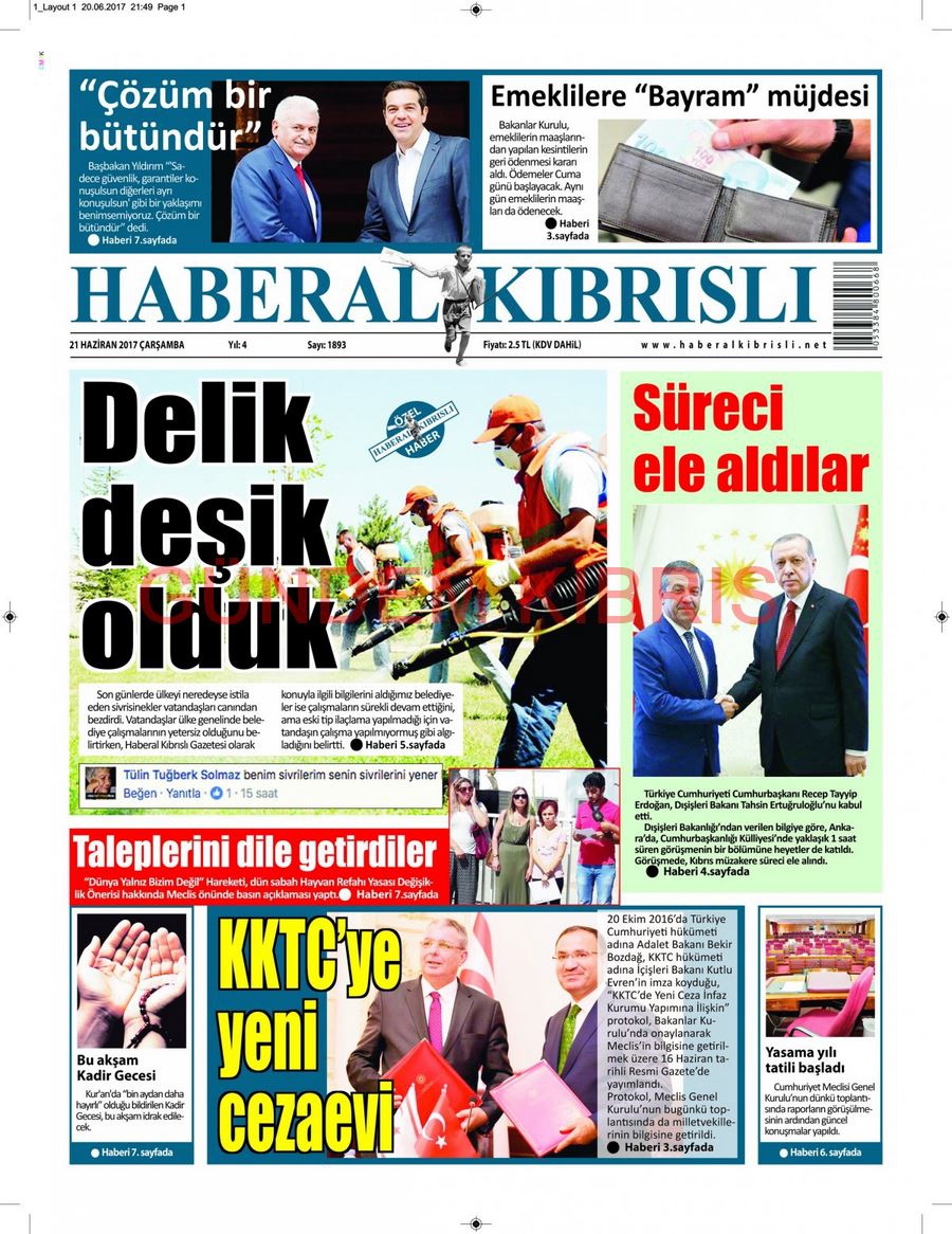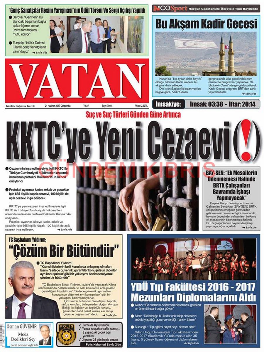 KKTC Gazete Manşetleri 21 Haziran 2017