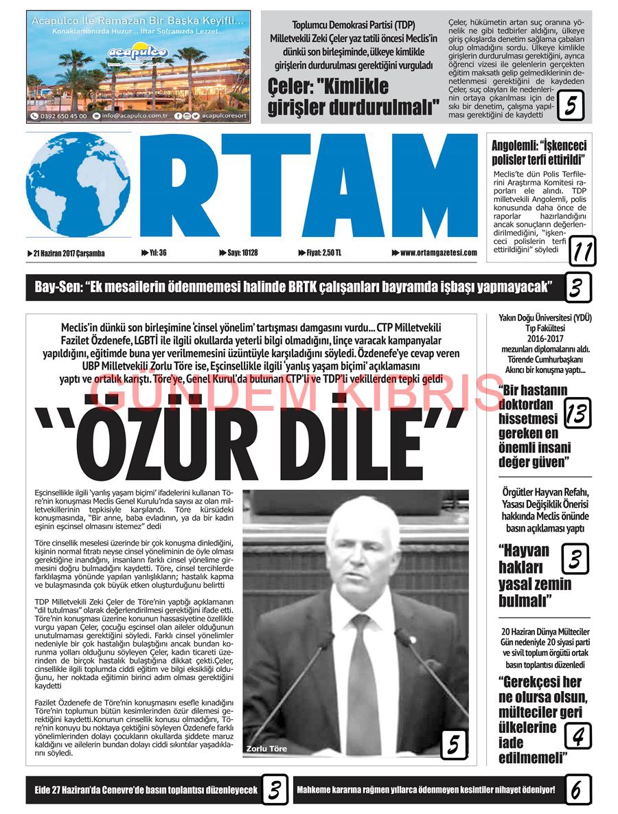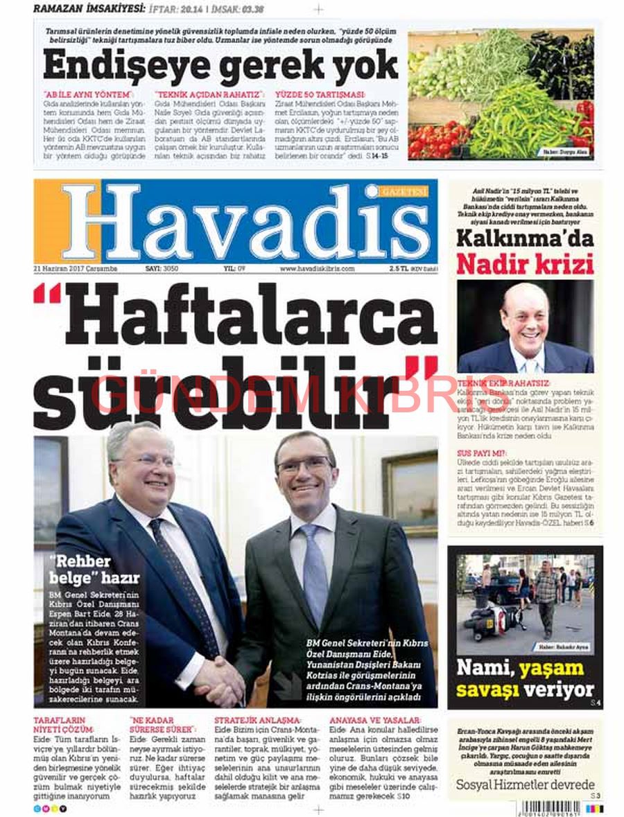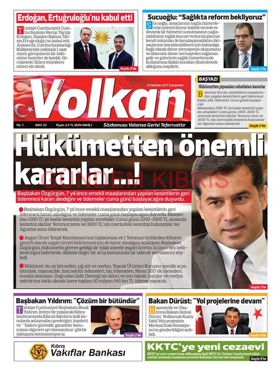 KKTC Gazete Manşetleri 21 Haziran 2017