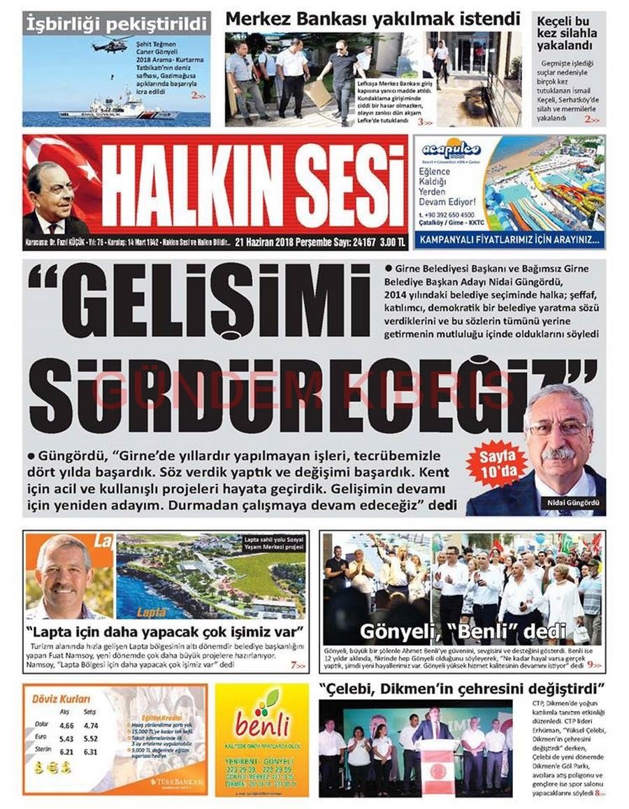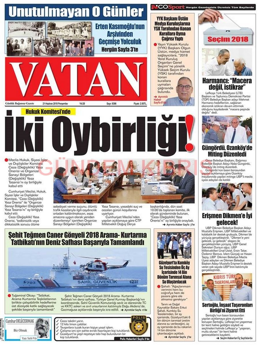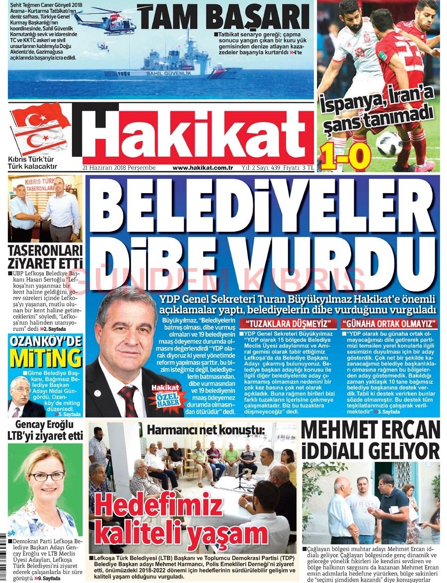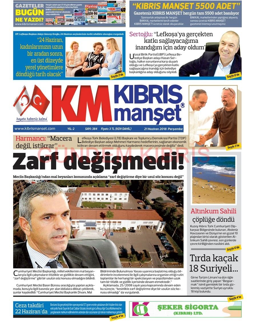 KKTC Gazete Manşetleri 21 Haziran 2018
