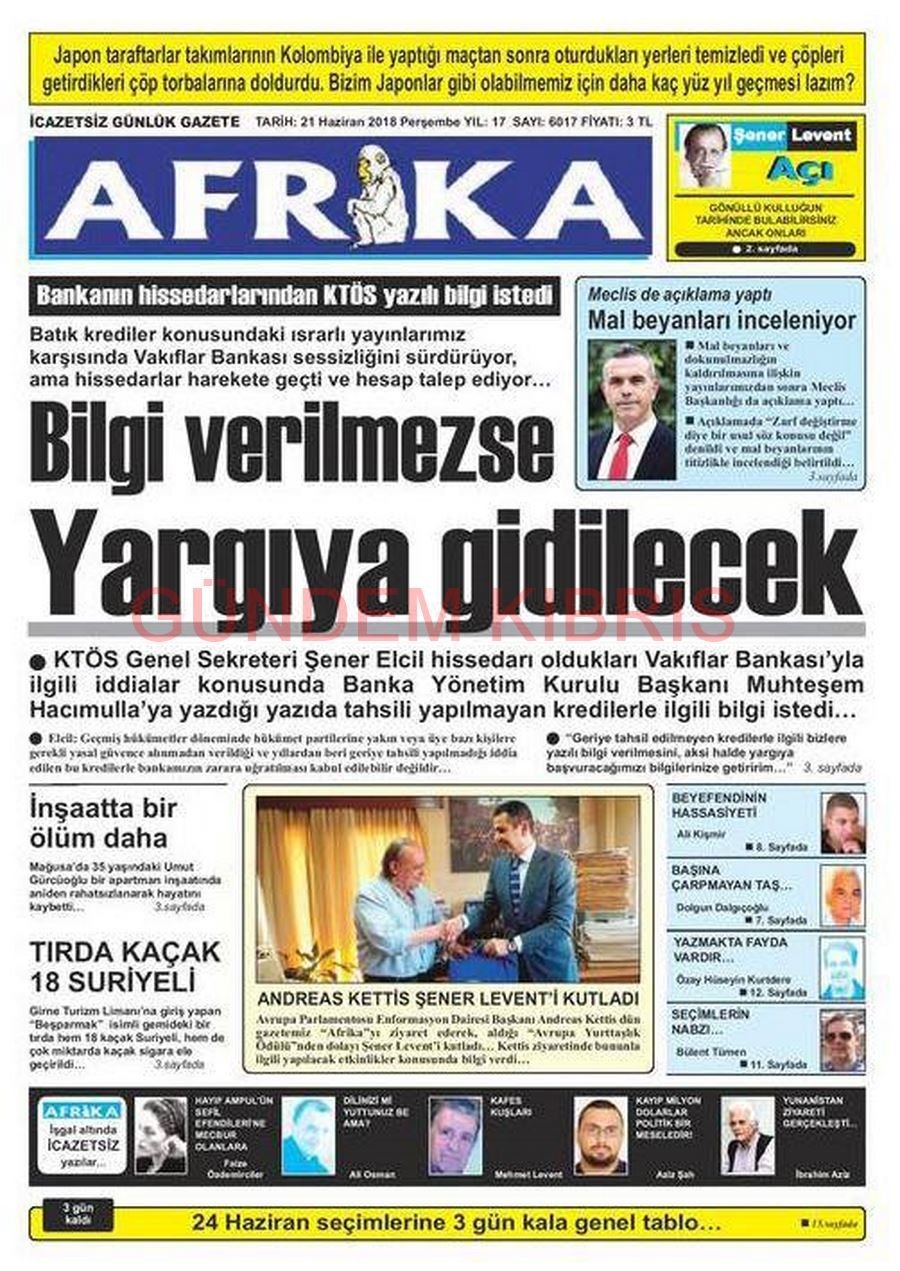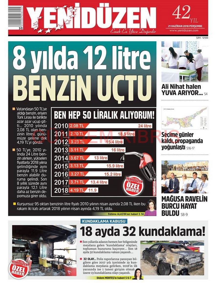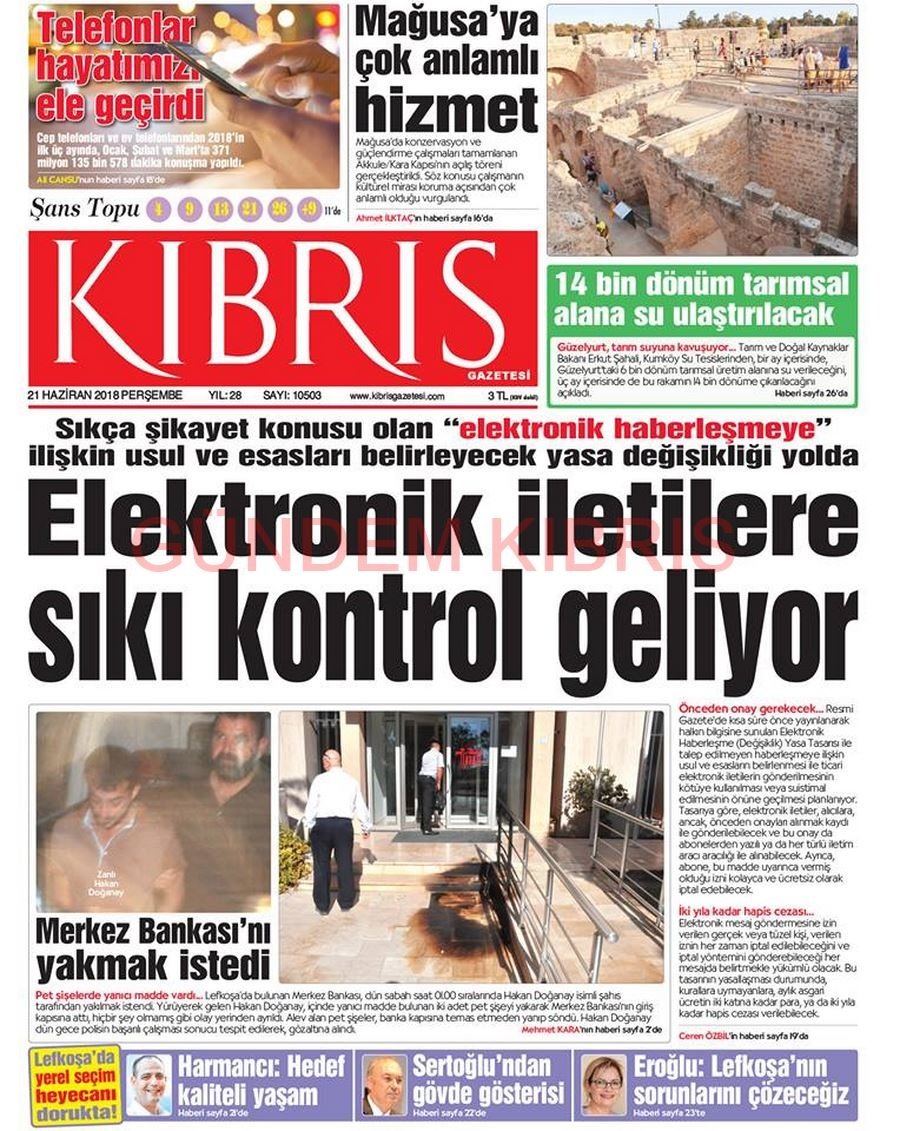 KKTC Gazete Manşetleri 21 Haziran 2018