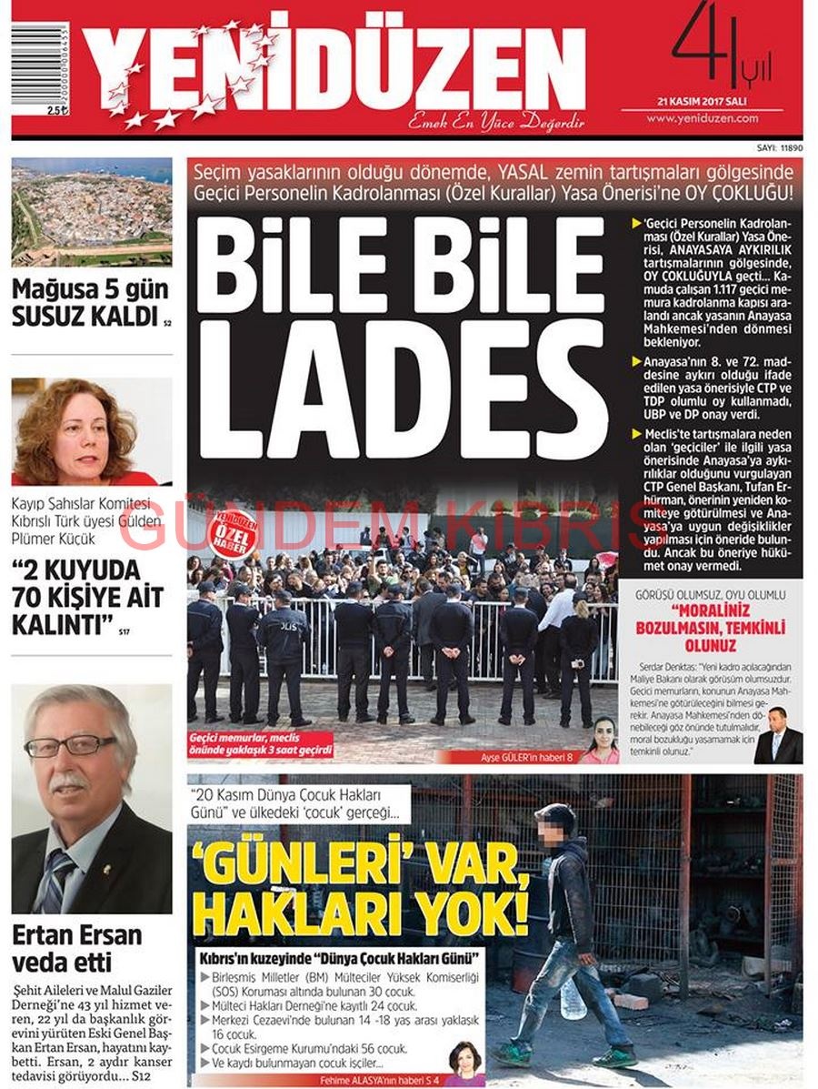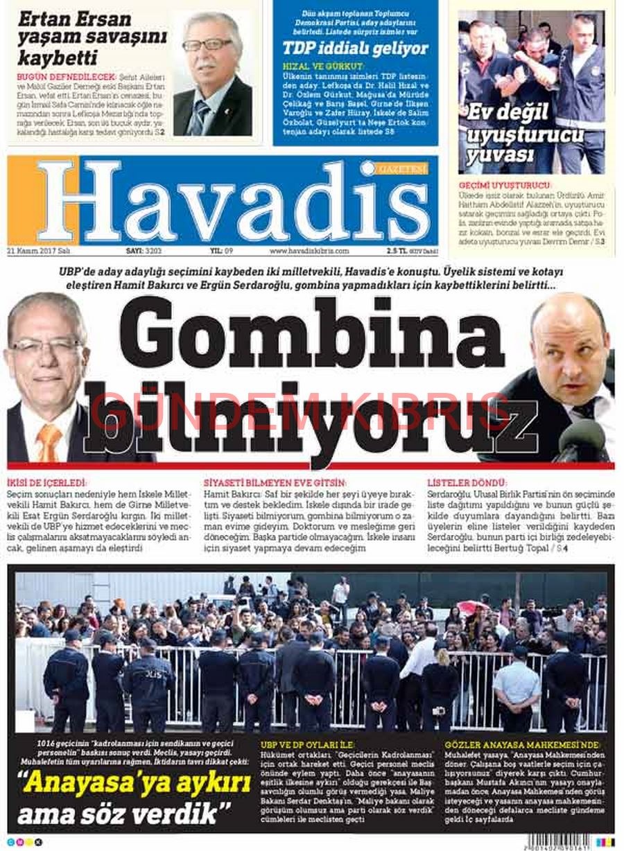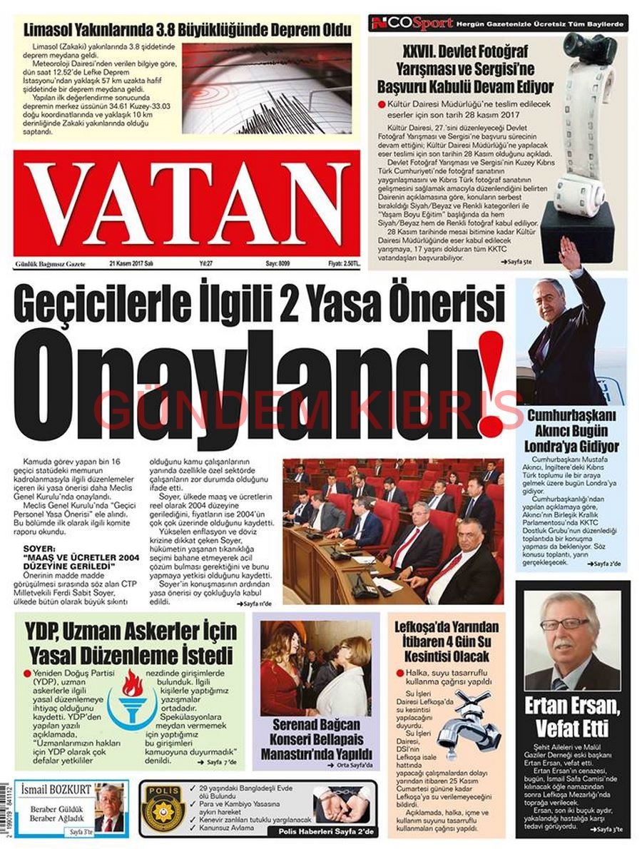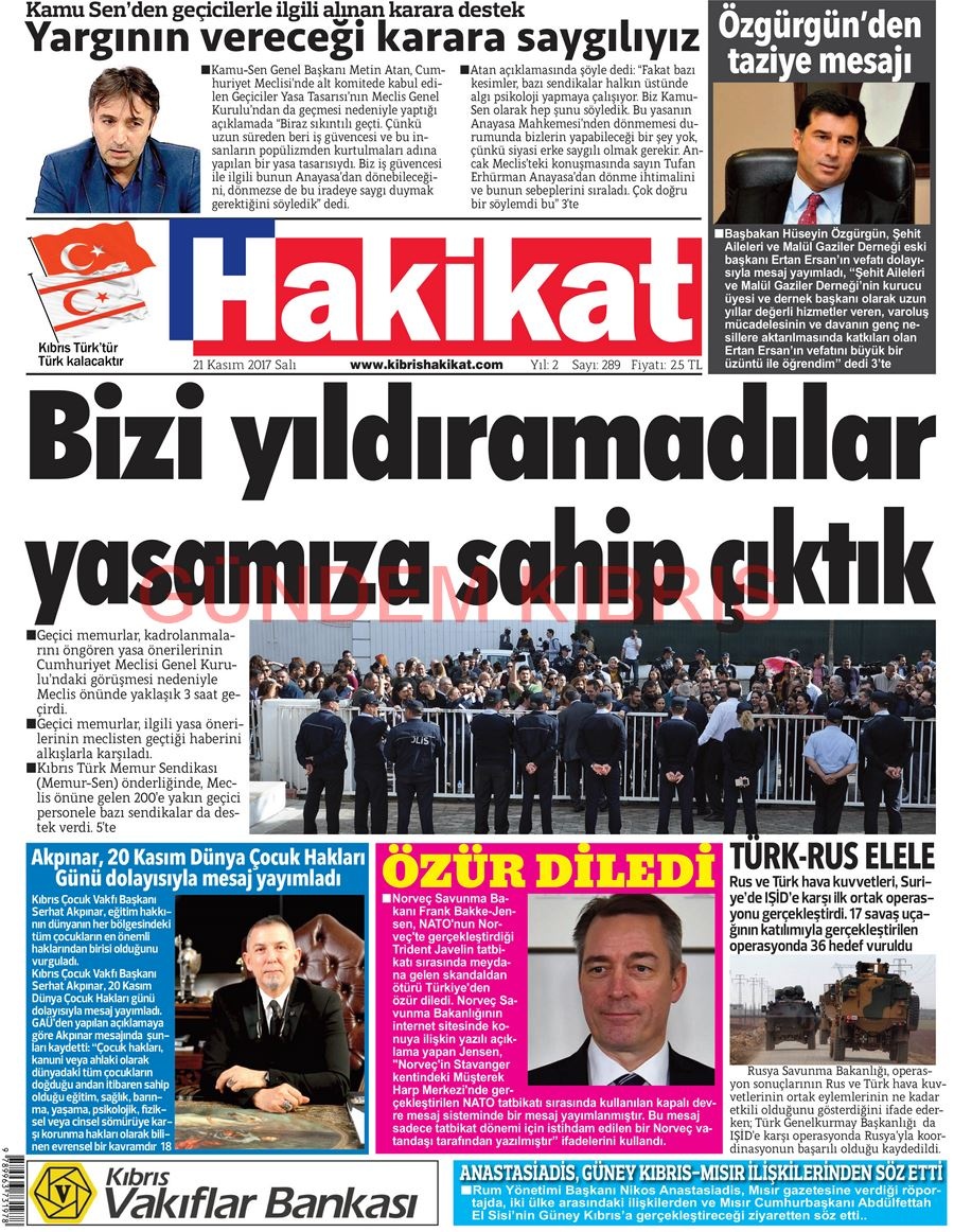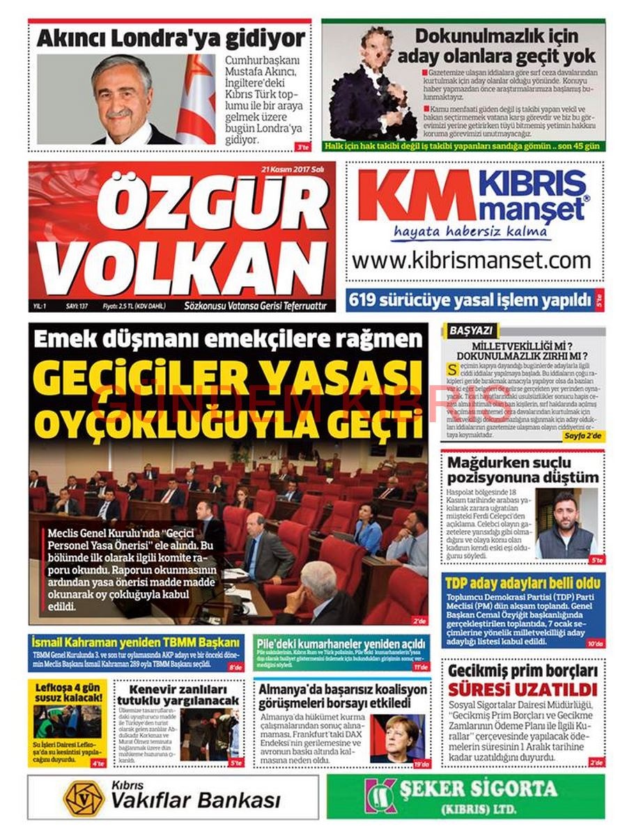 KKTC Gazete Manşetleri 21 Kasım 2017