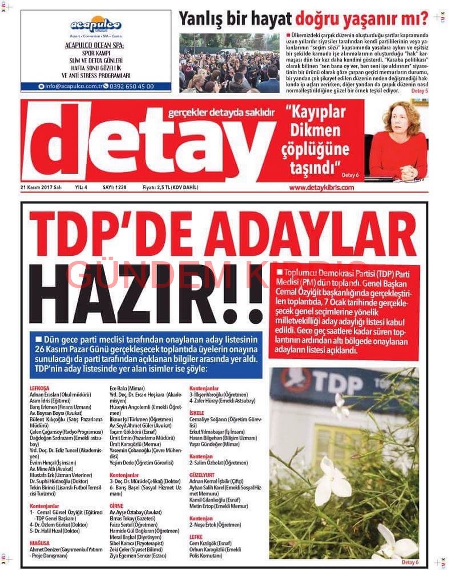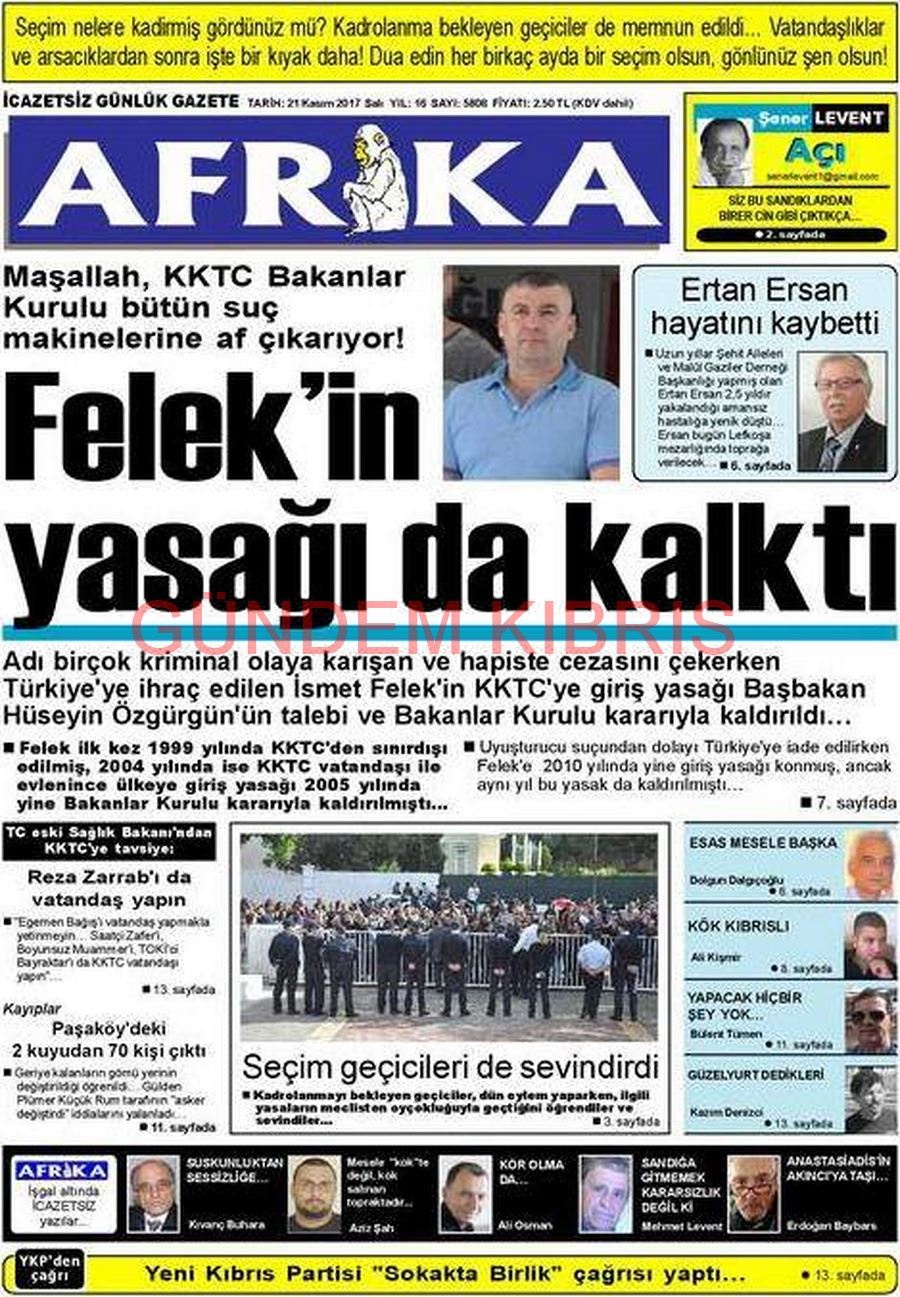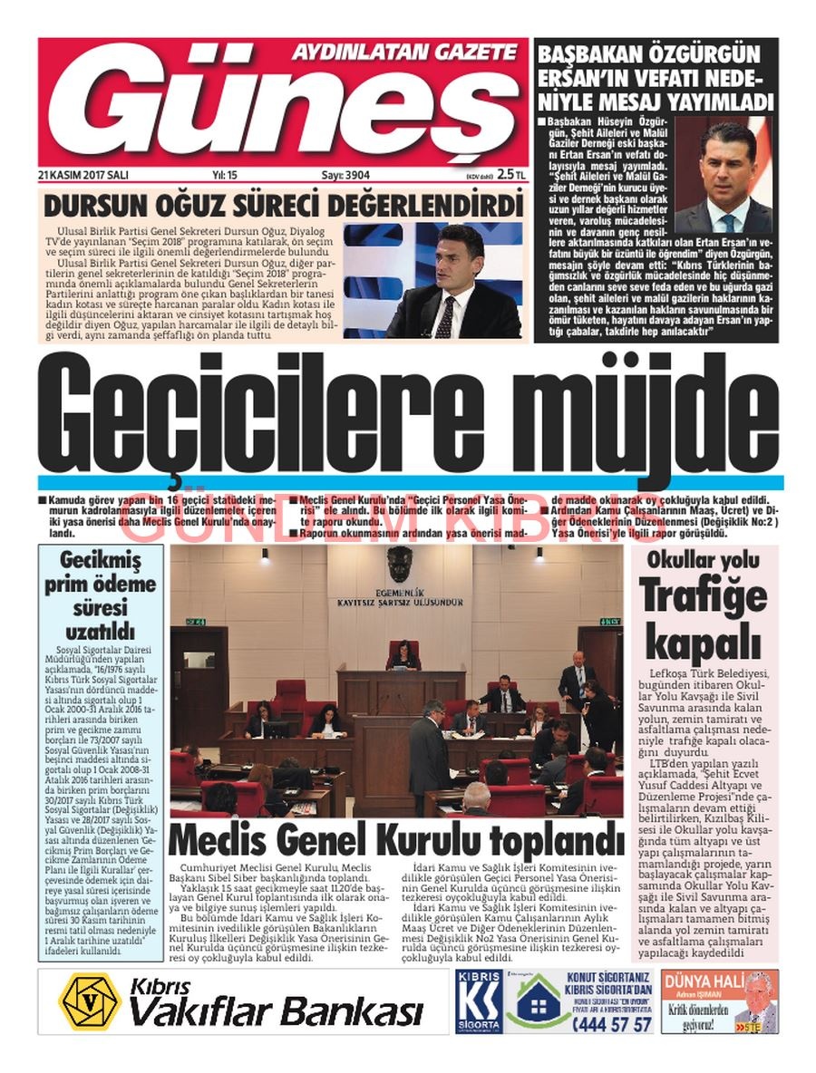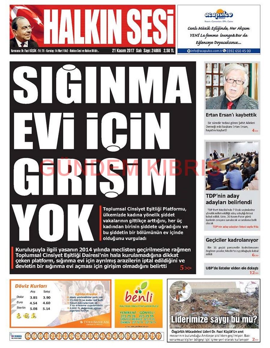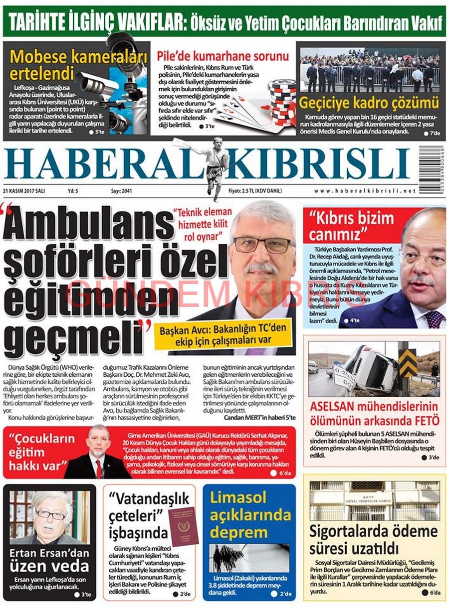 KKTC Gazete Manşetleri 21 Kasım 2017