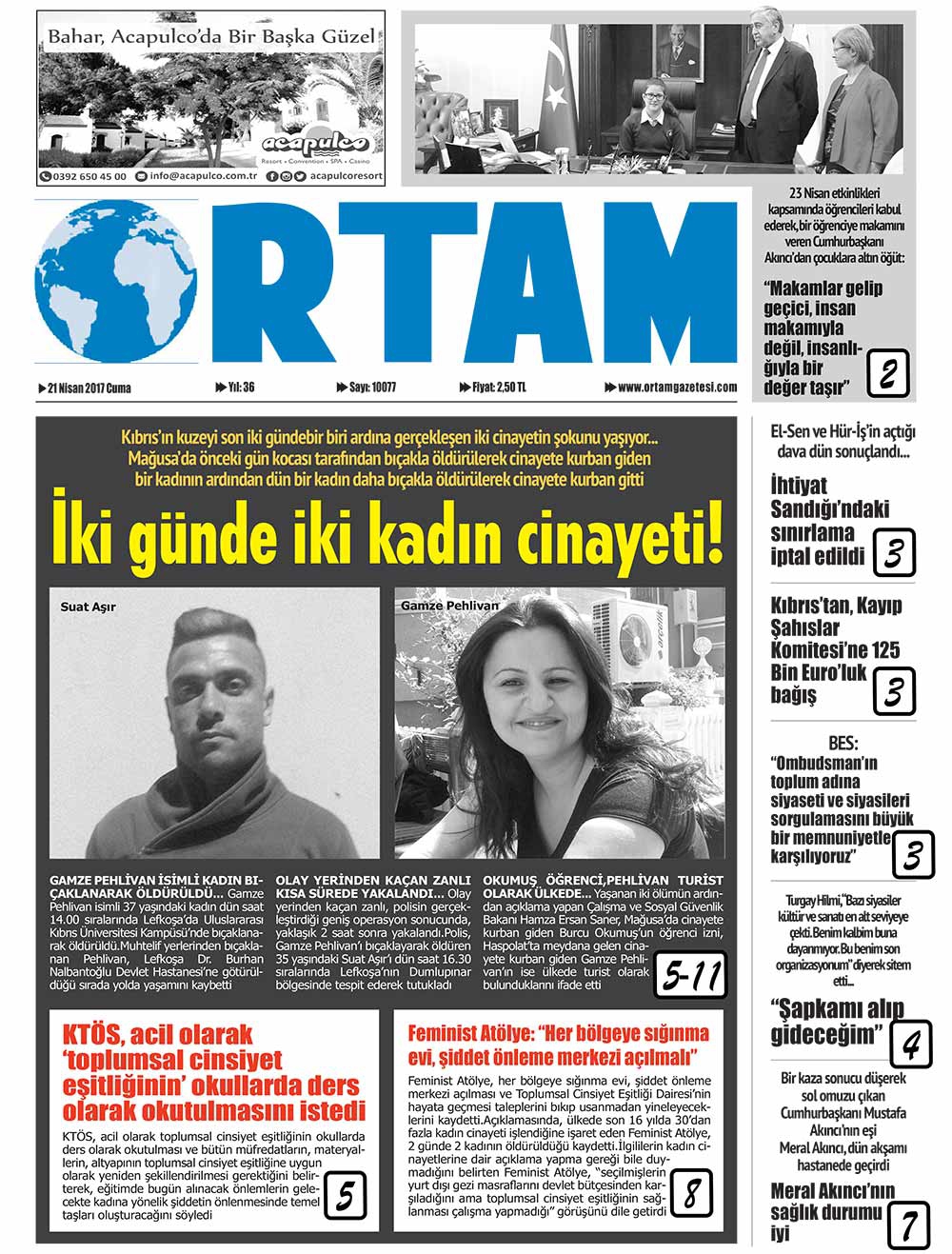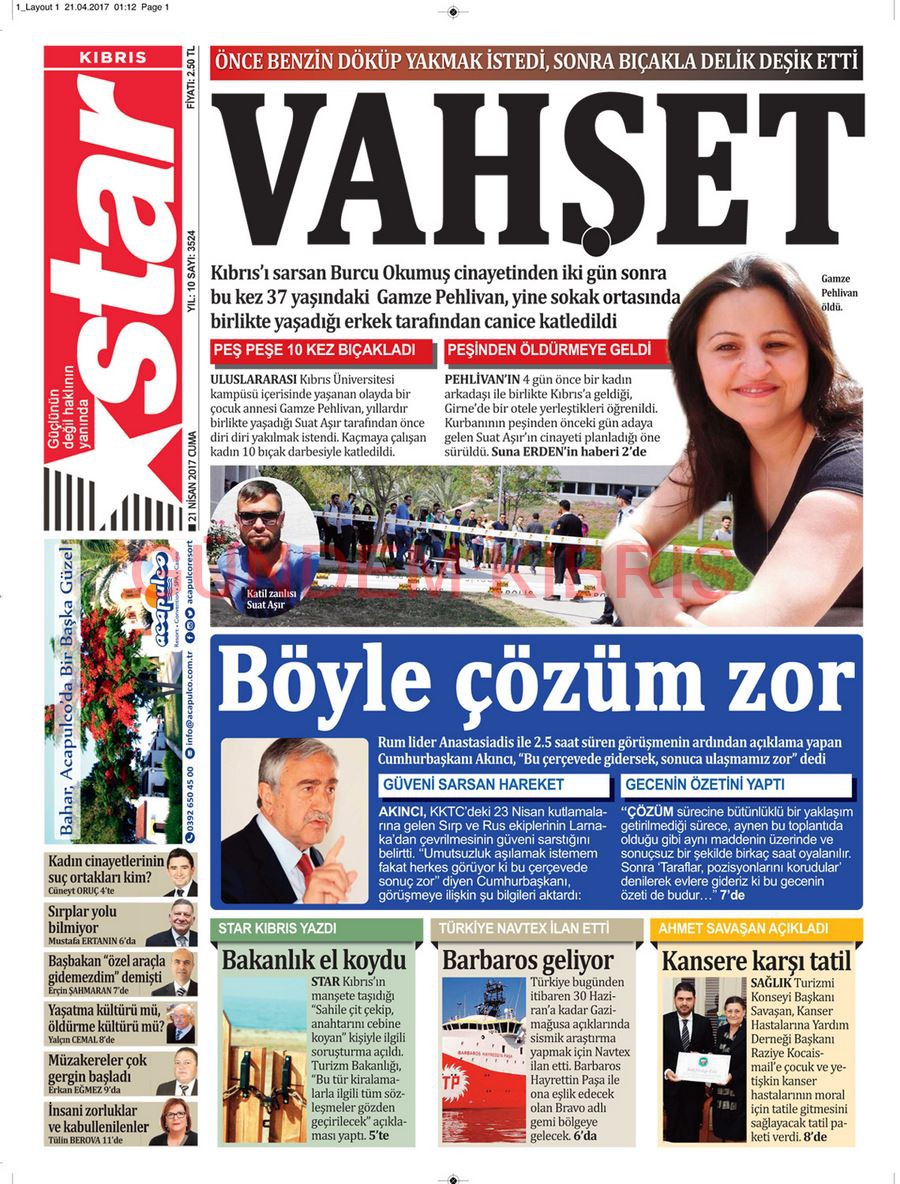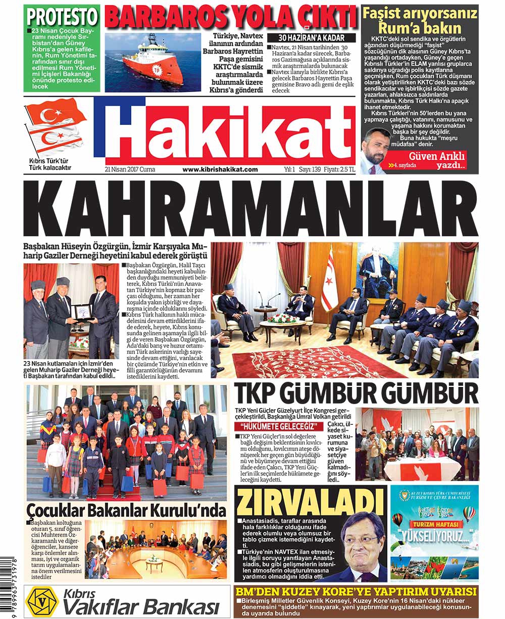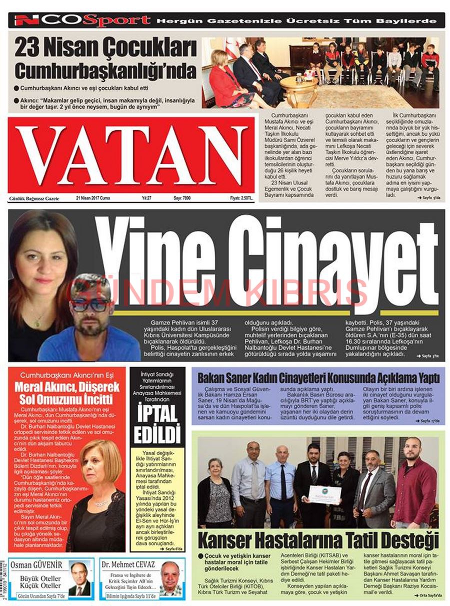 KKTC Gazete Manşetleri 21 Nisan 2017
