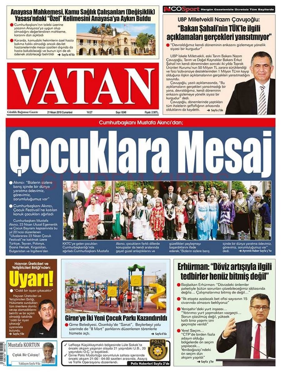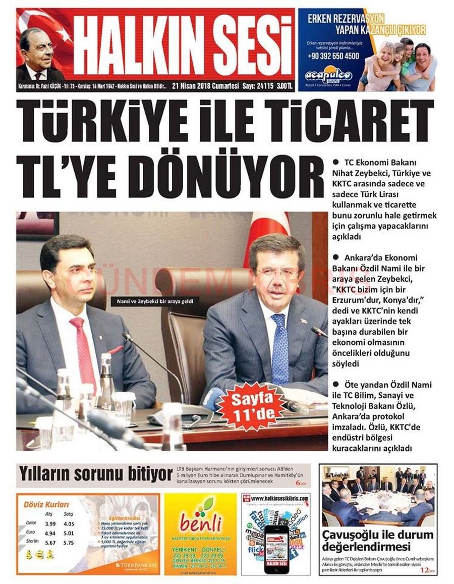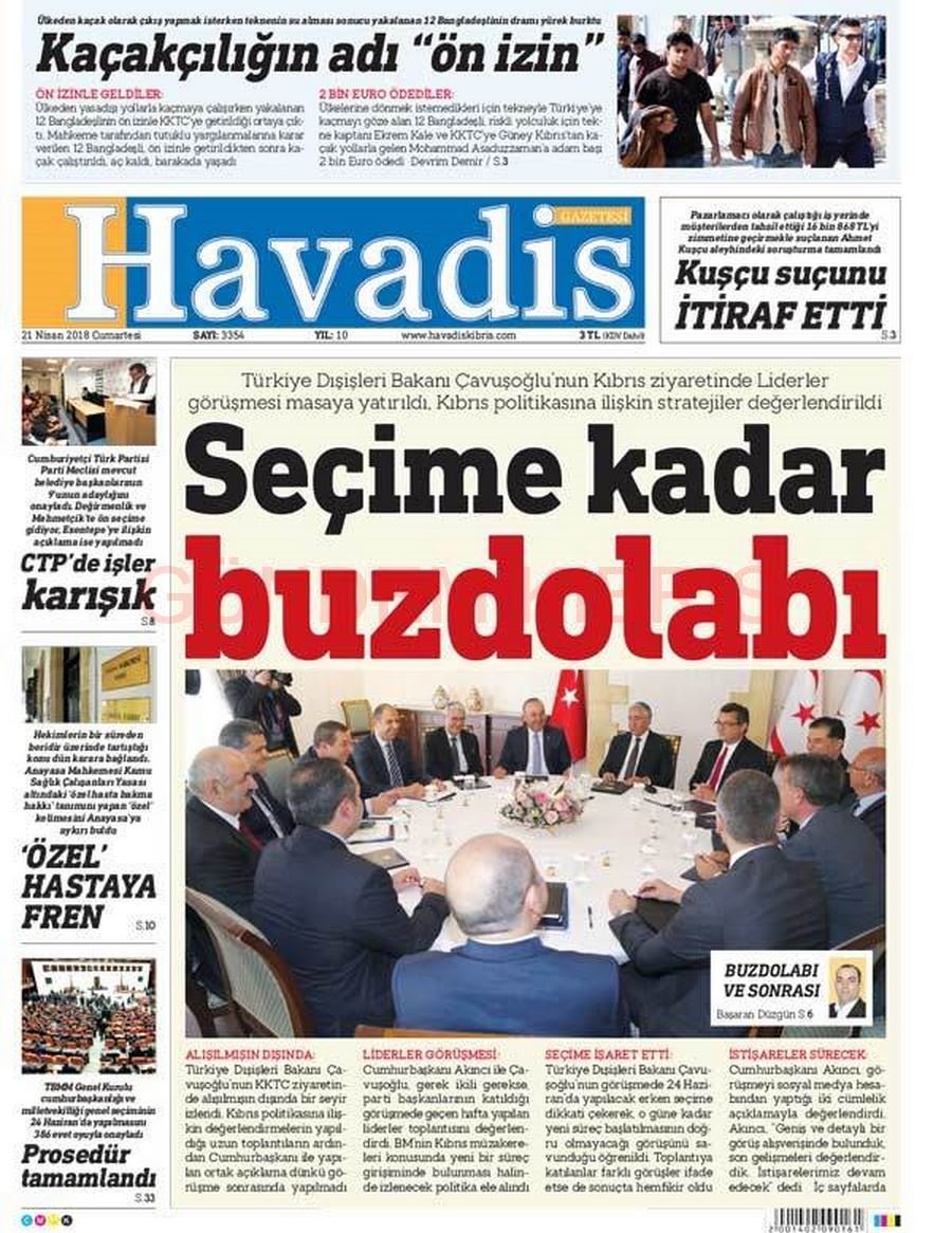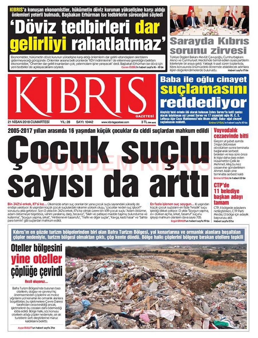 KKTC Gazete Manşetleri 21 Nisan 2018