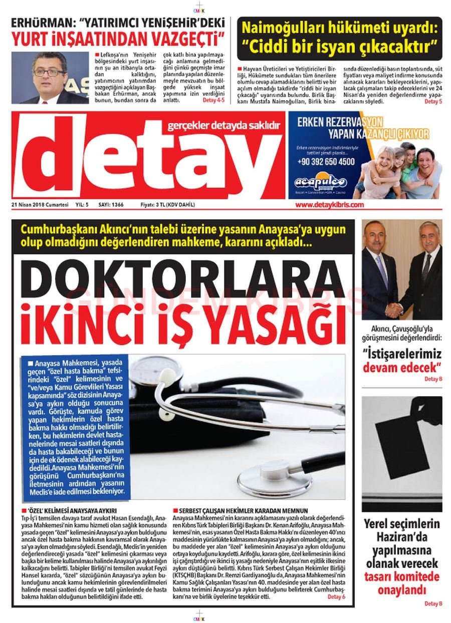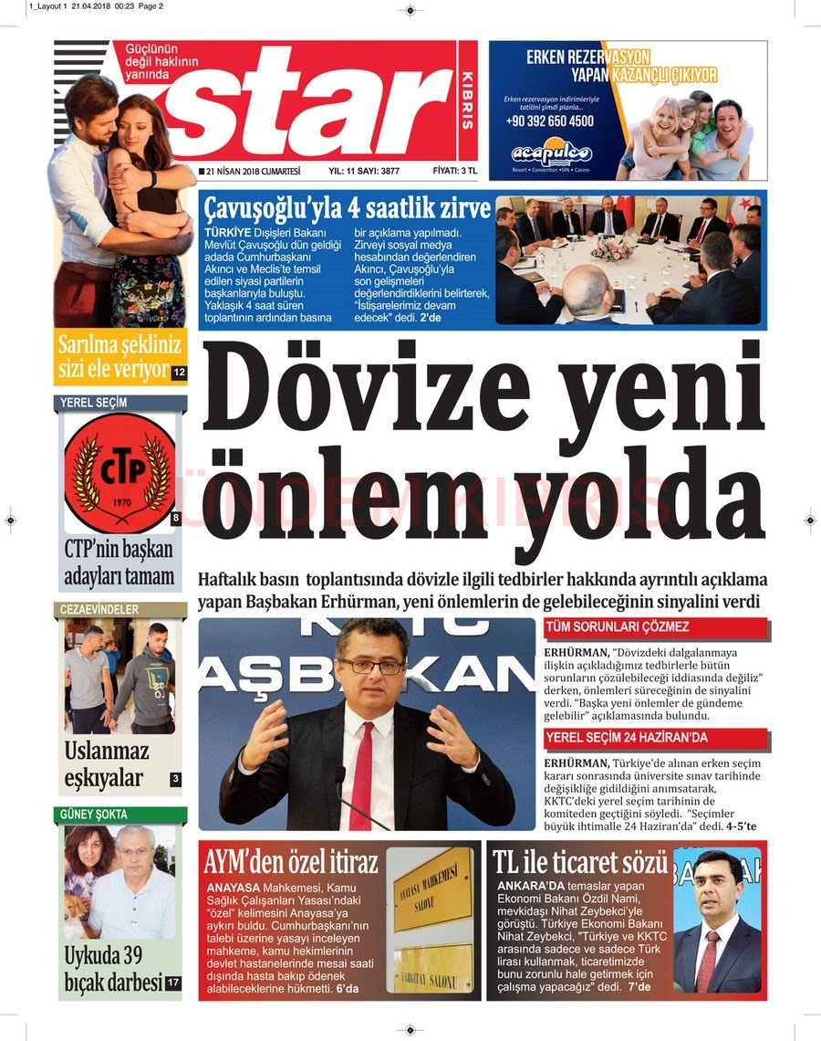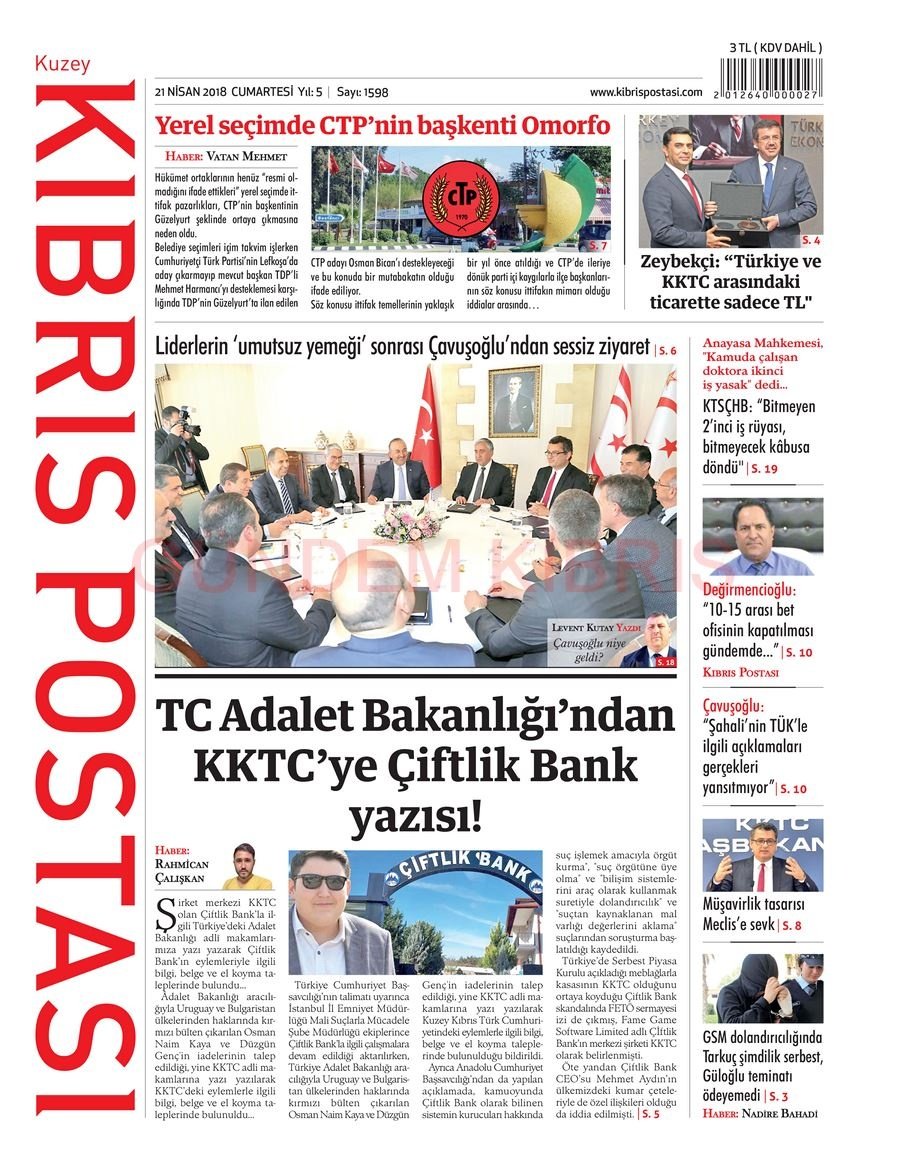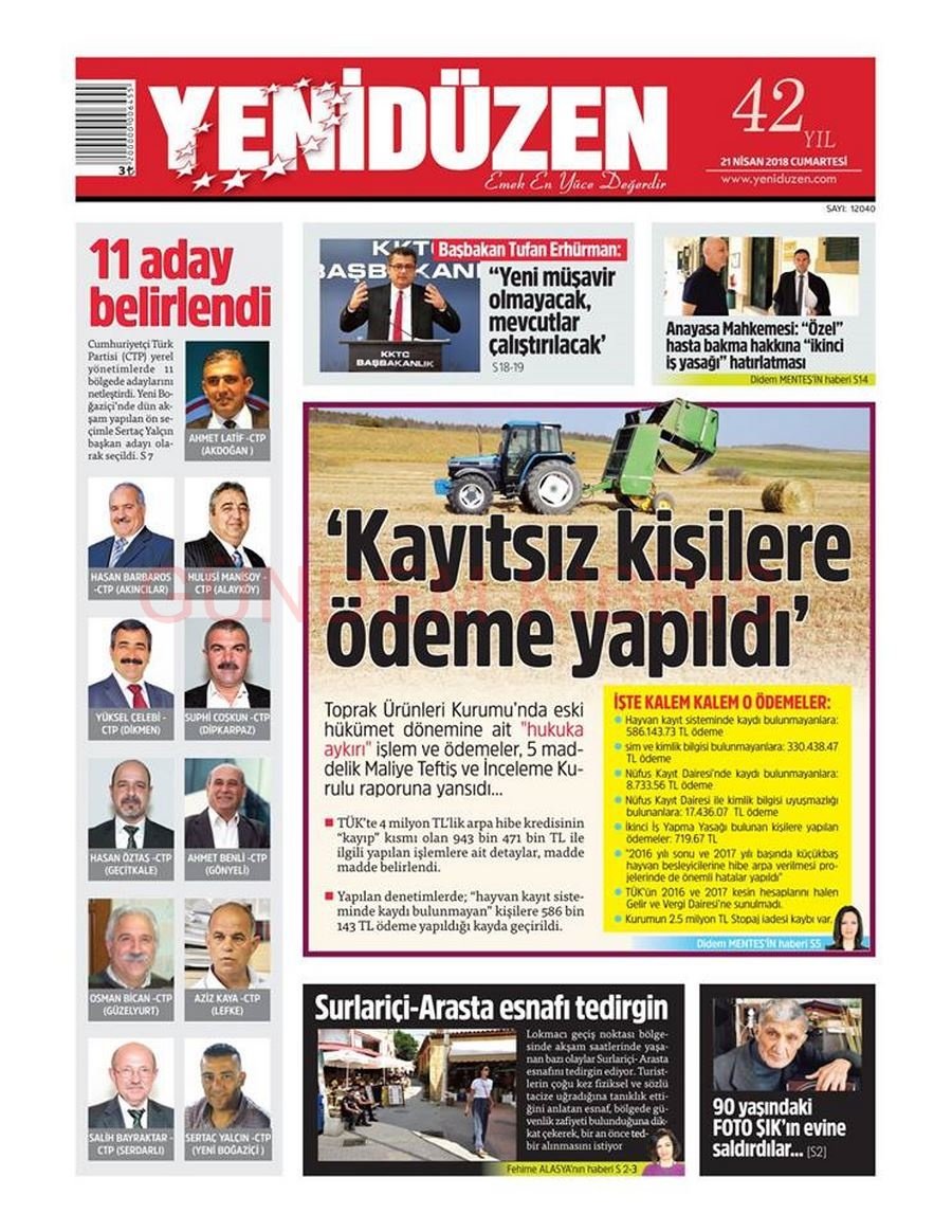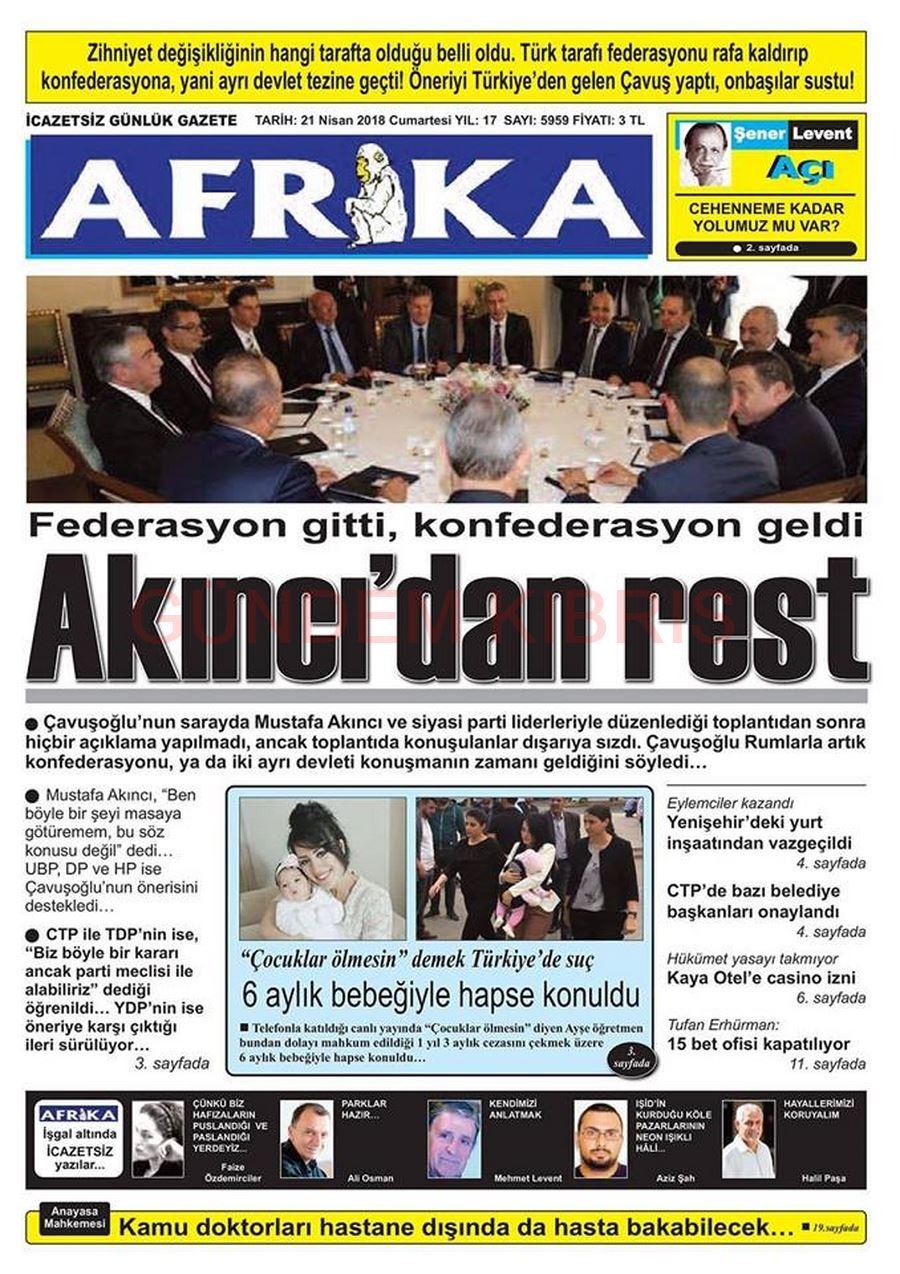 KKTC Gazete Manşetleri 21 Nisan 2018