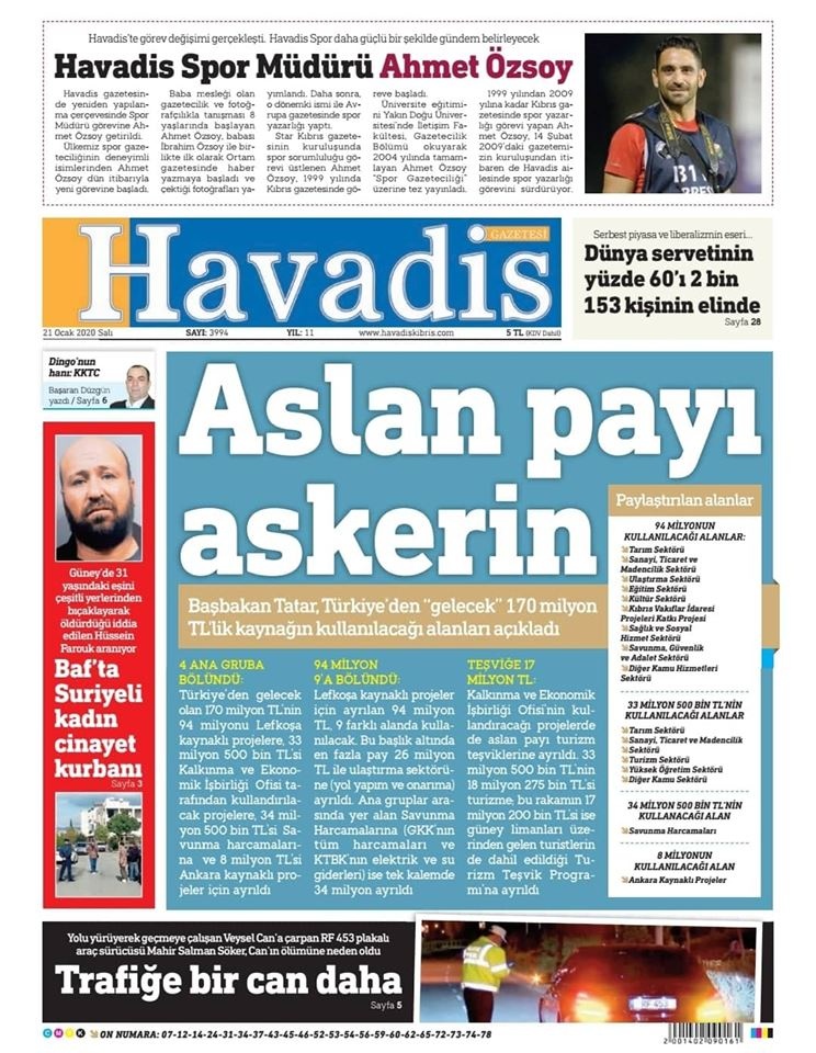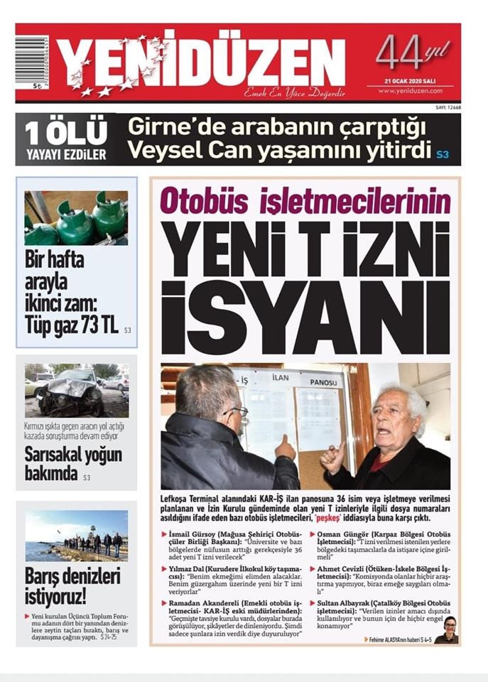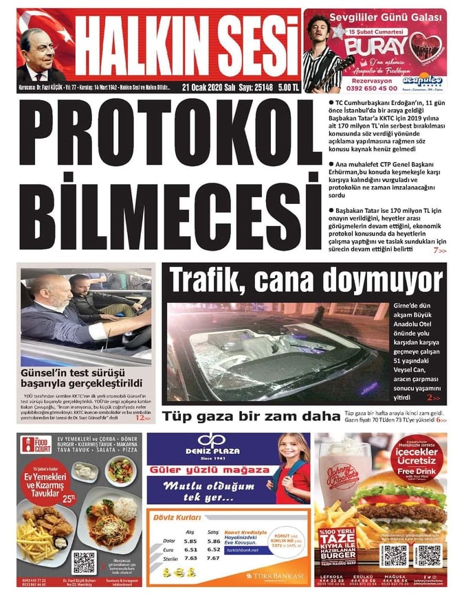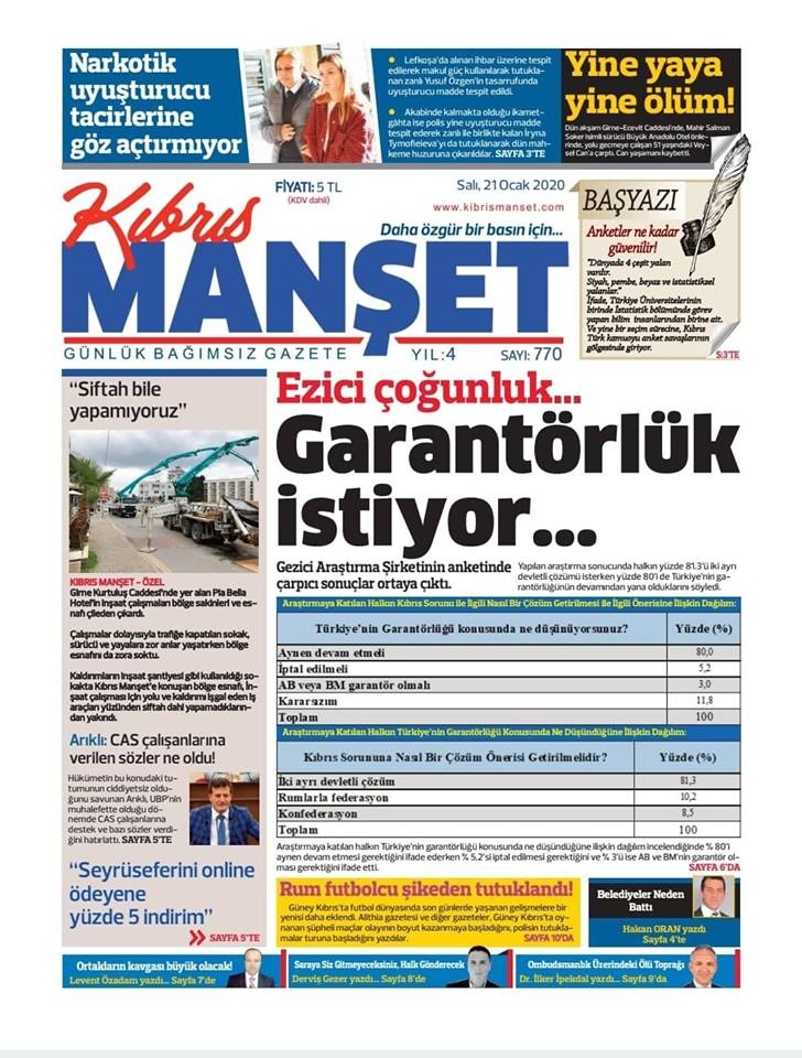 KKTC Gazete Manşetleri 21 Ocak 2020