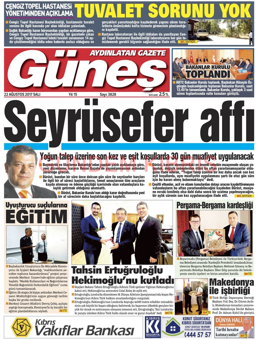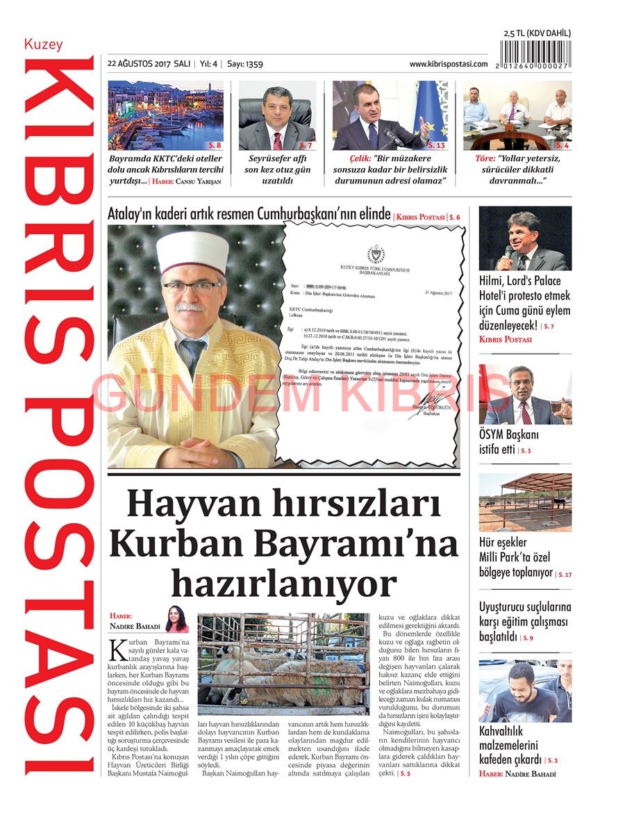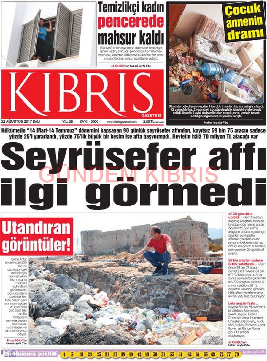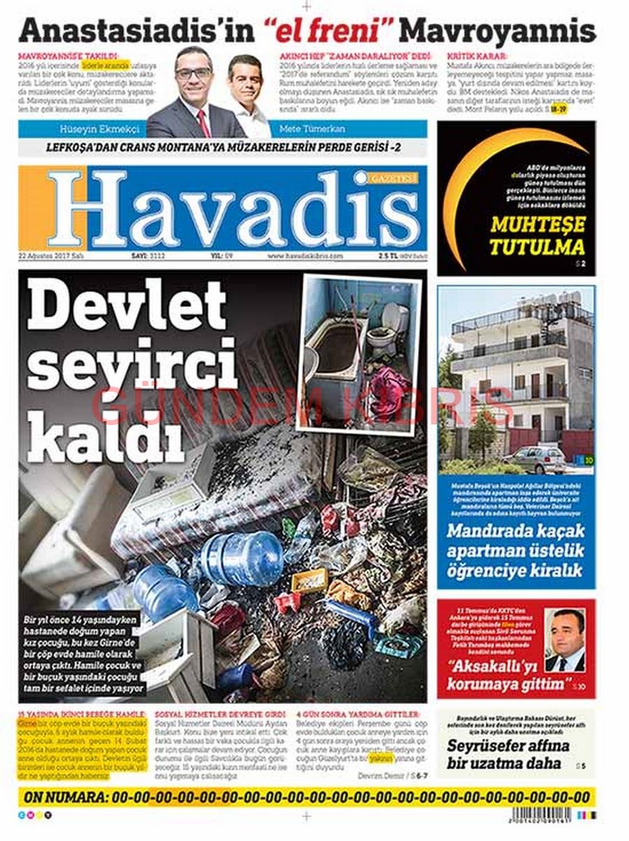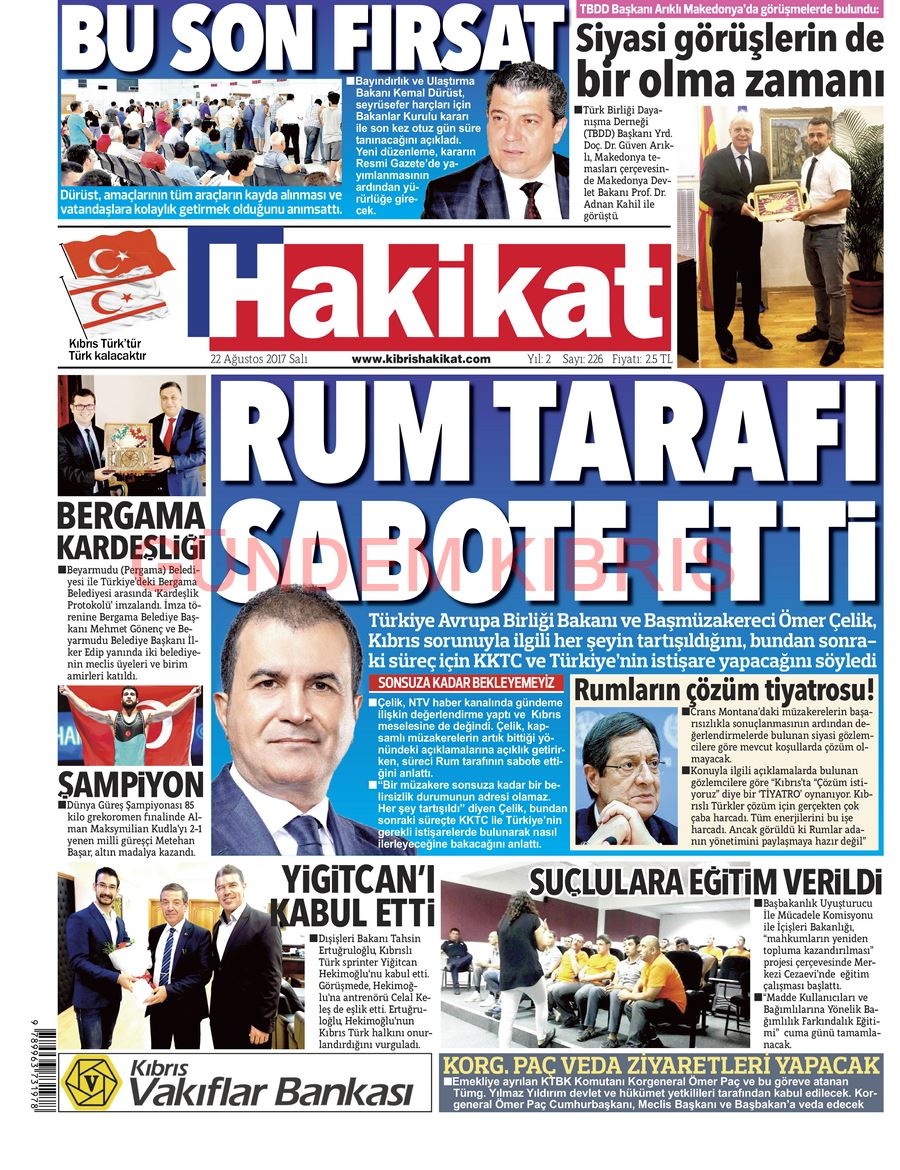 KKTC Gazete Manşetleri 22 Ağustos 2017