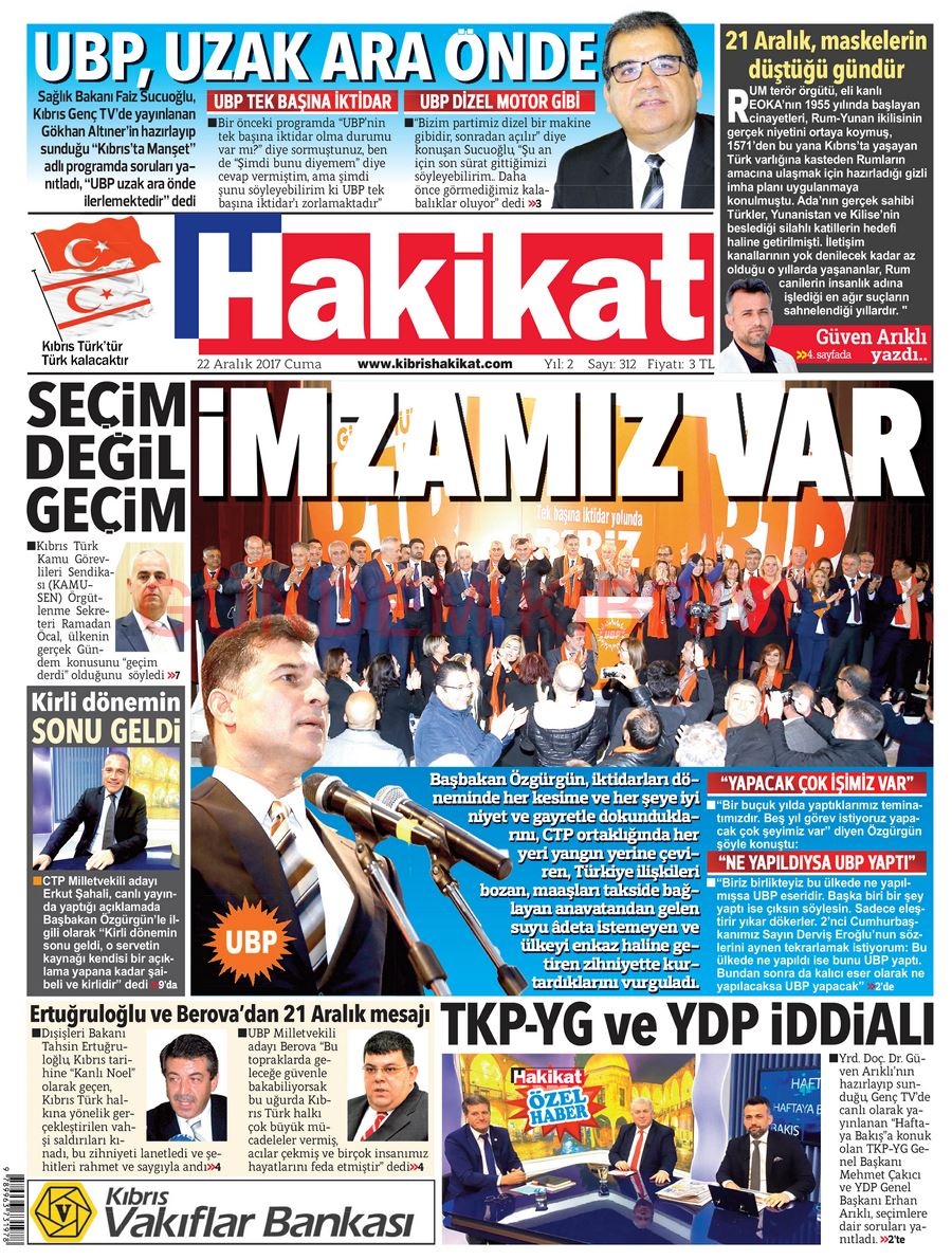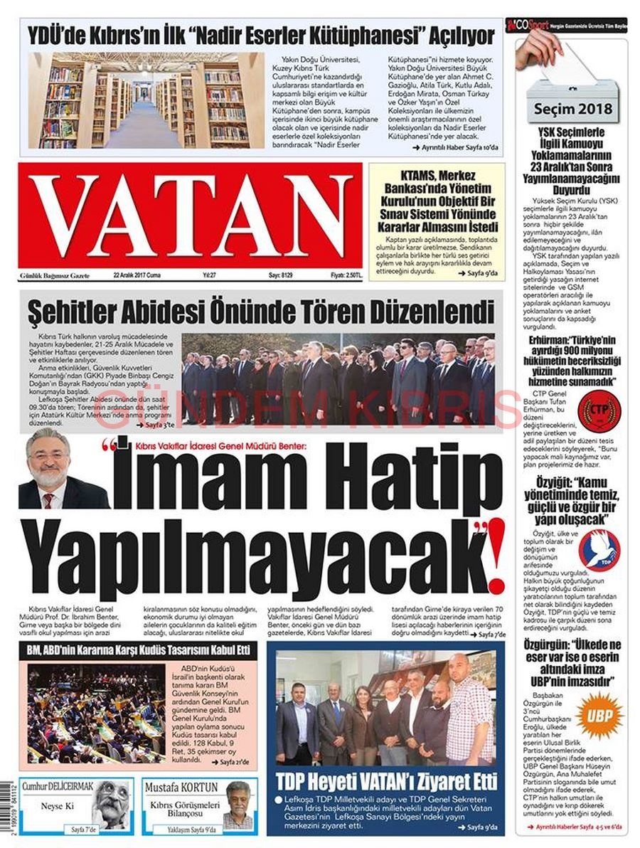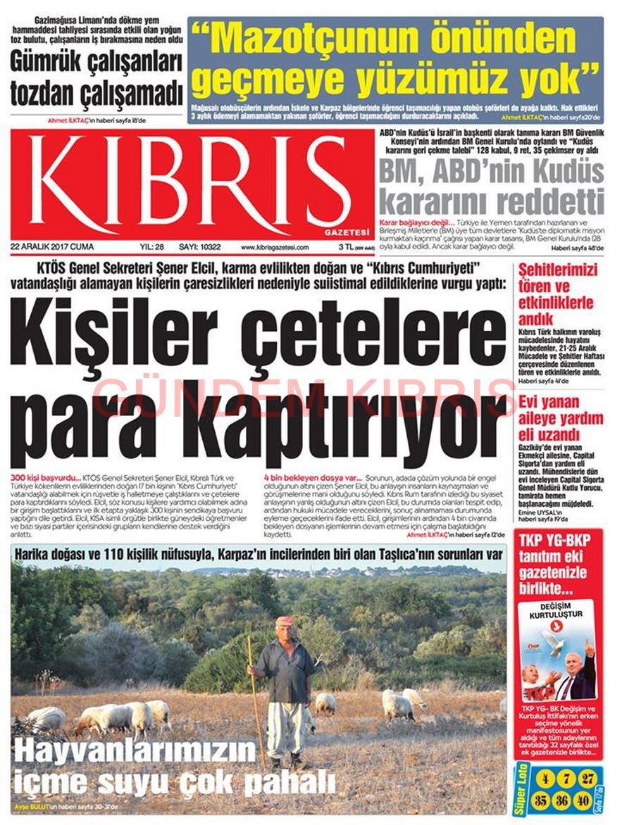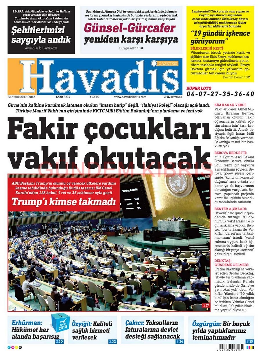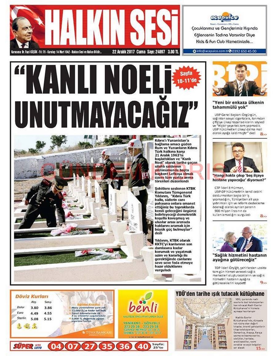 KKTC Gazete Manşetleri 22 Aralık 2017