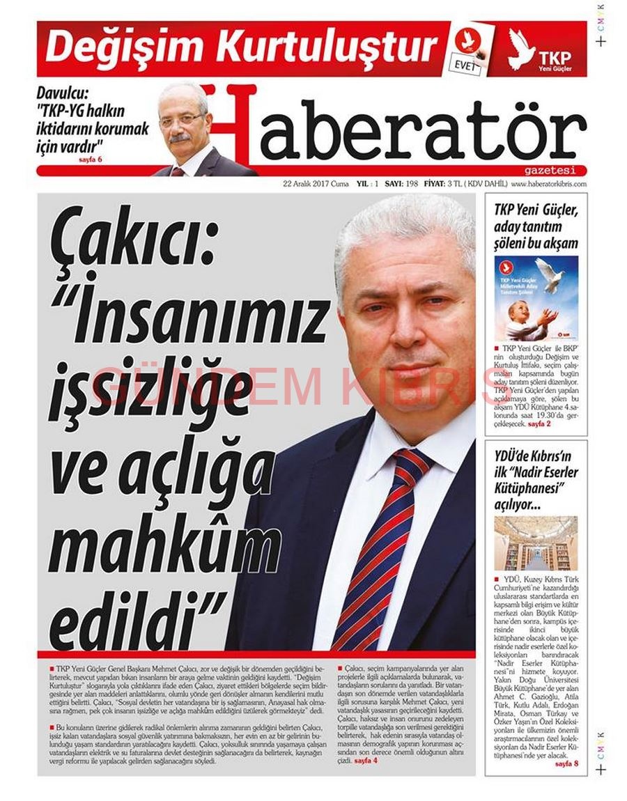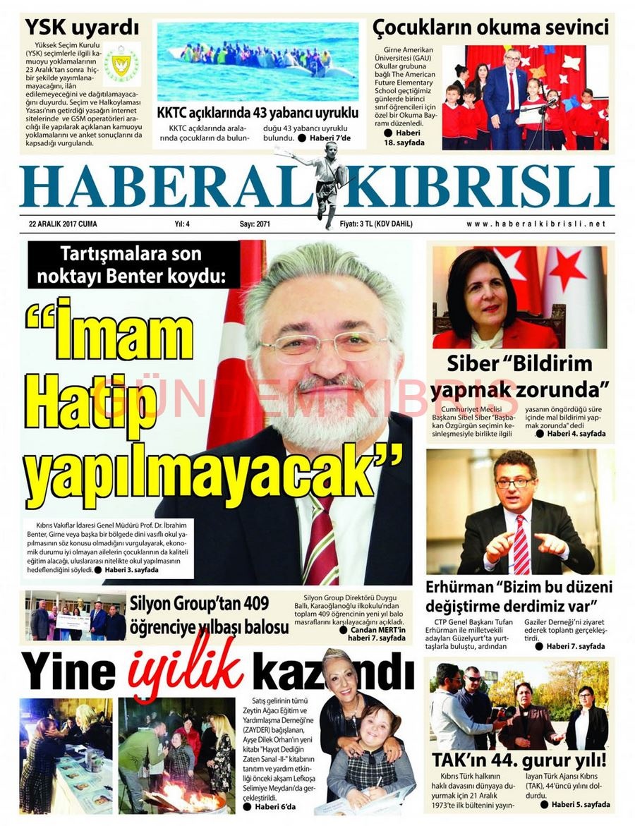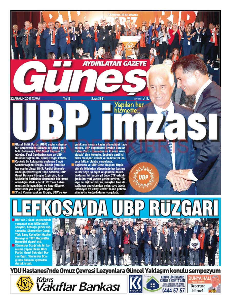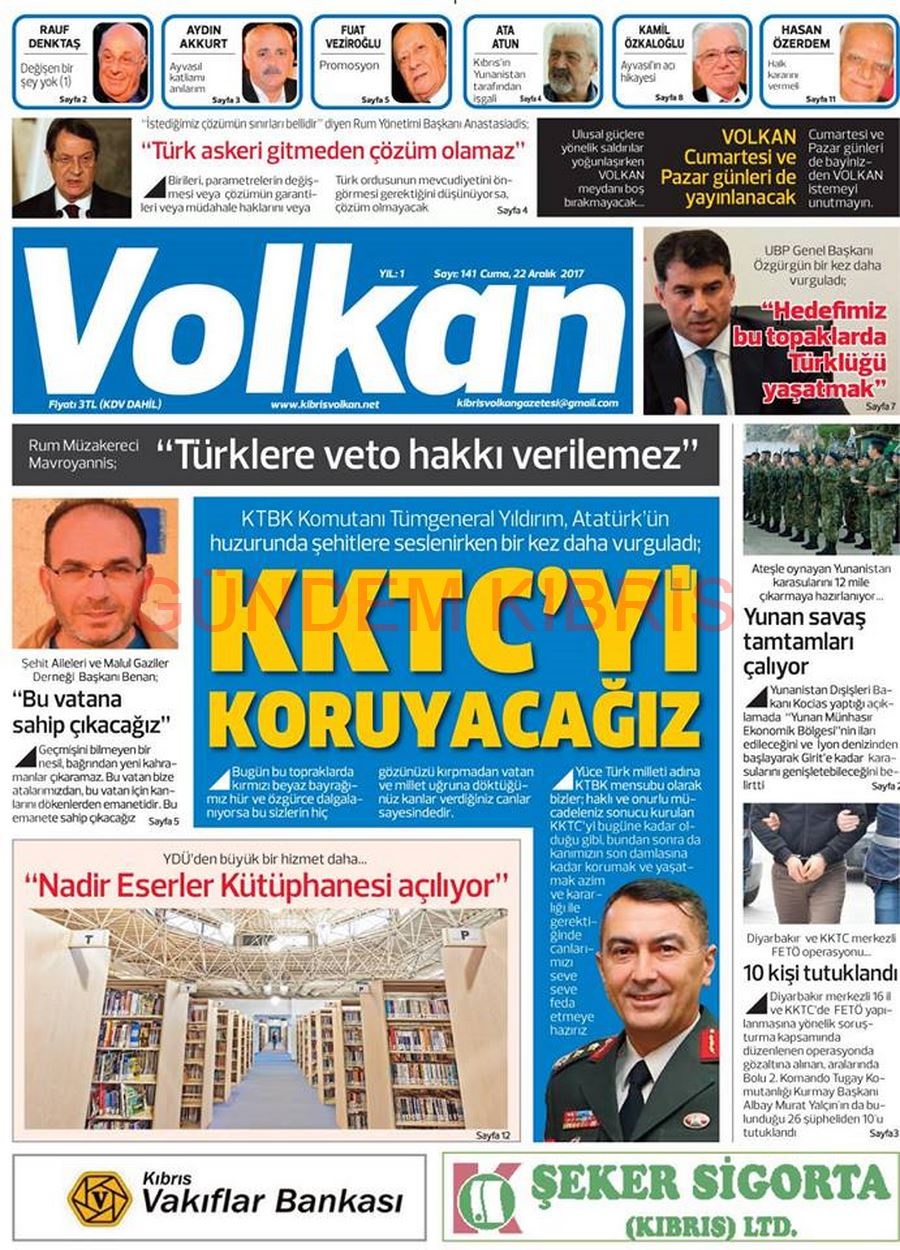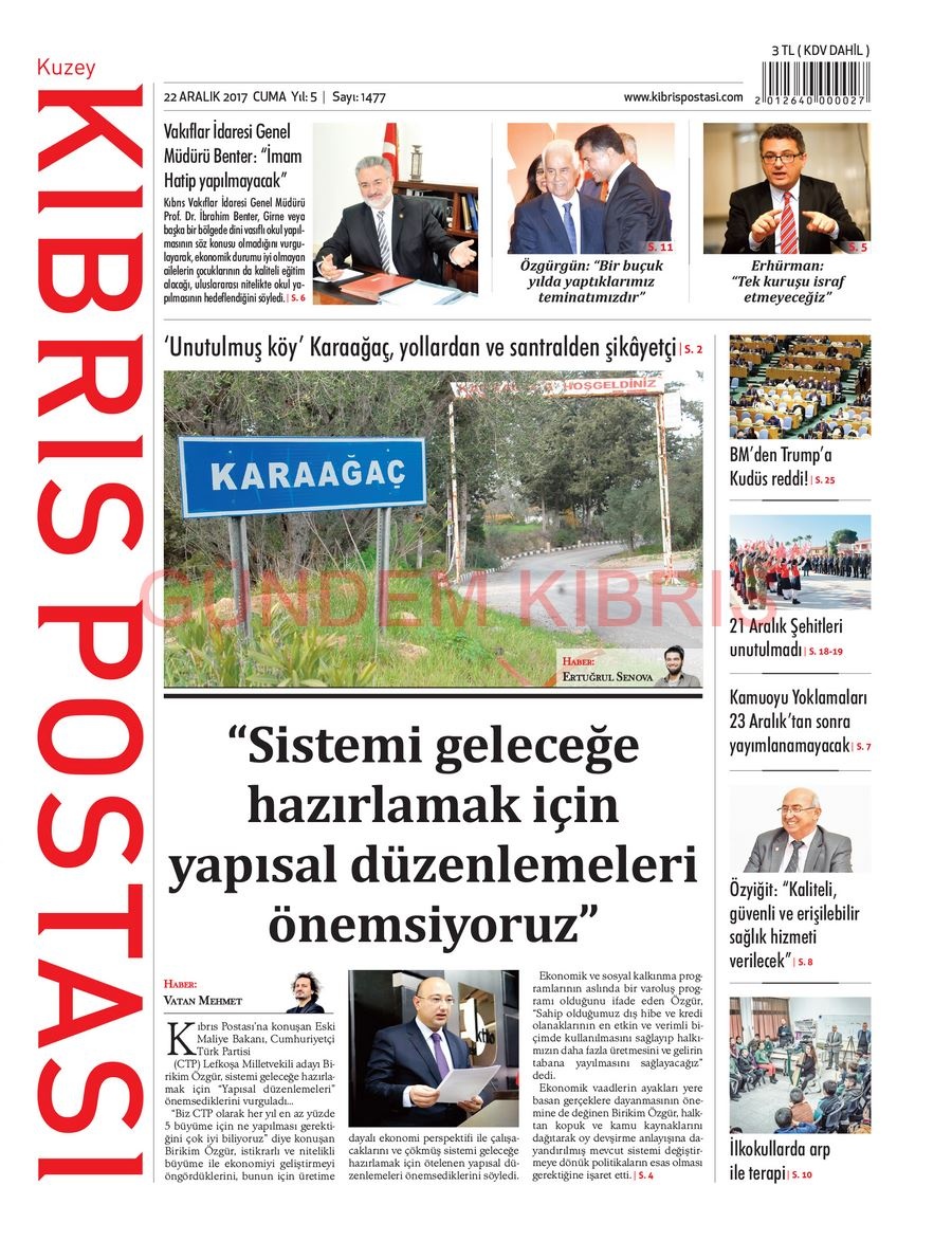 KKTC Gazete Manşetleri 22 Aralık 2017