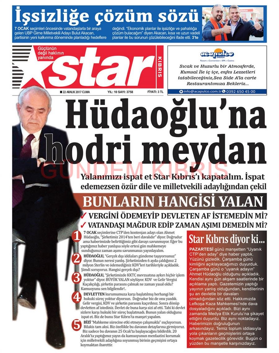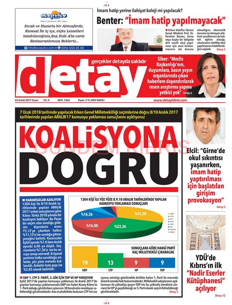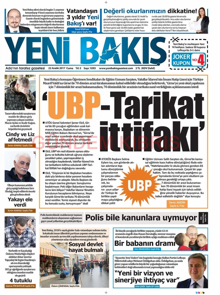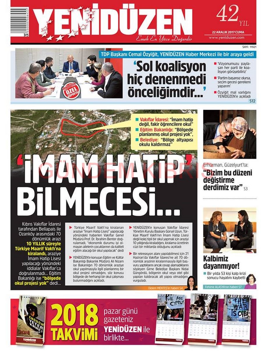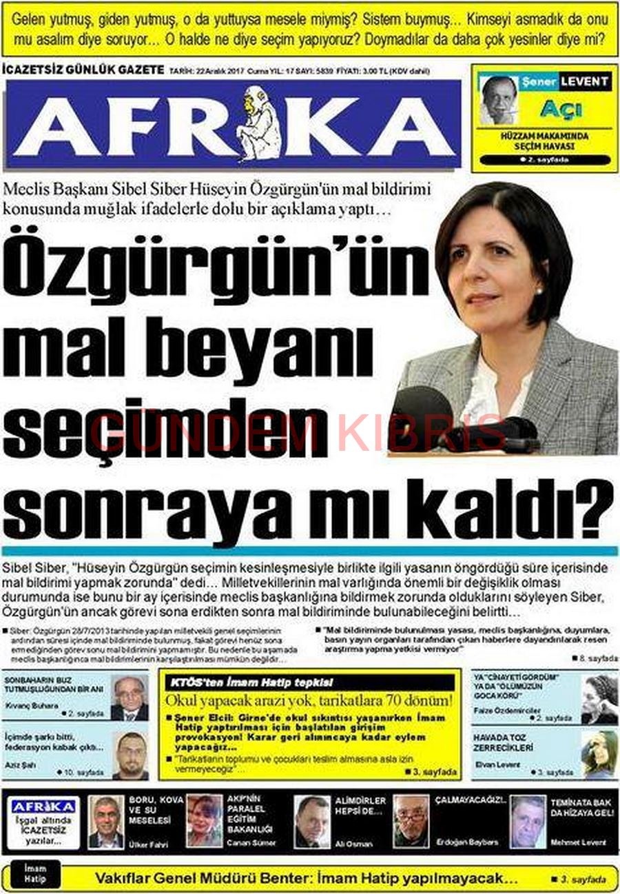 KKTC Gazete Manşetleri 22 Aralık 2017