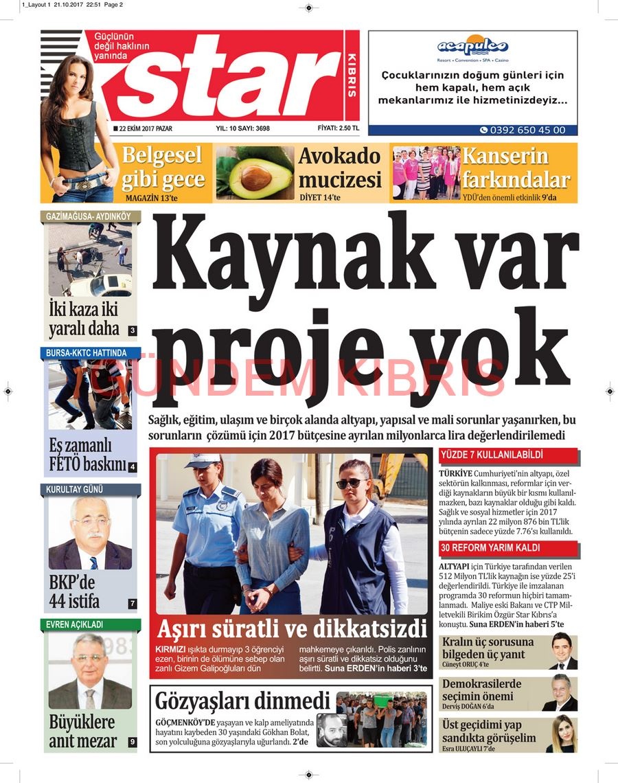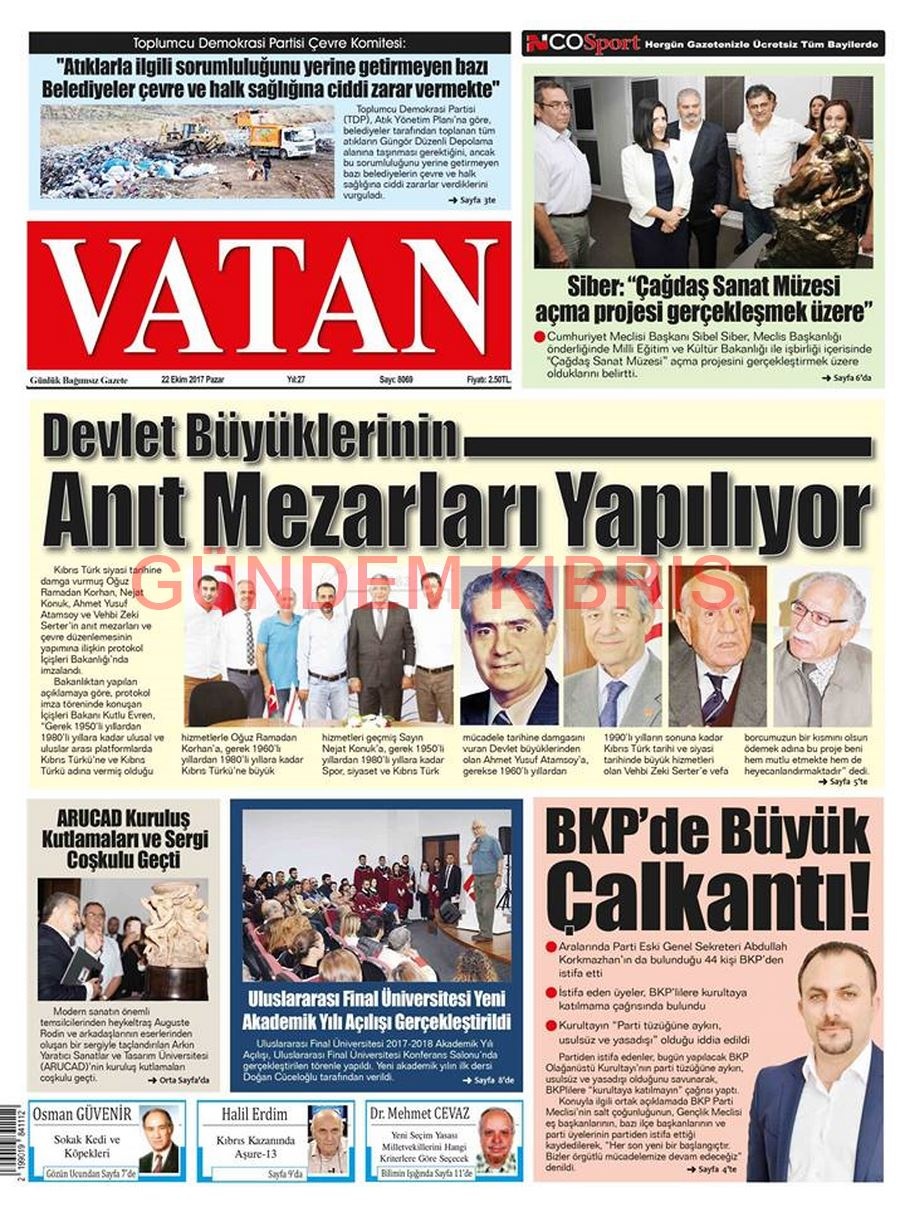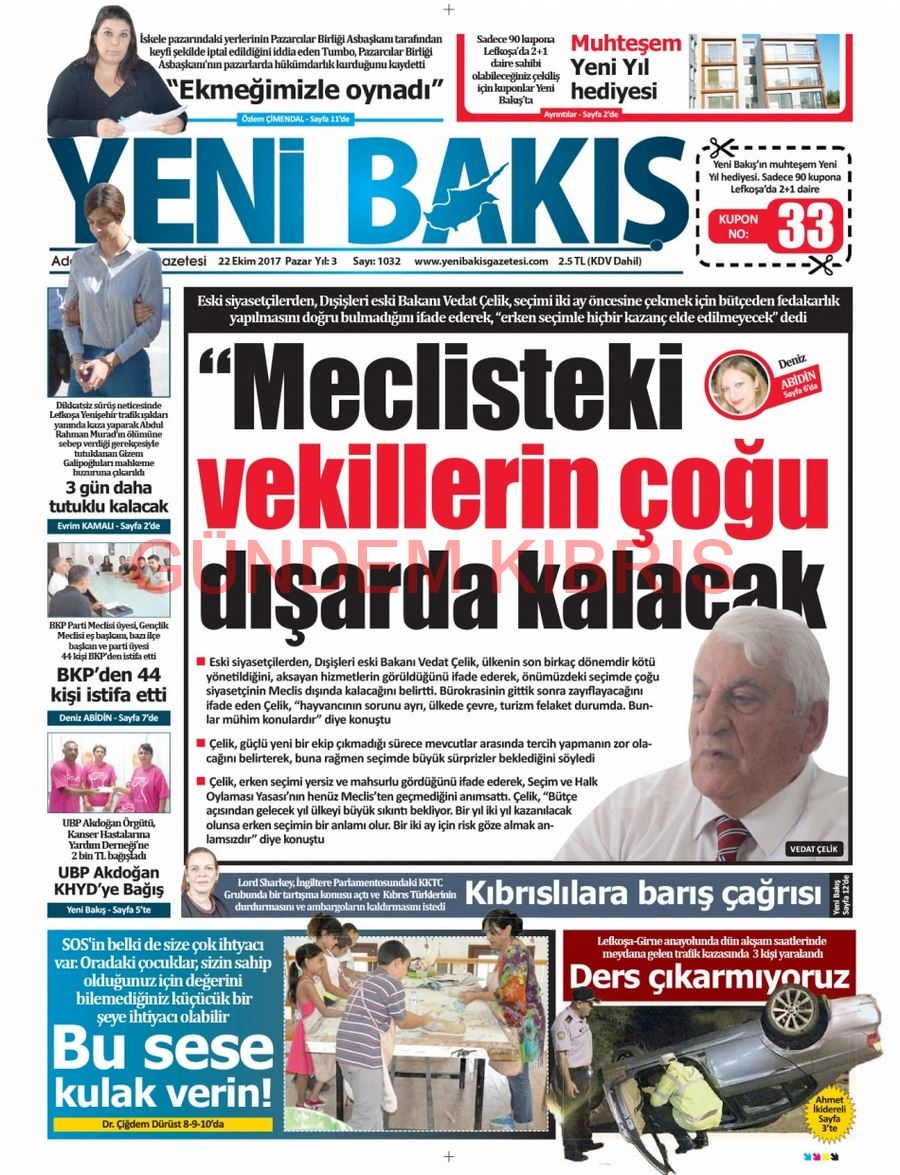 KKTC Gazete Manşetleri 22 Ekim 2017