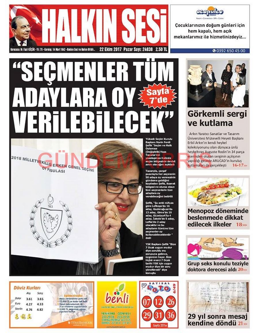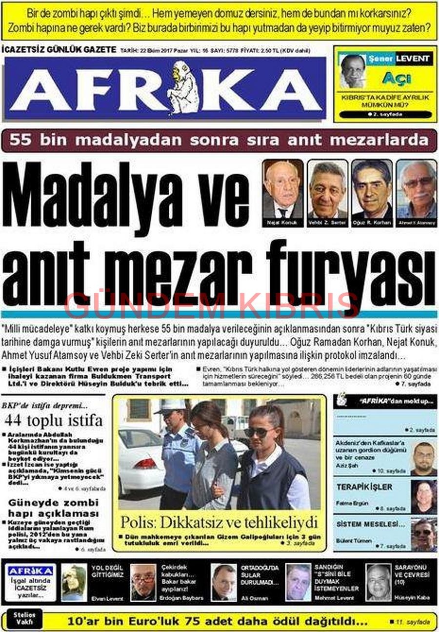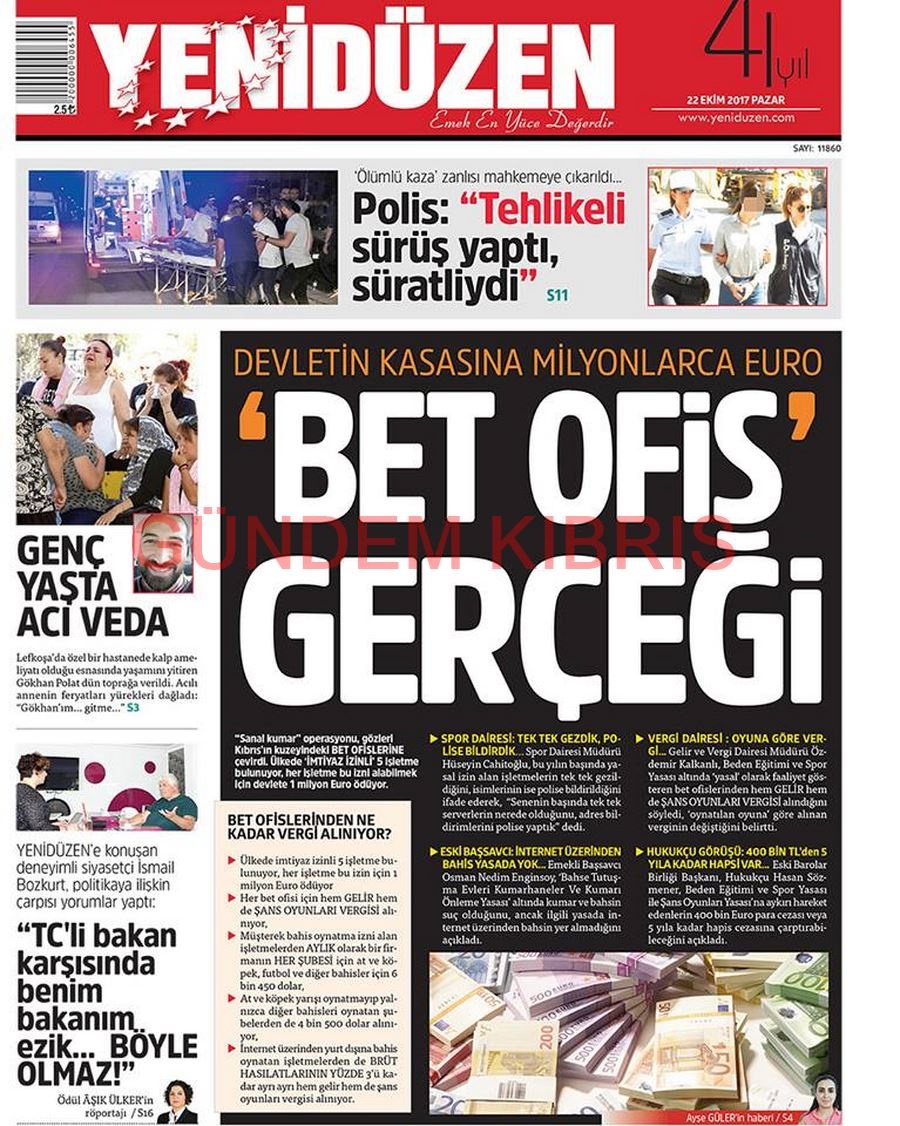 KKTC Gazete Manşetleri 22 Ekim 2017