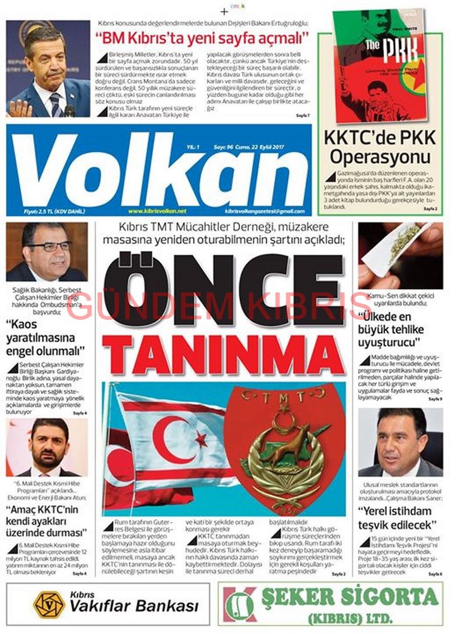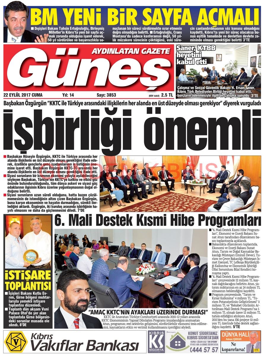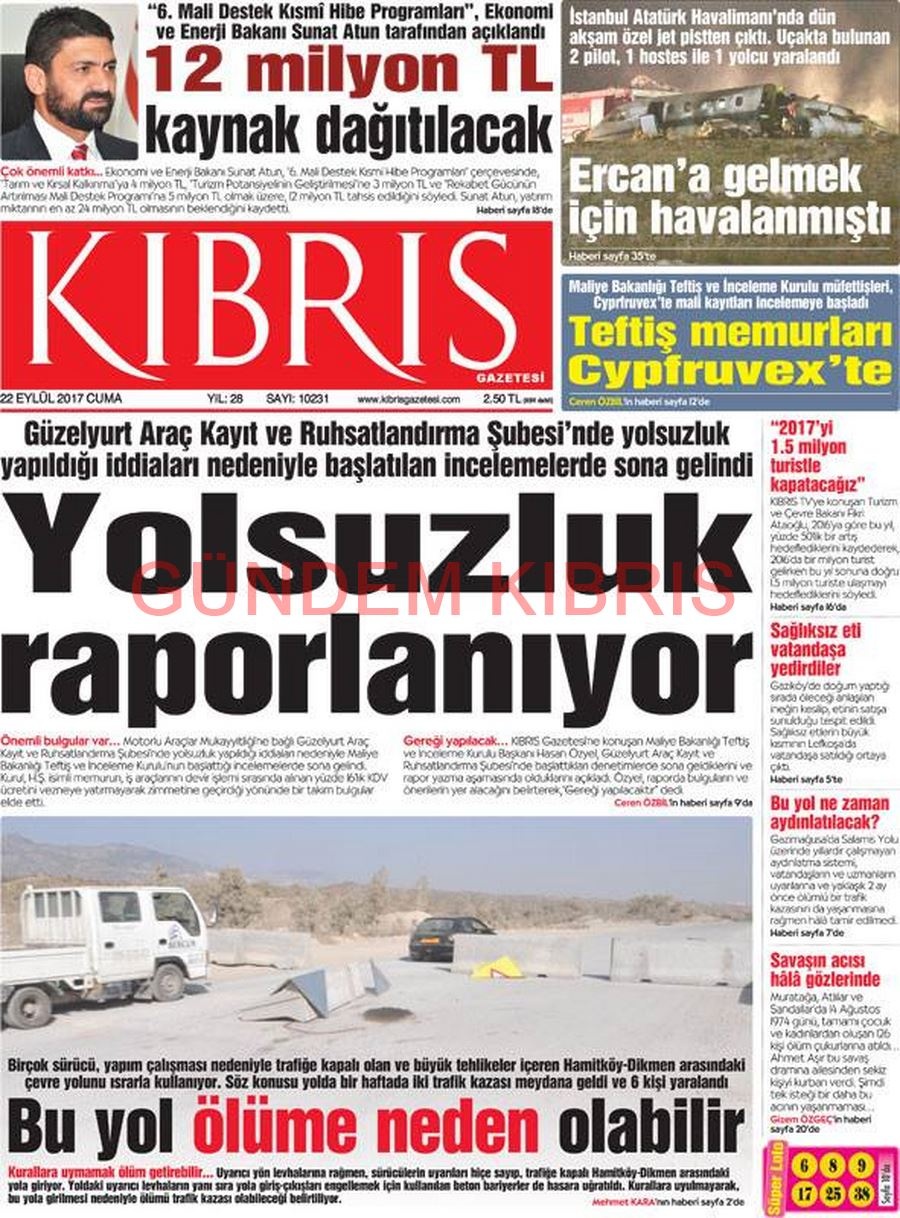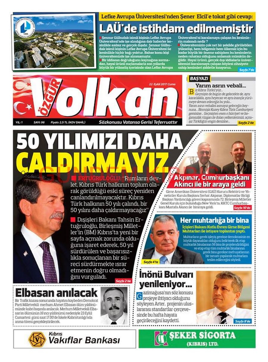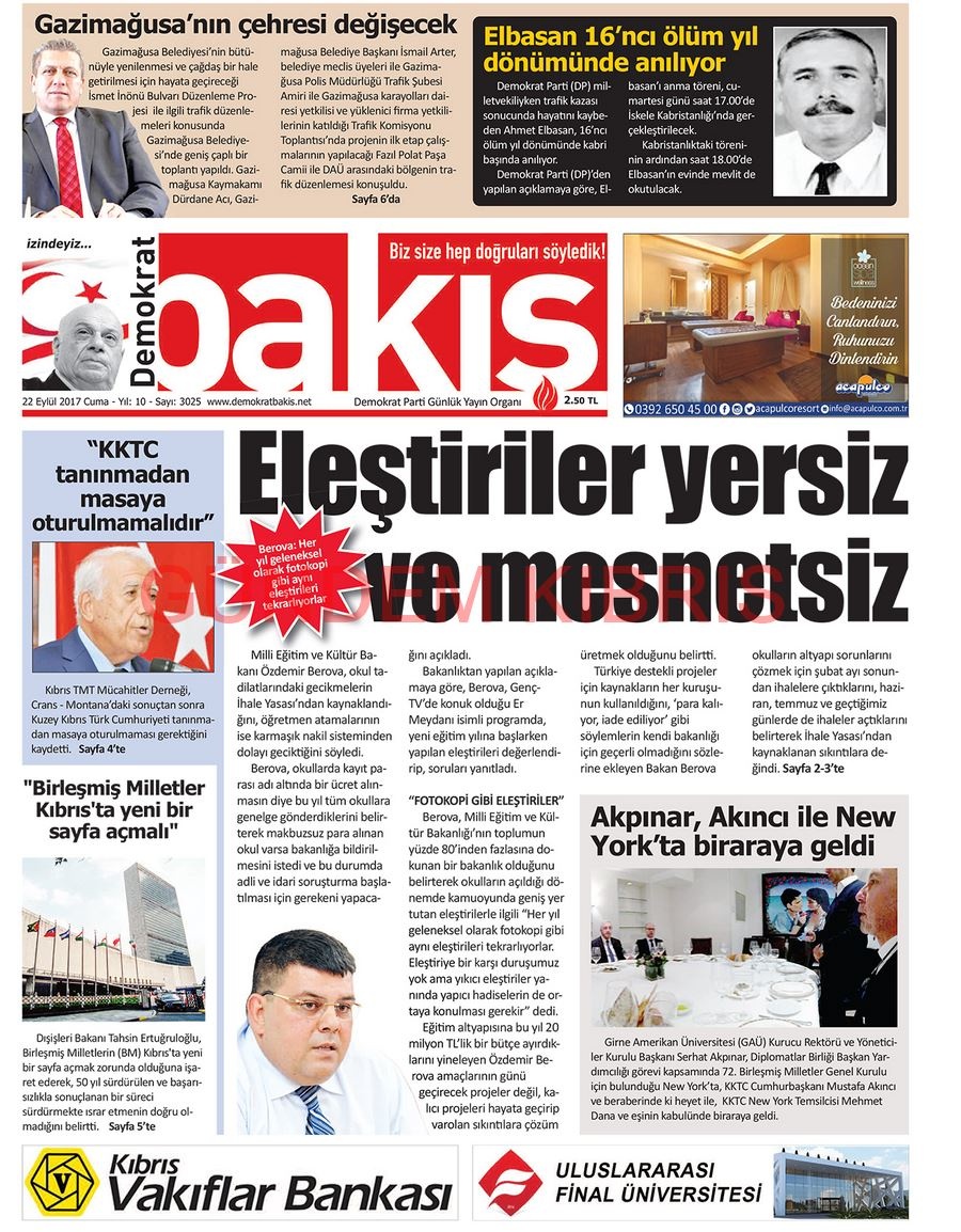 KKTC Gazete Manşetleri 22 Eylül 2017