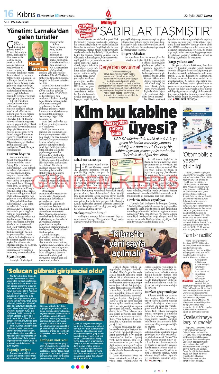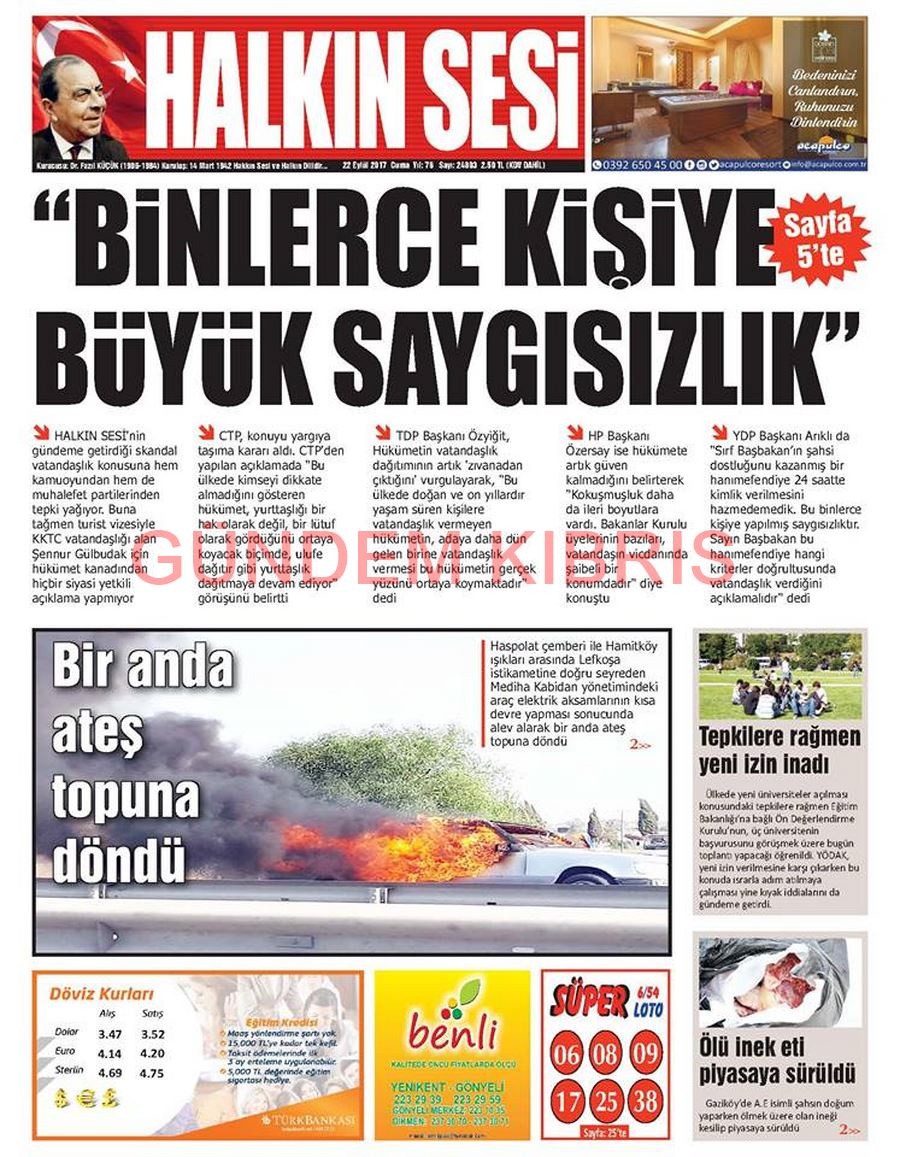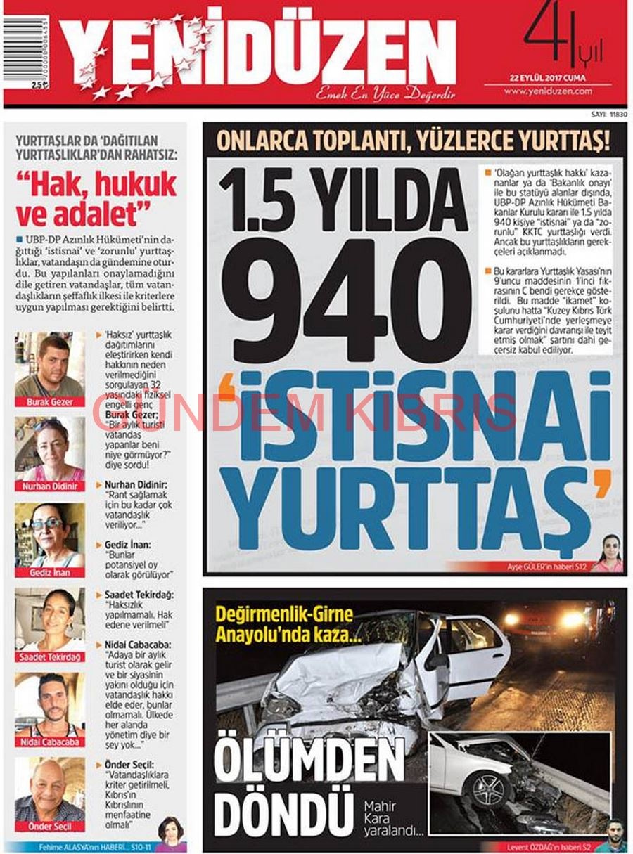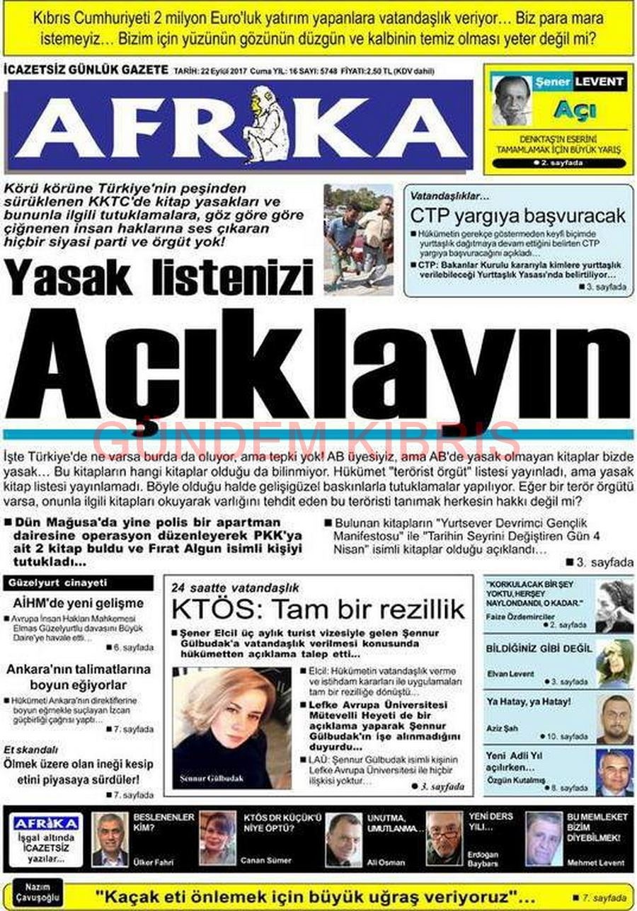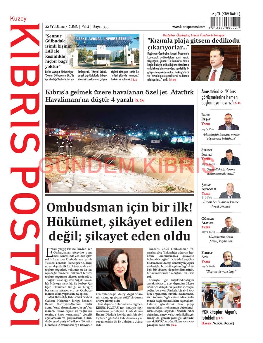 KKTC Gazete Manşetleri 22 Eylül 2017