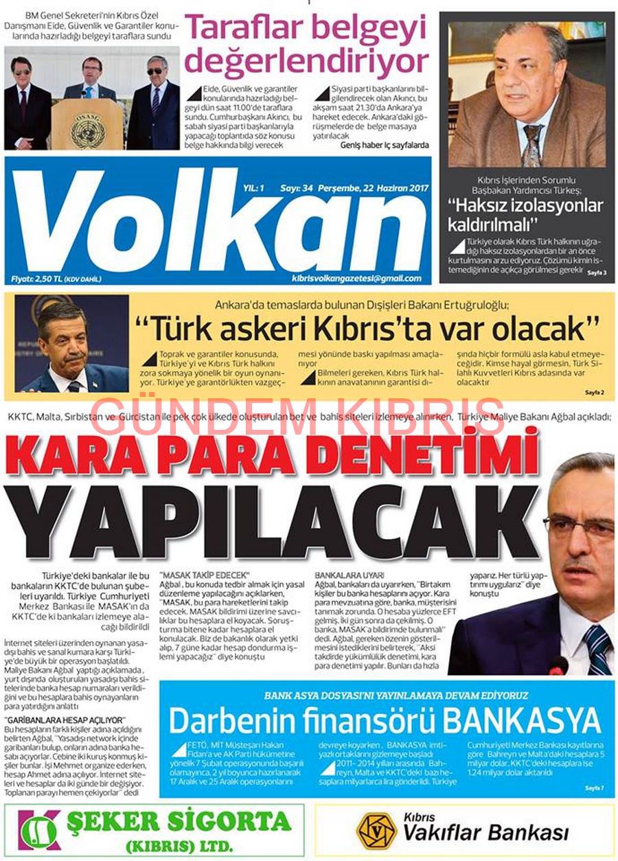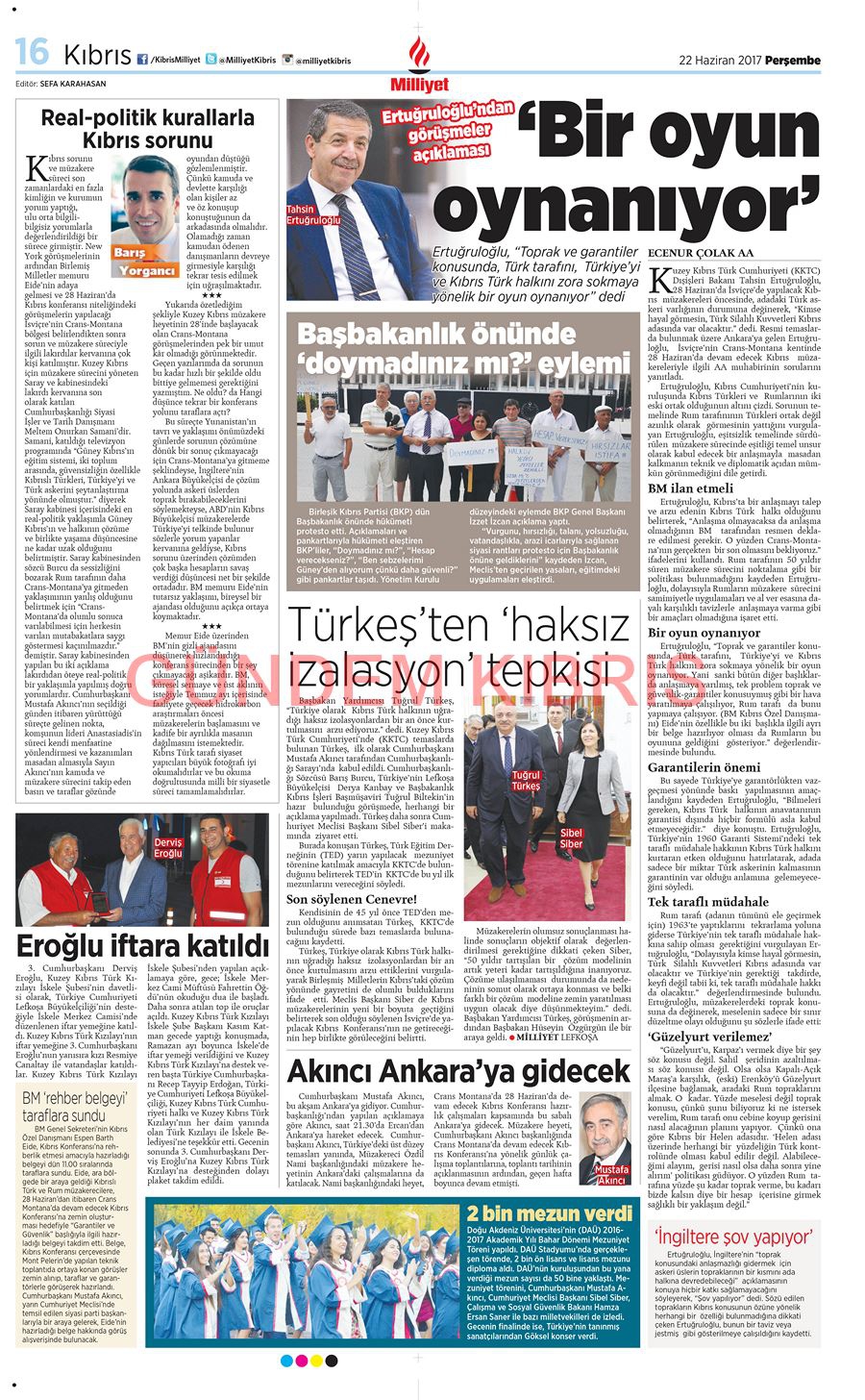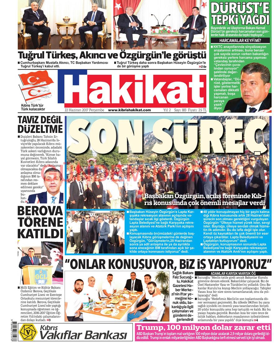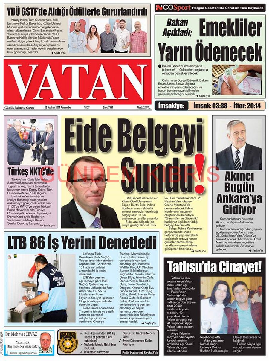KKTC Gazete Manşetleri 22 Haziran 2017