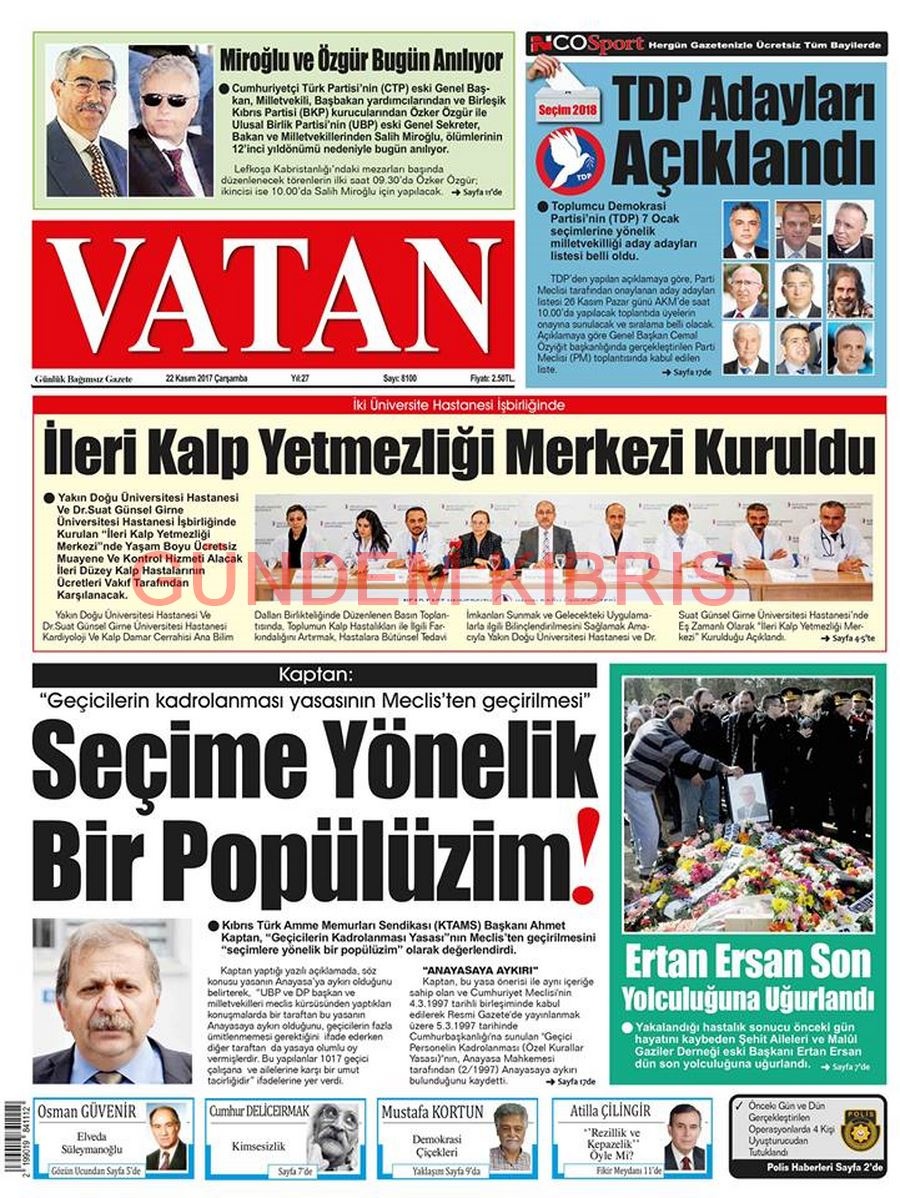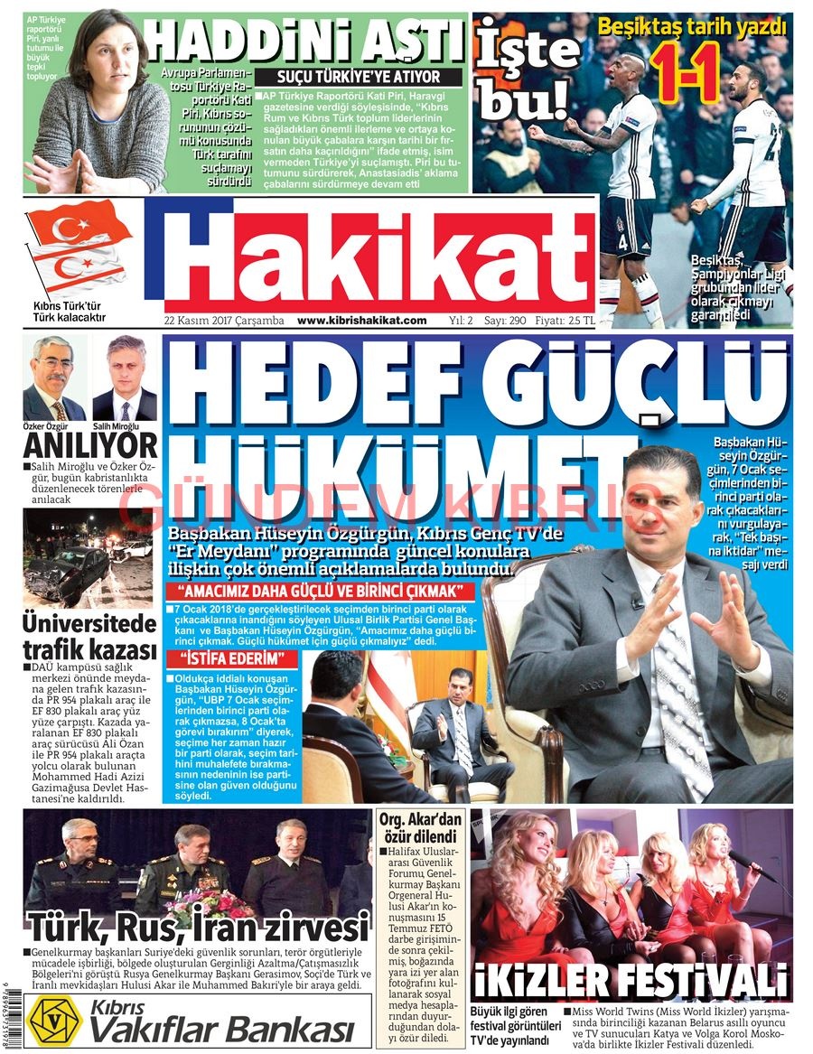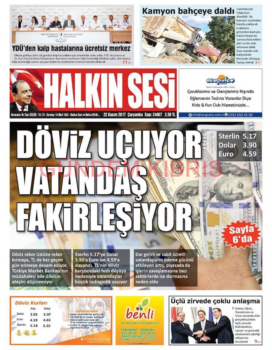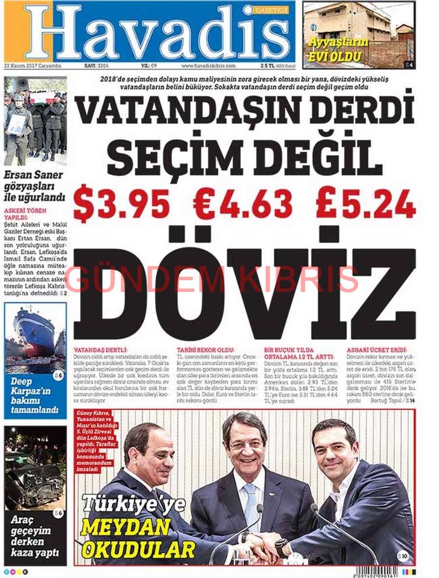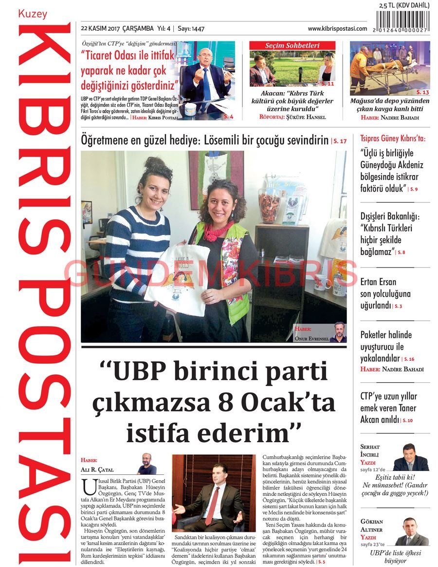 KKTC Gazete Manşetleri 22 Kasım 2017