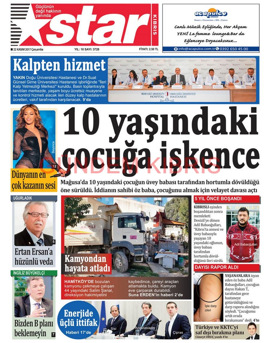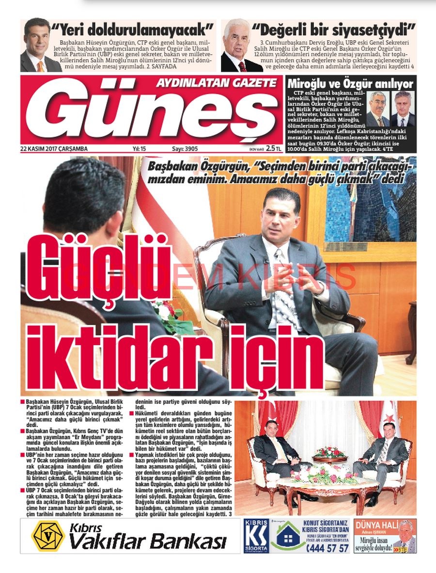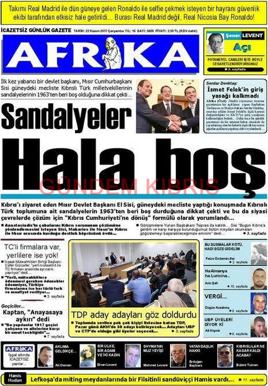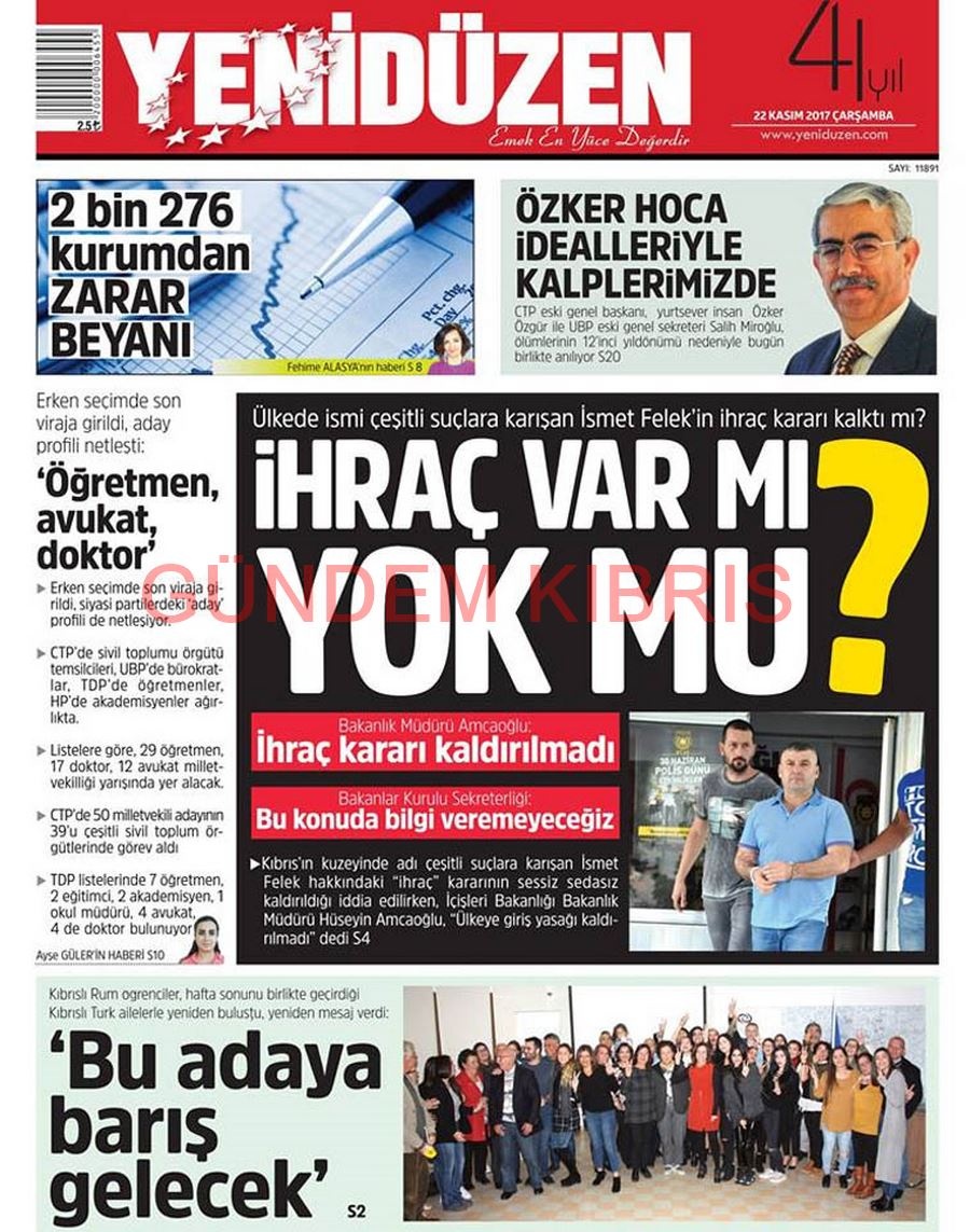 KKTC Gazete Manşetleri 22 Kasım 2017