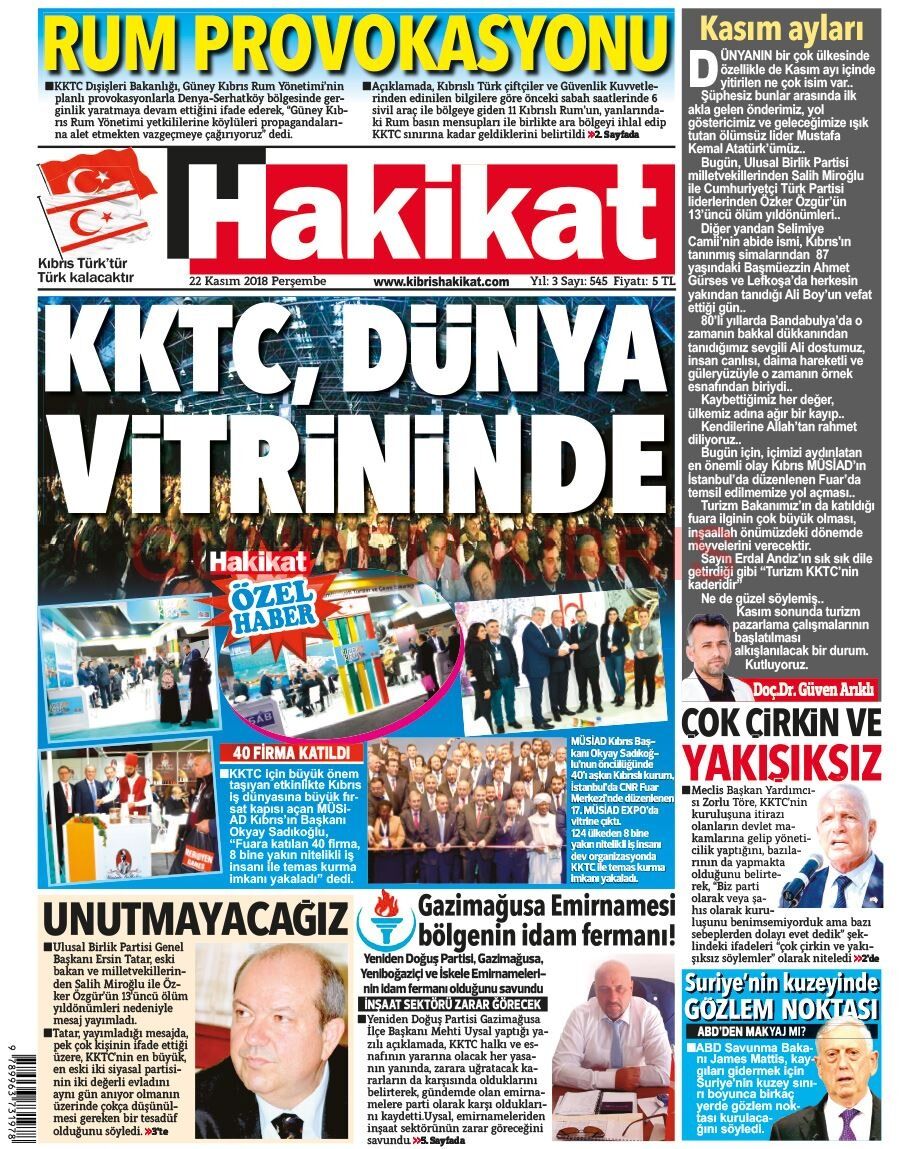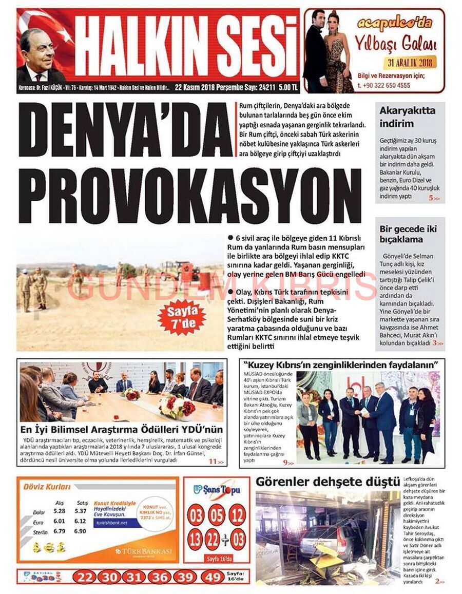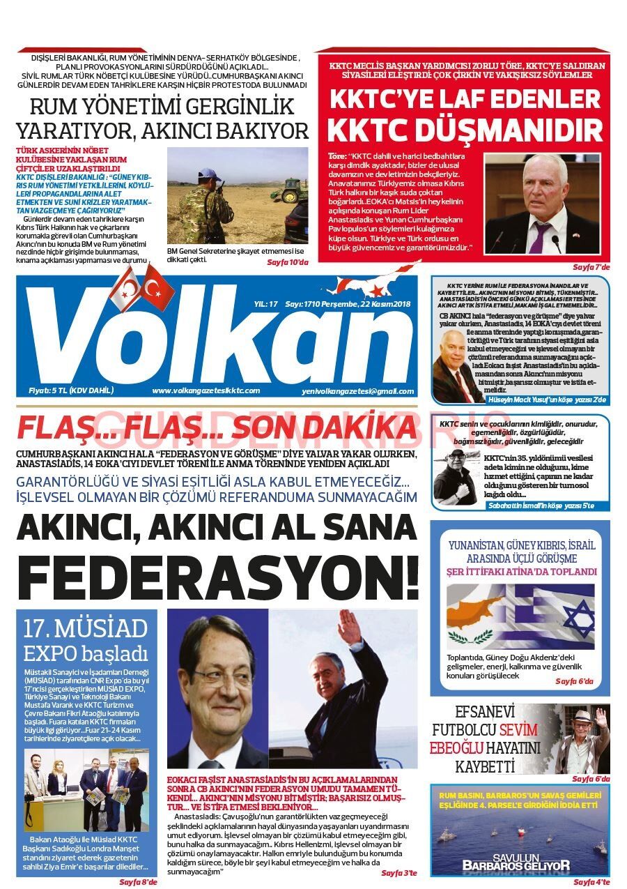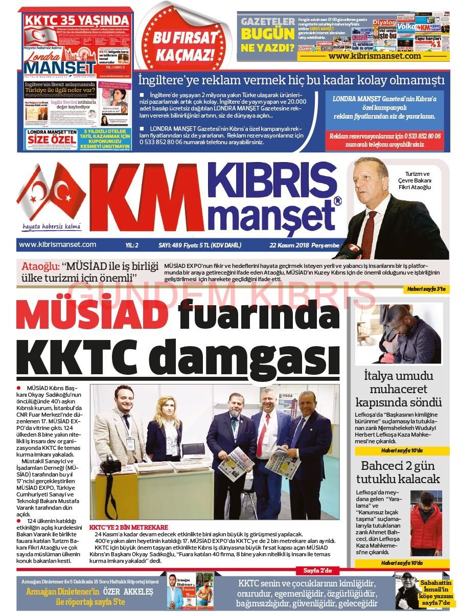 KKTC Gazete Manşetleri 22 Kasım 2018