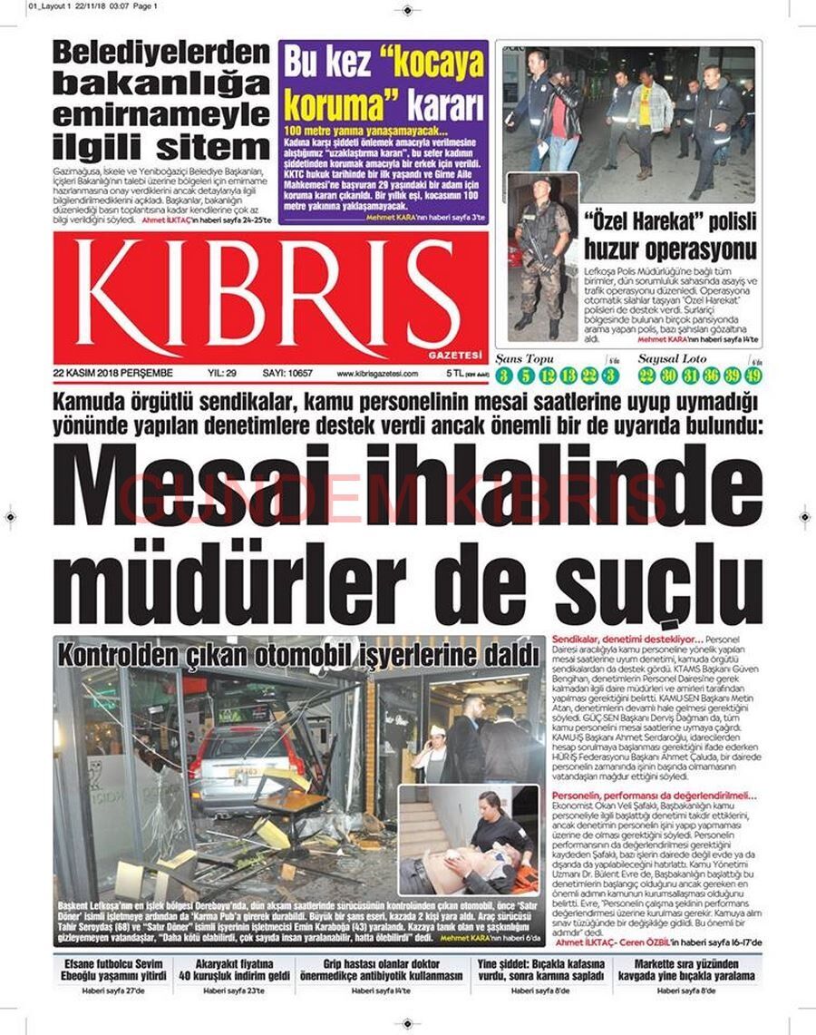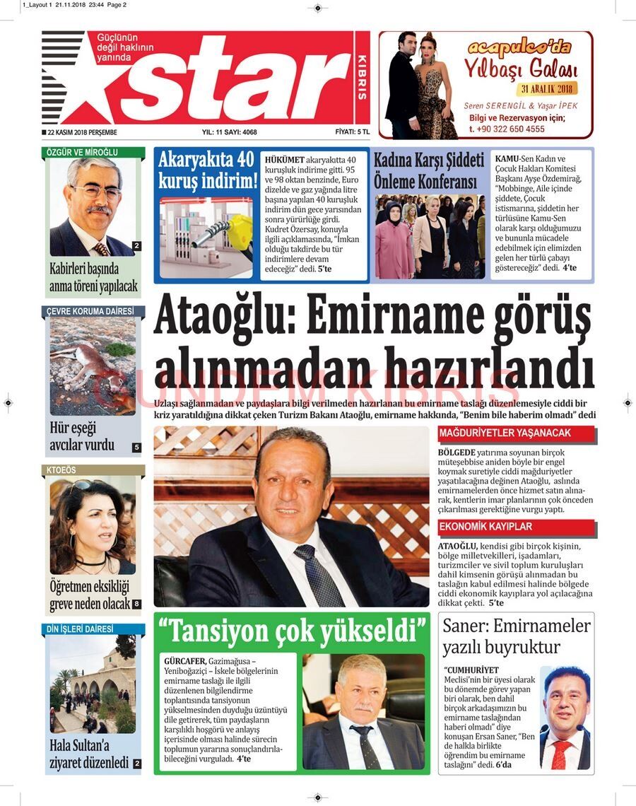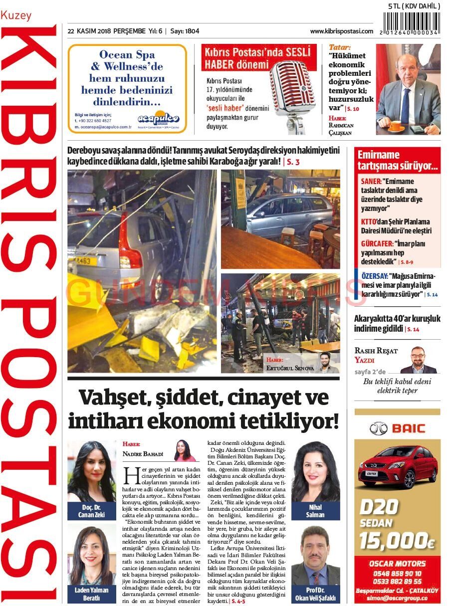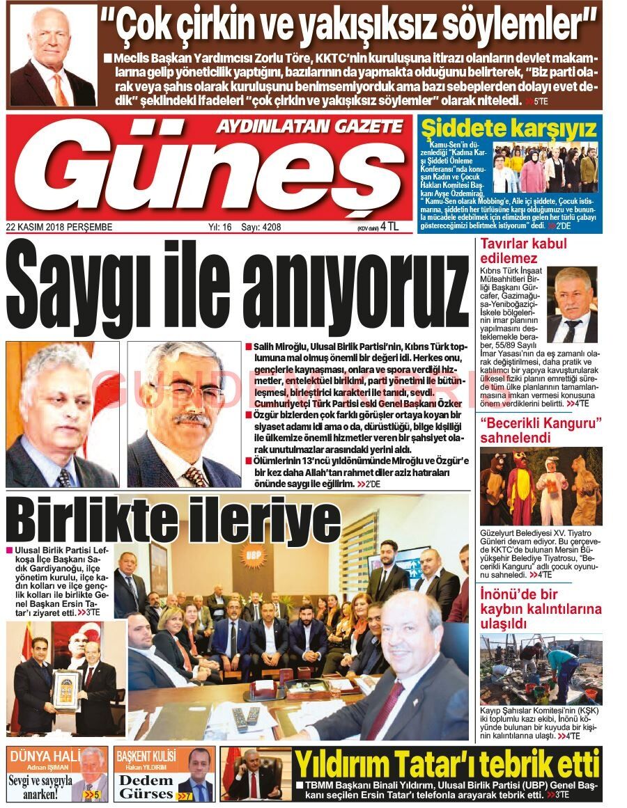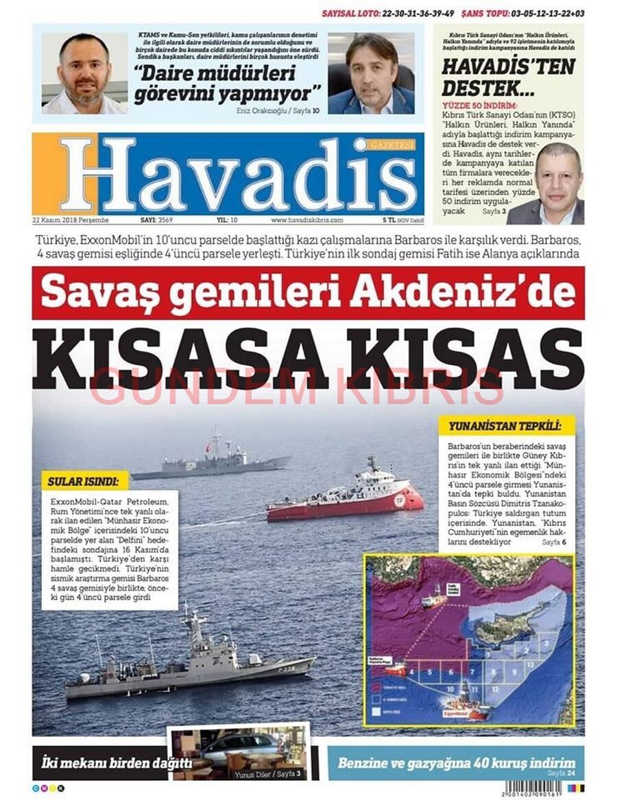 KKTC Gazete Manşetleri 22 Kasım 2018