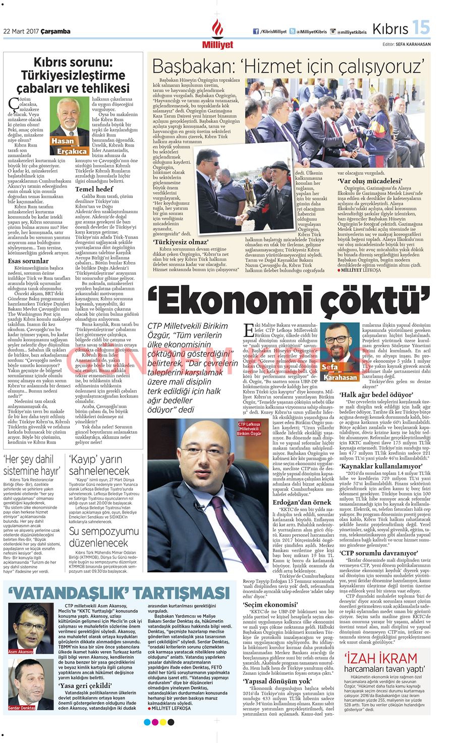 KKTC Gazete Manşetleri 22 Mart 2017