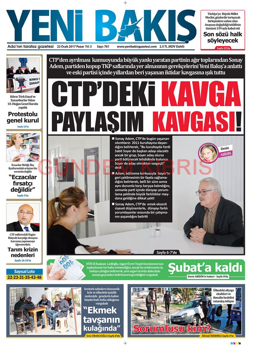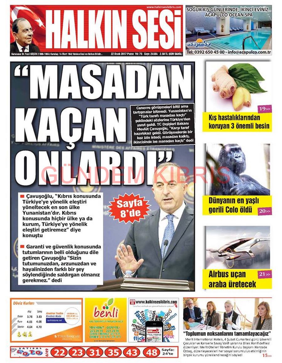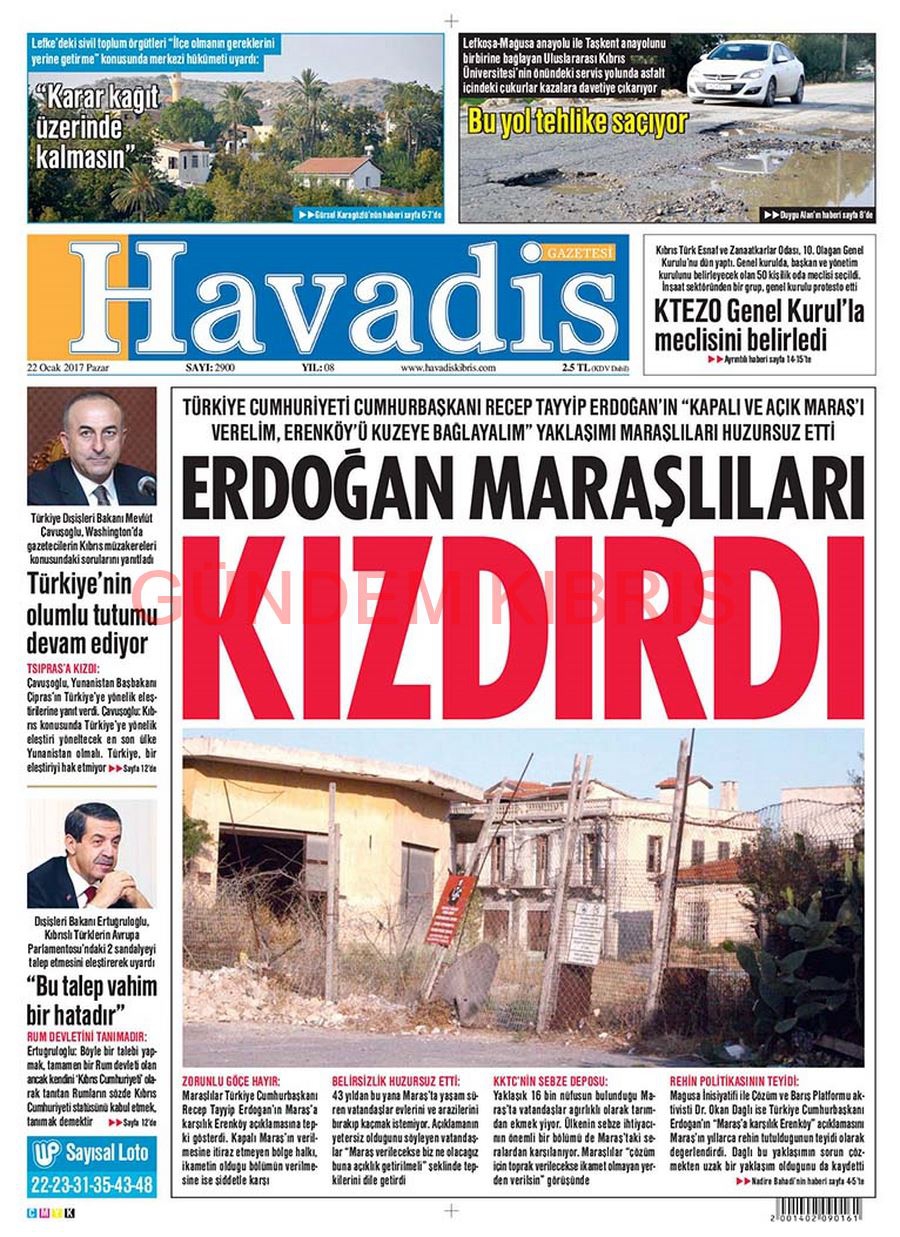 KKTC Gazete Manşetleri 22 Ocak 2017