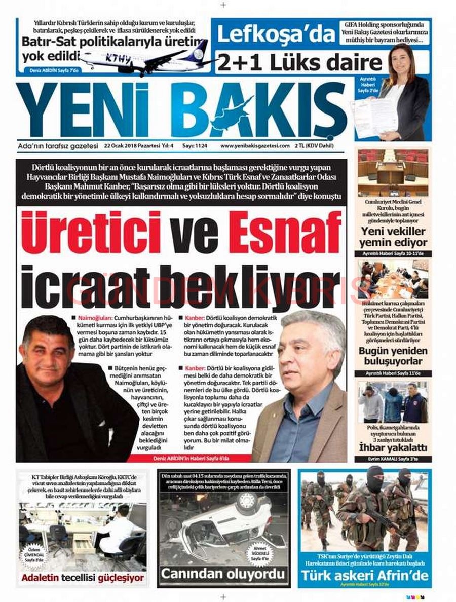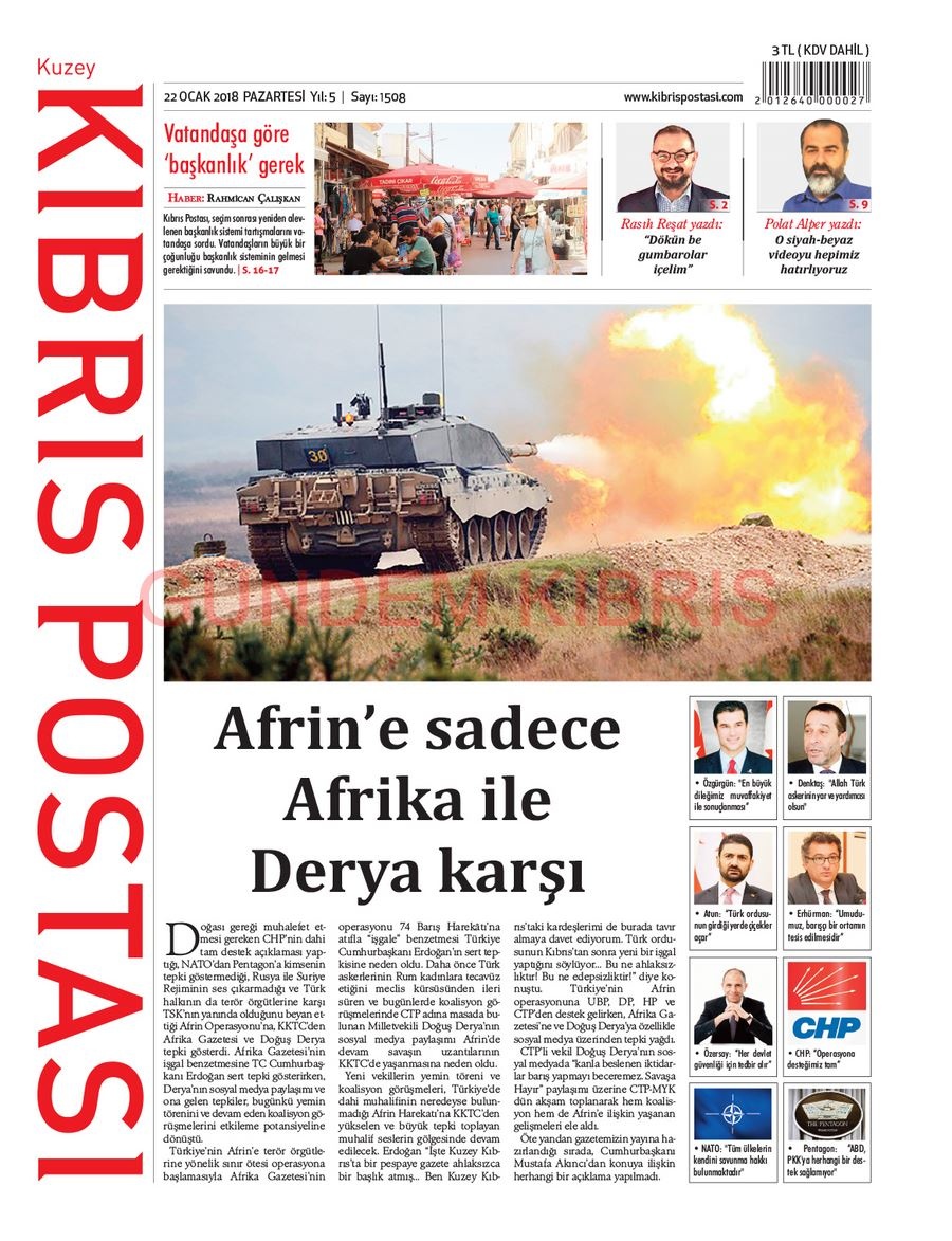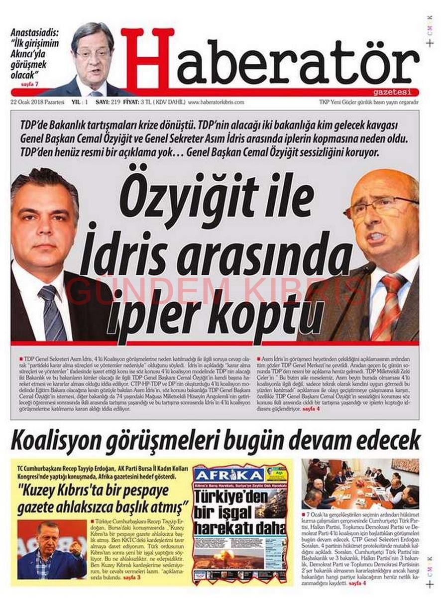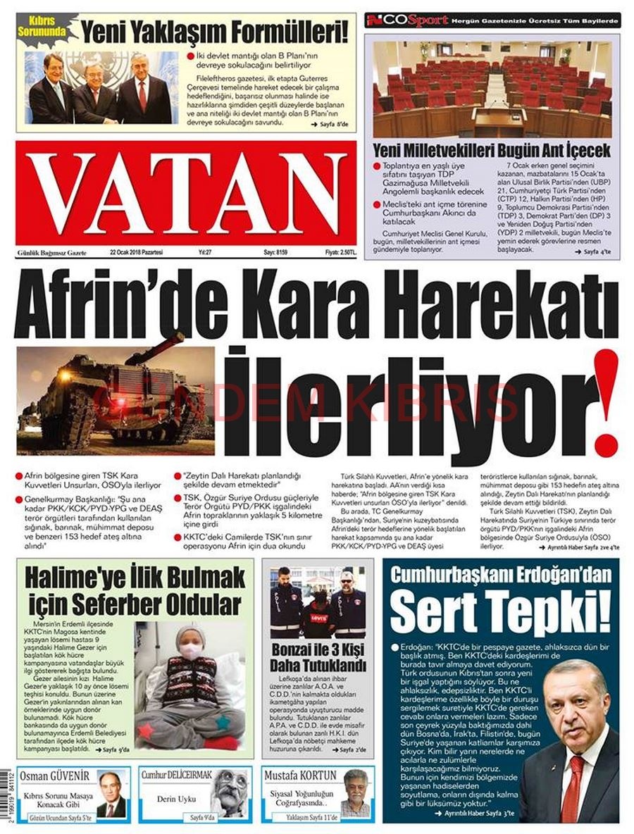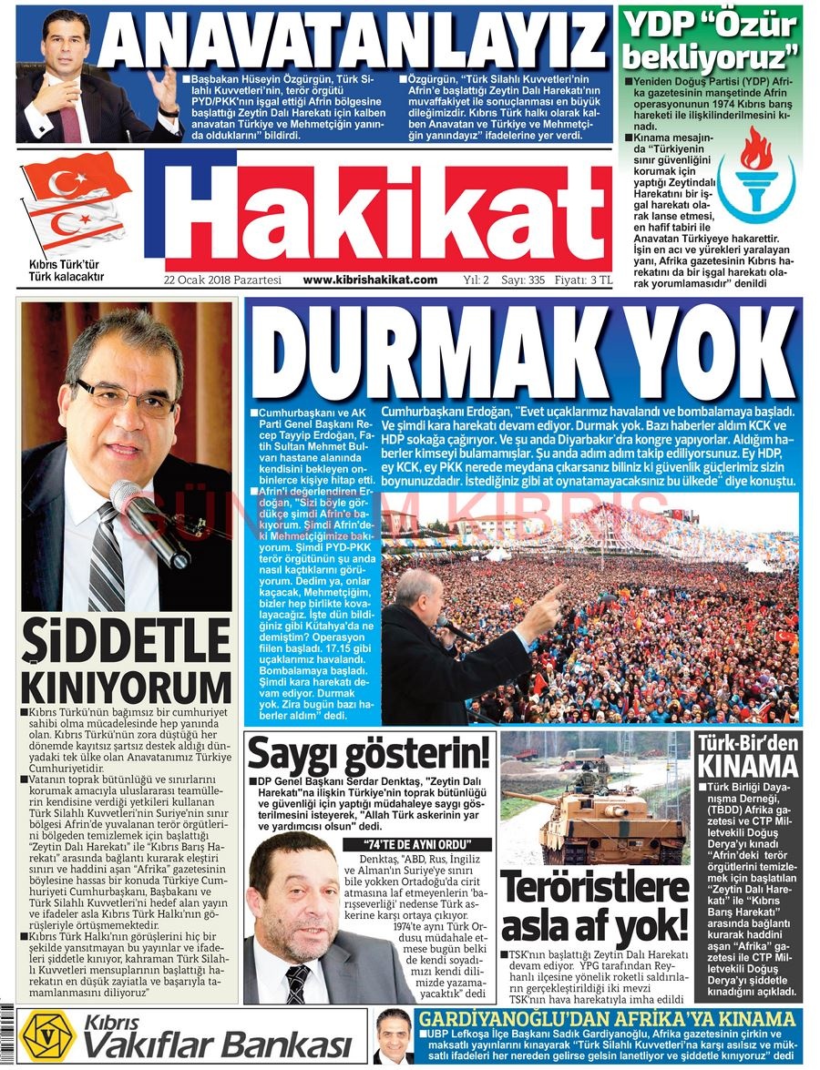 KKTC Gazete Manşetleri 22 Ocak 2018