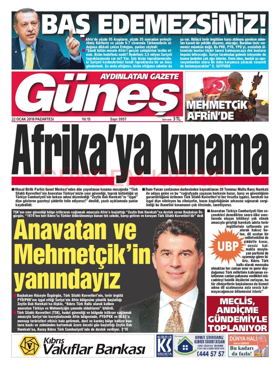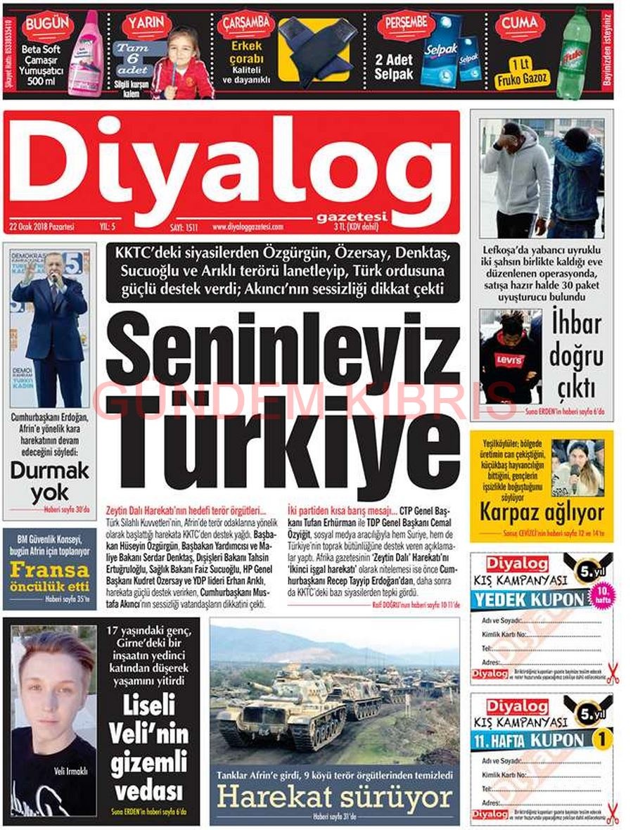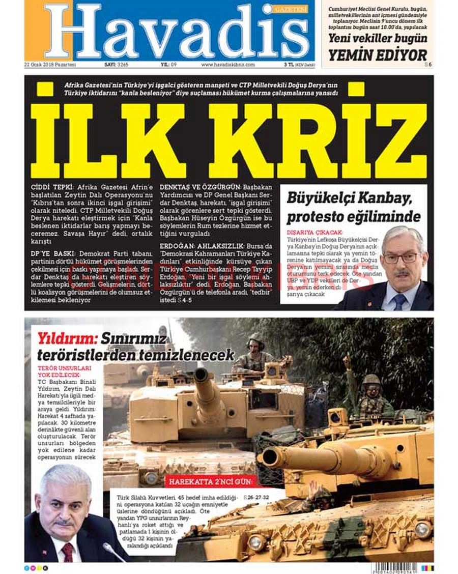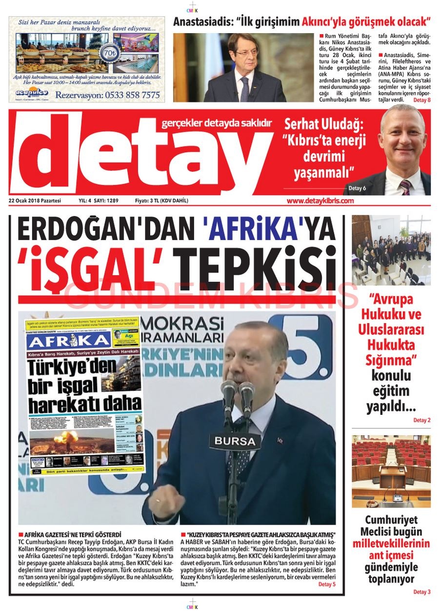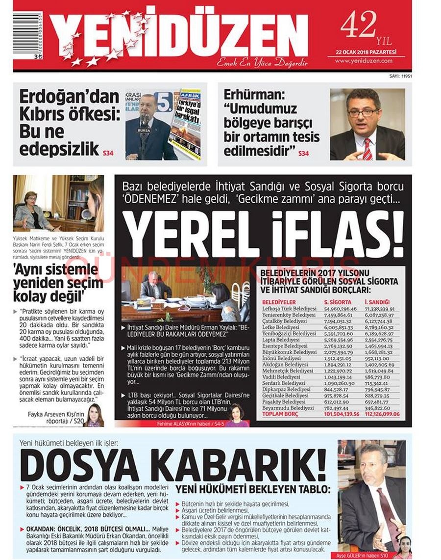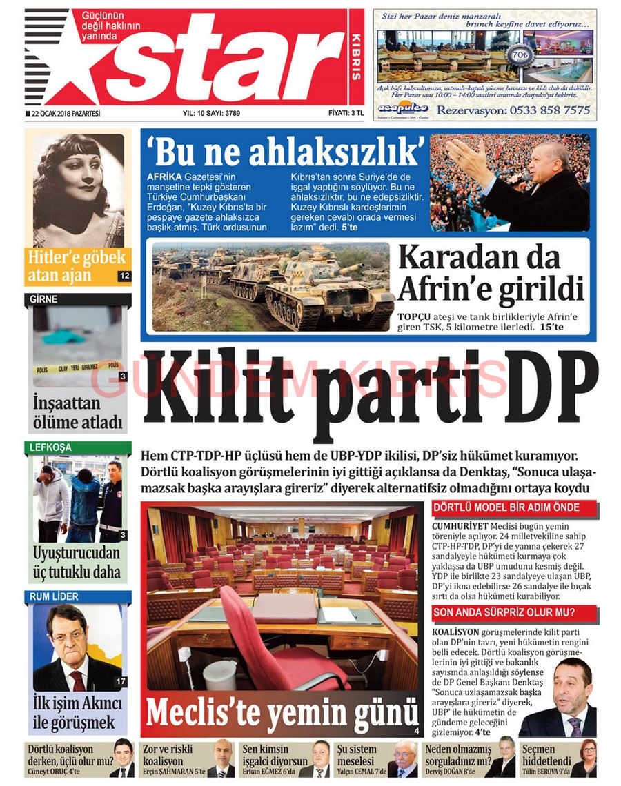 KKTC Gazete Manşetleri 22 Ocak 2018