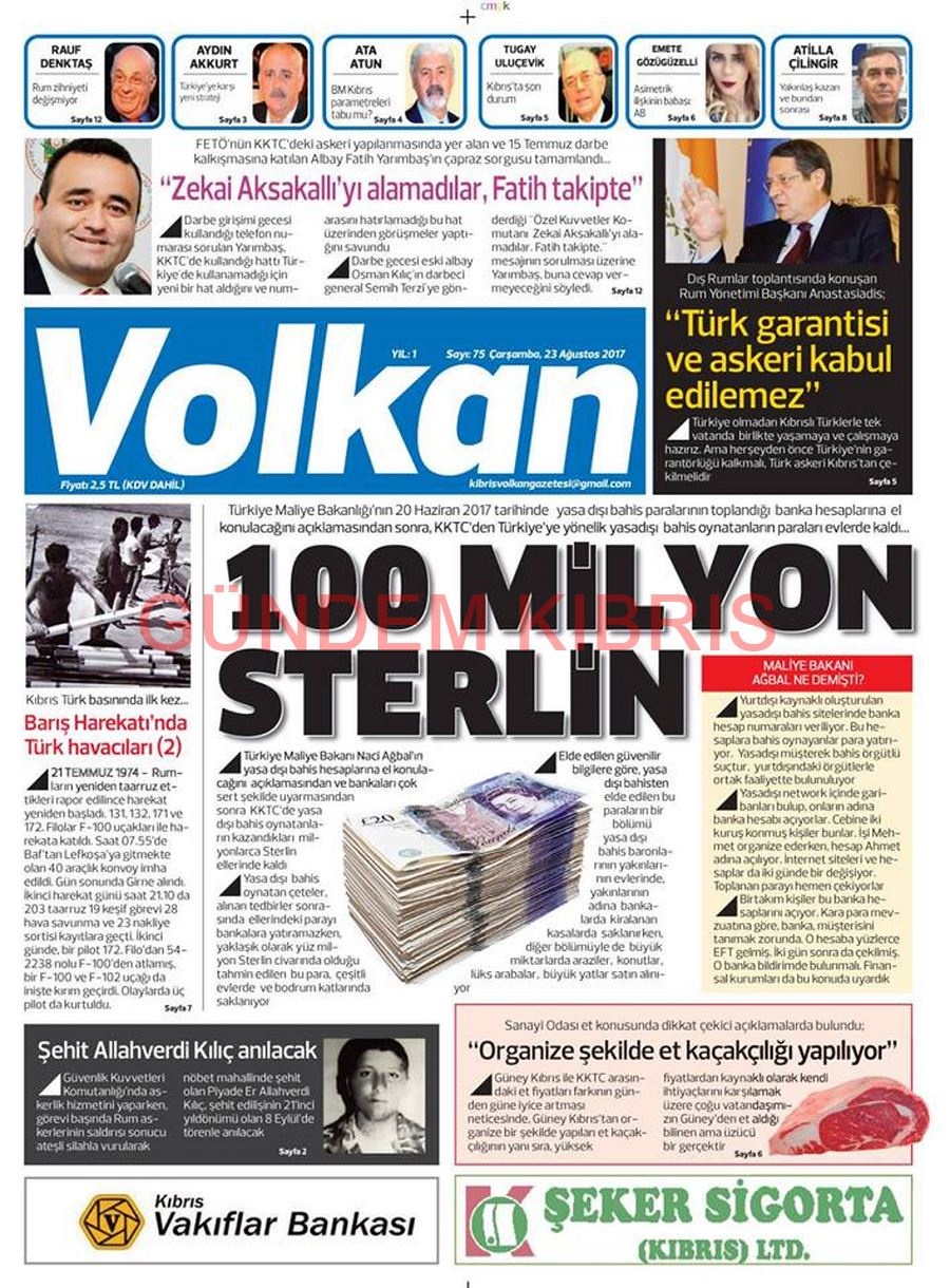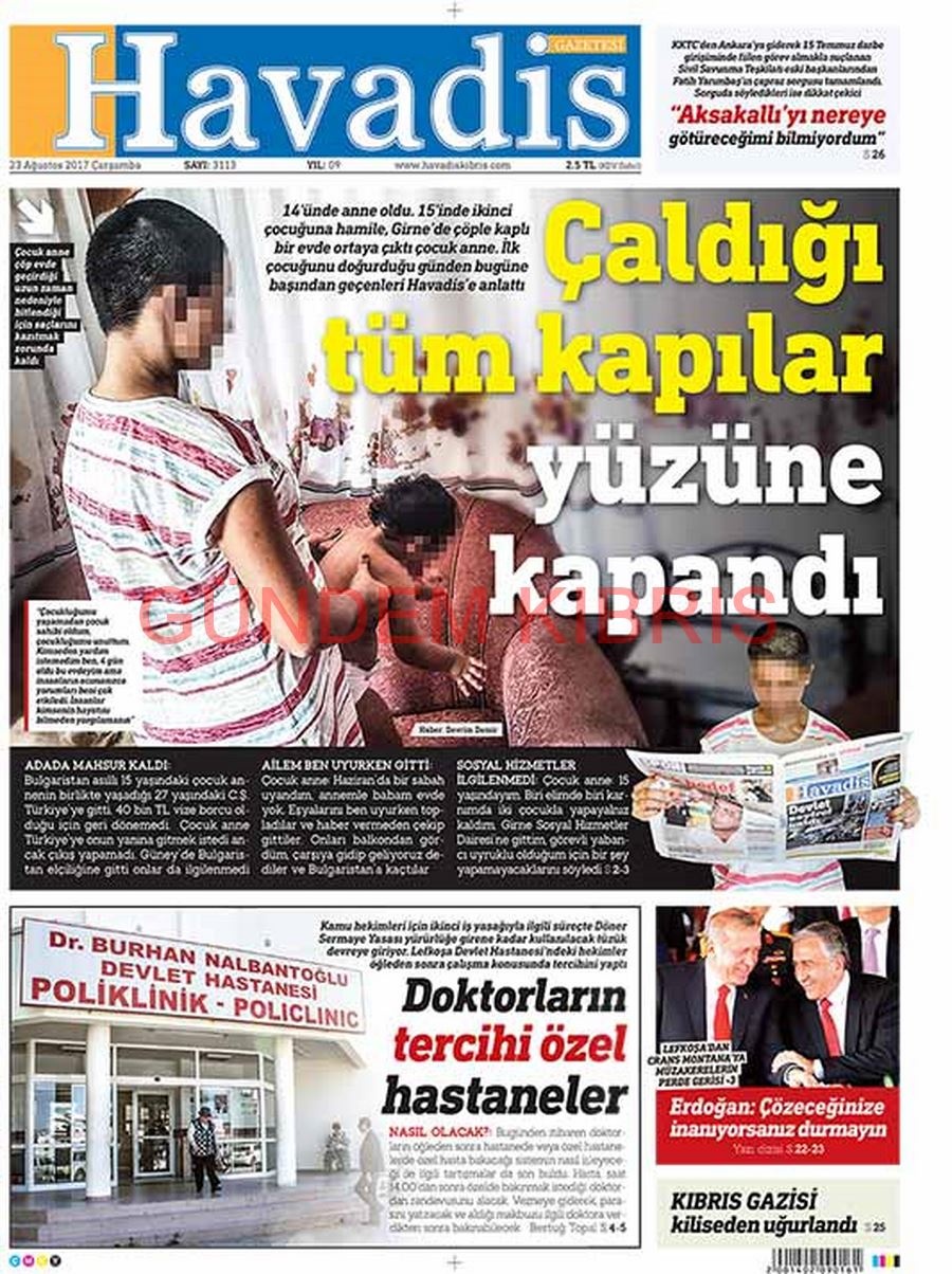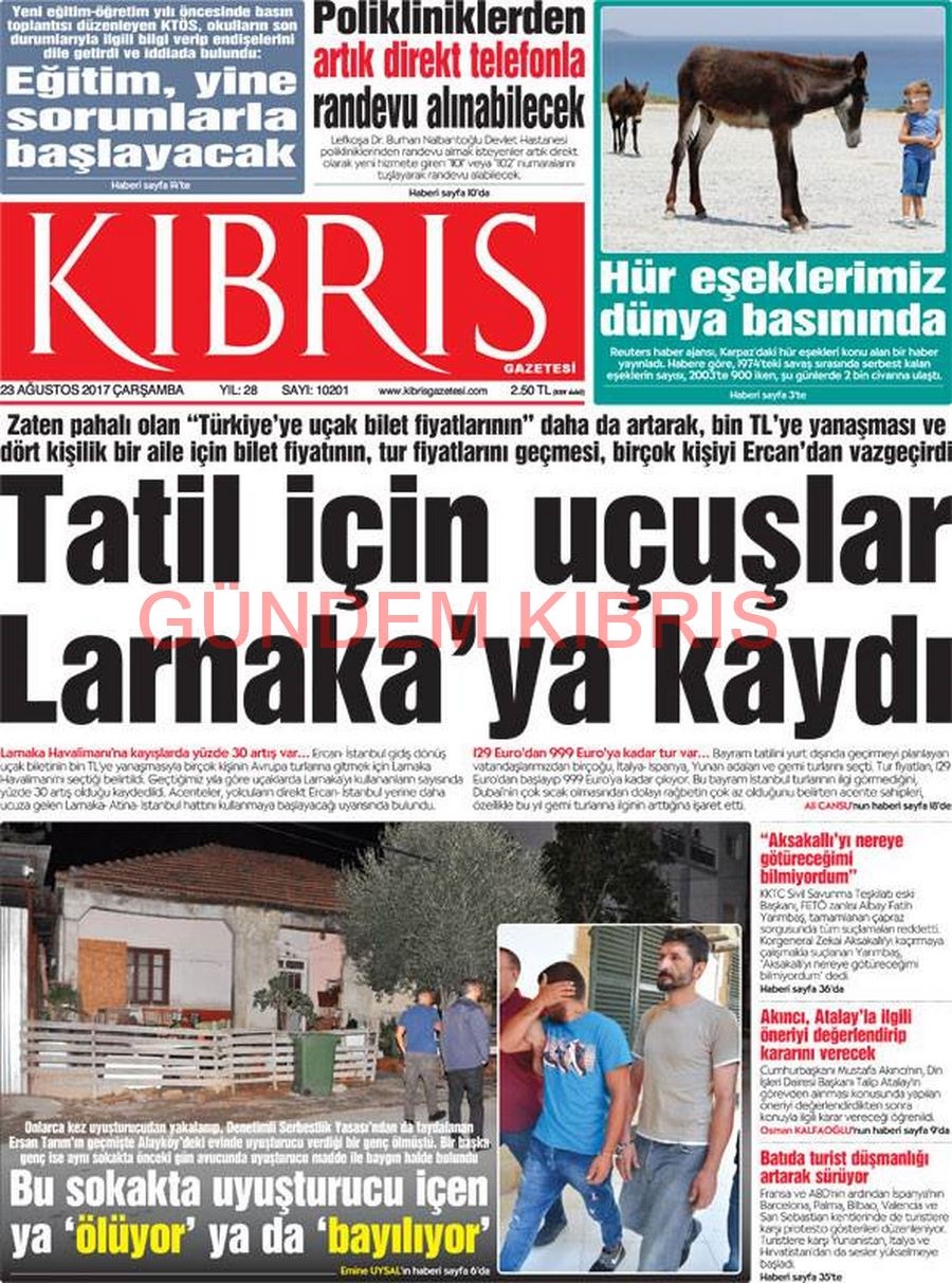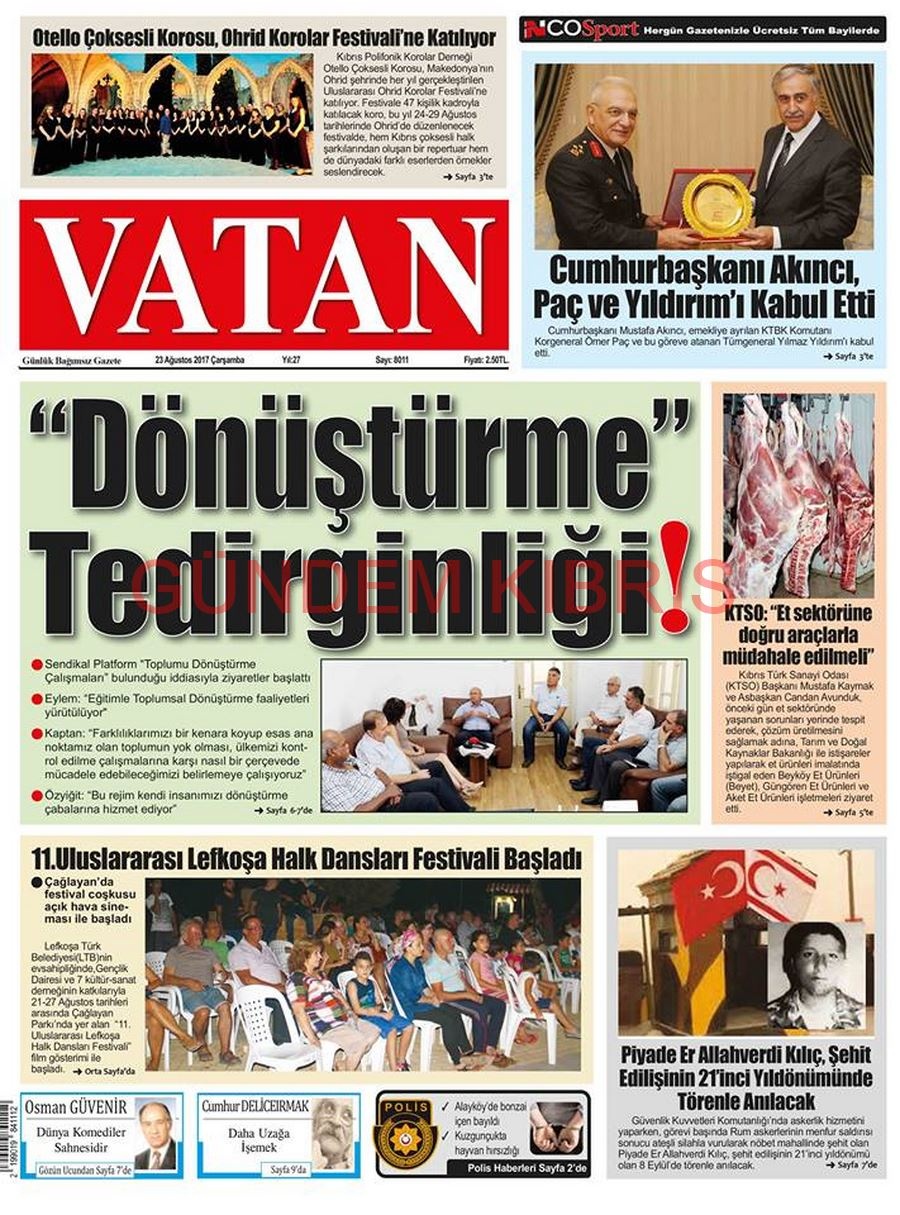 KKTC Gazete Manşetleri 23 Ağustos 2017