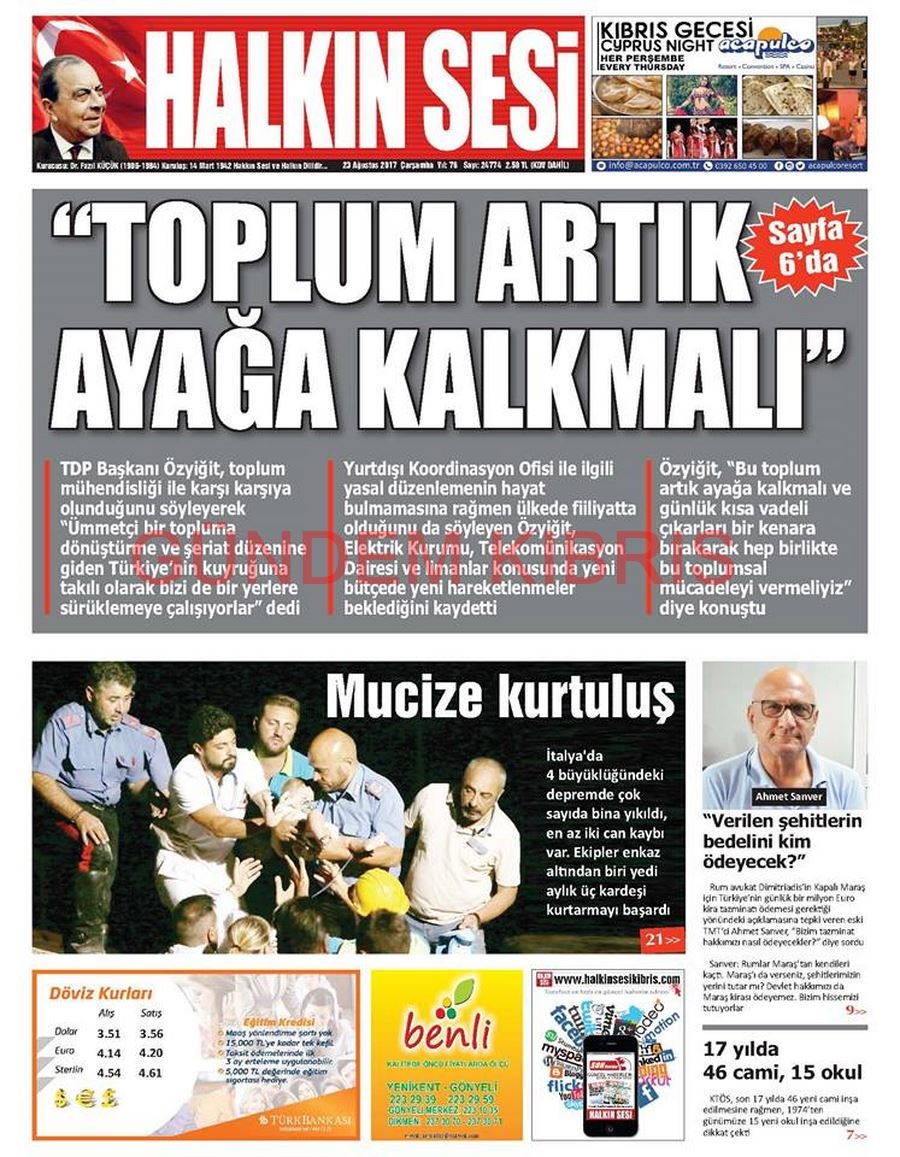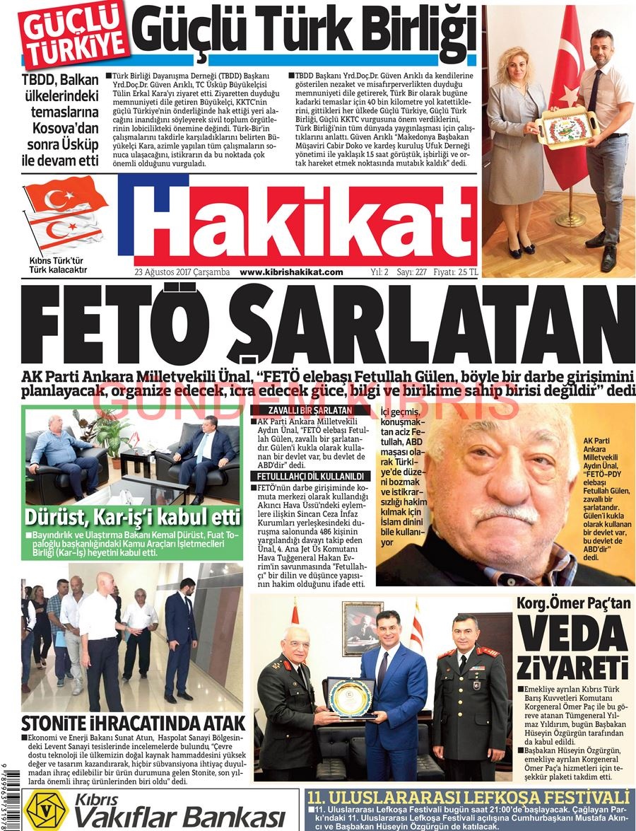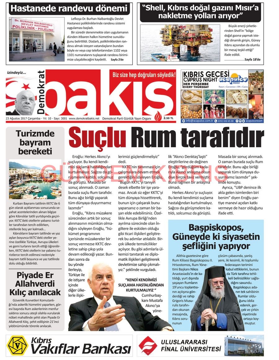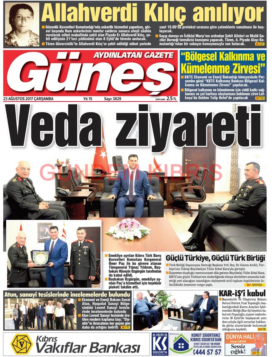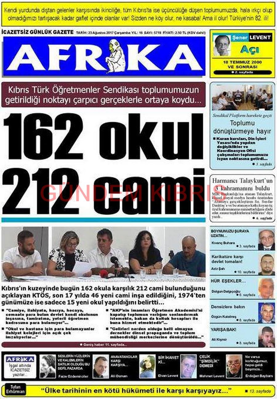 KKTC Gazete Manşetleri 23 Ağustos 2017